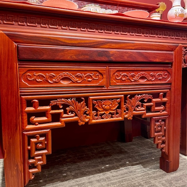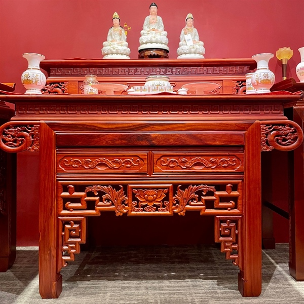 – Tên SP: Ban Thờ Gỗ Hương Đỏ Nhị Cấp Hoa Sen Vai Lượn