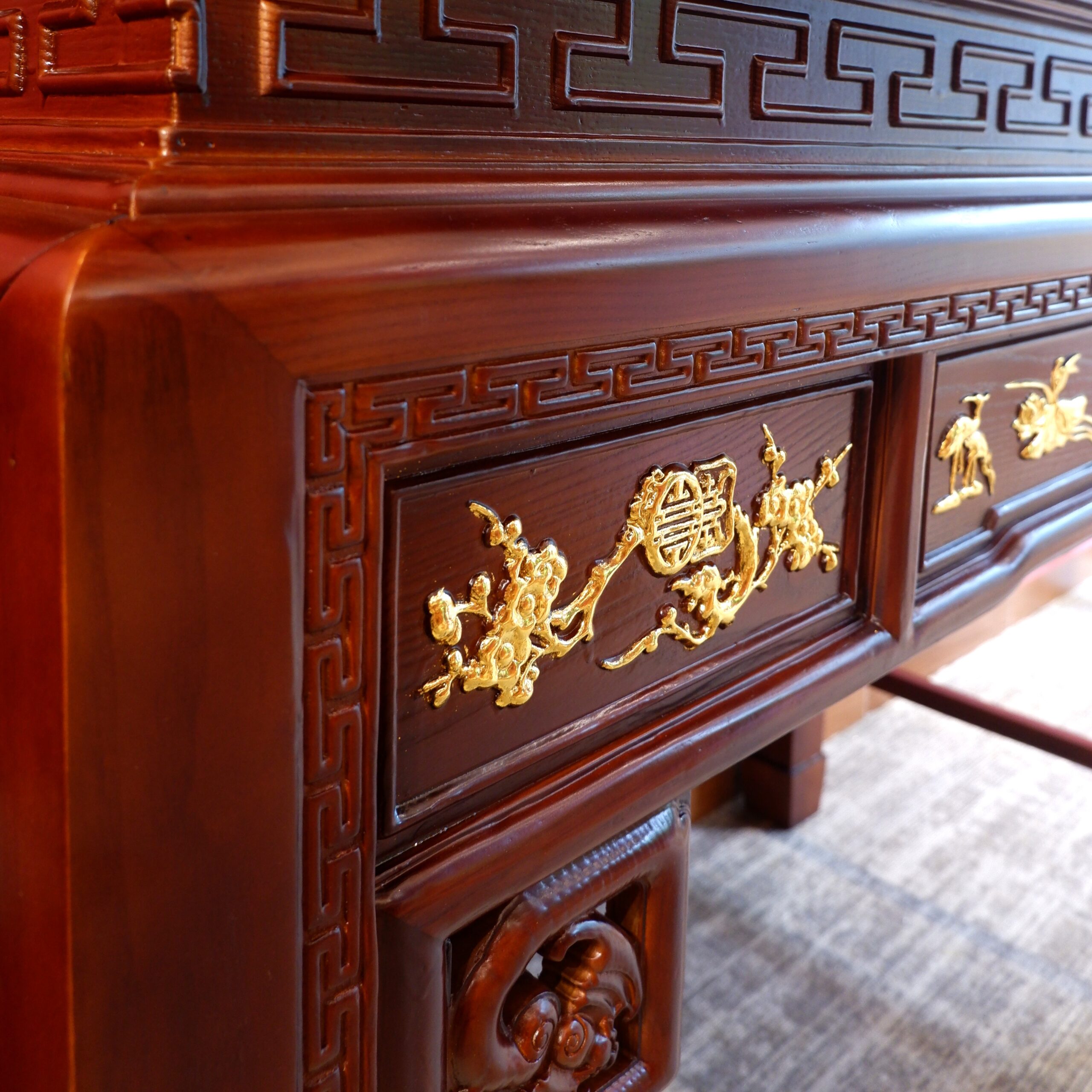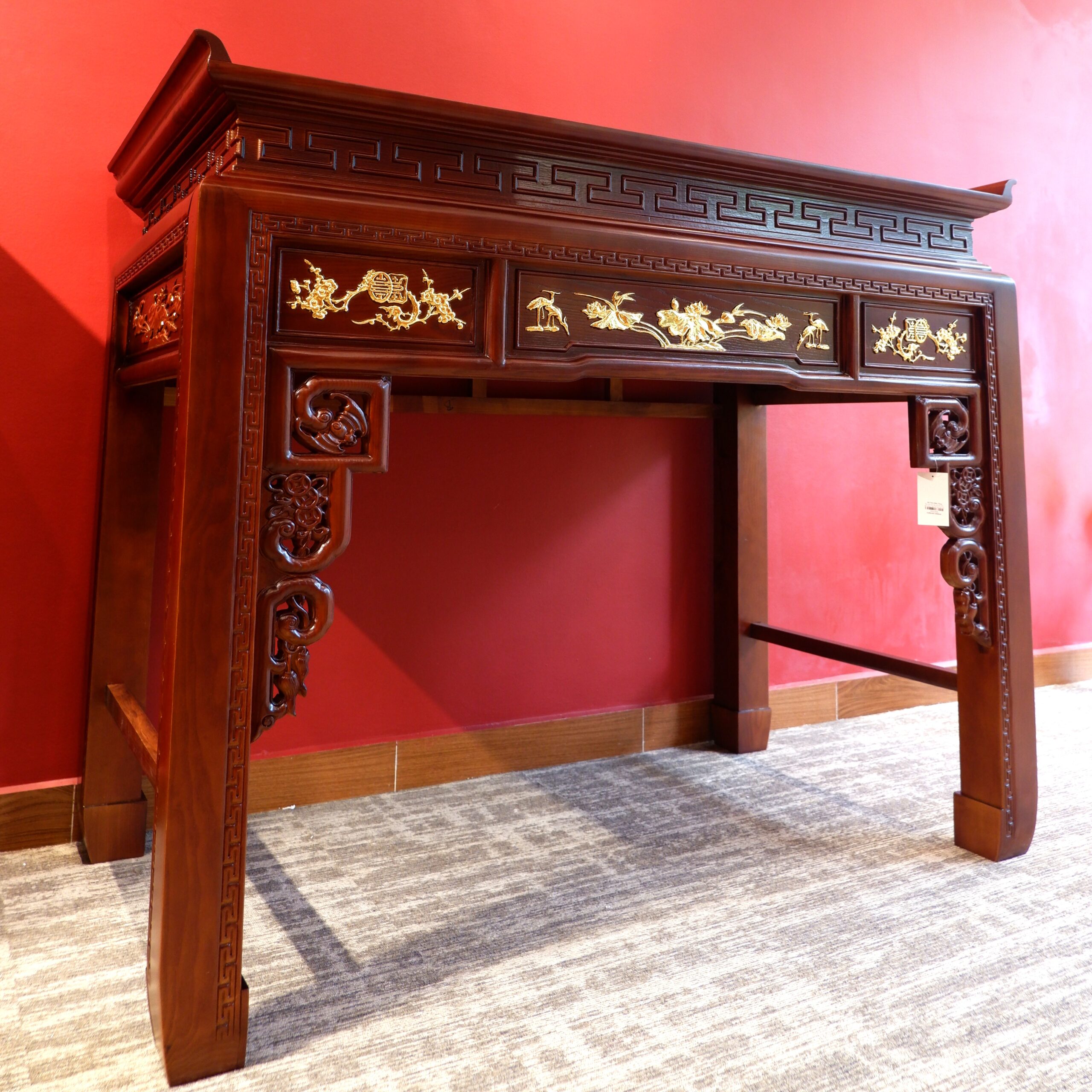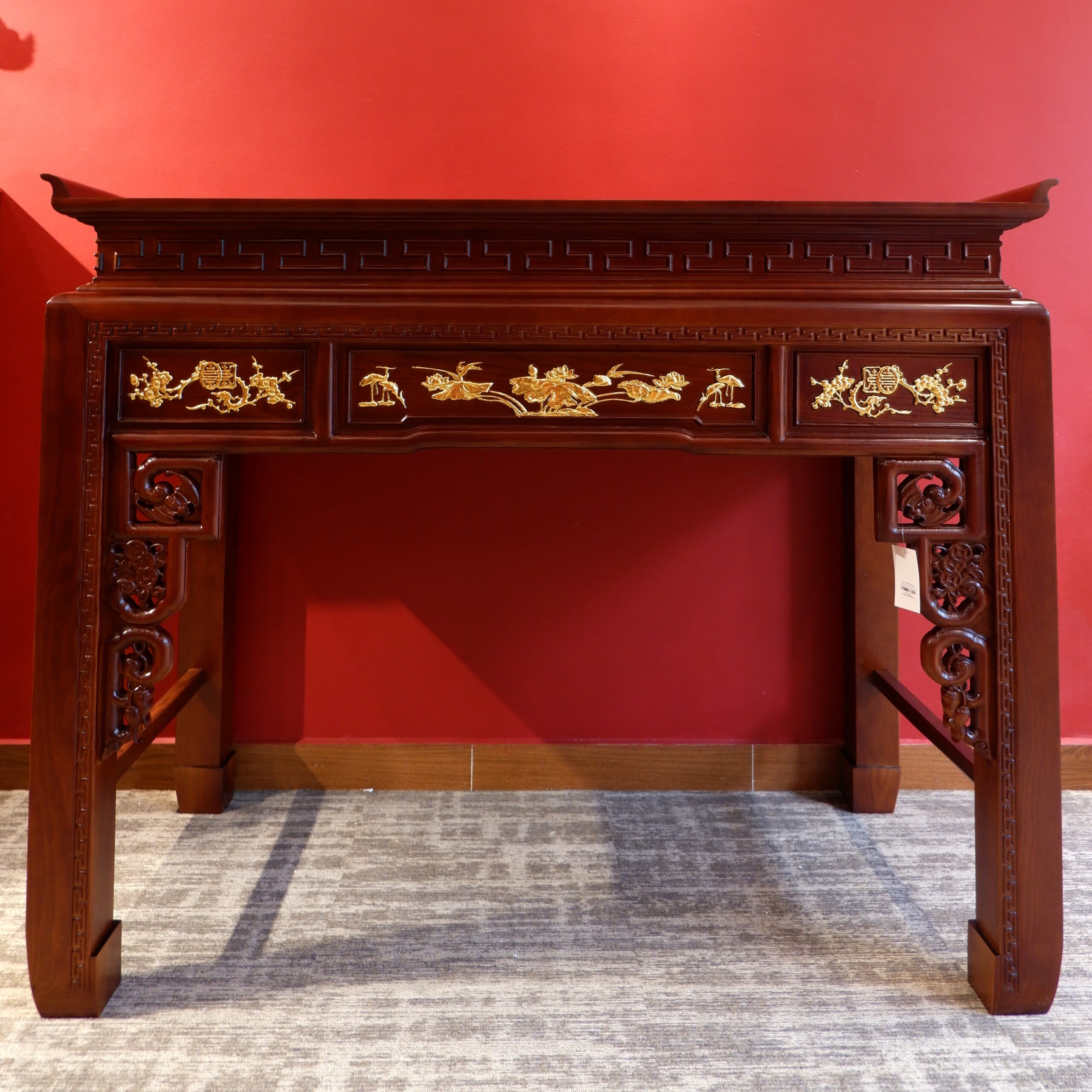 – Tên SP: Ban Thờ Gỗ Sồi Dát Vàng Họa Tiết Sen