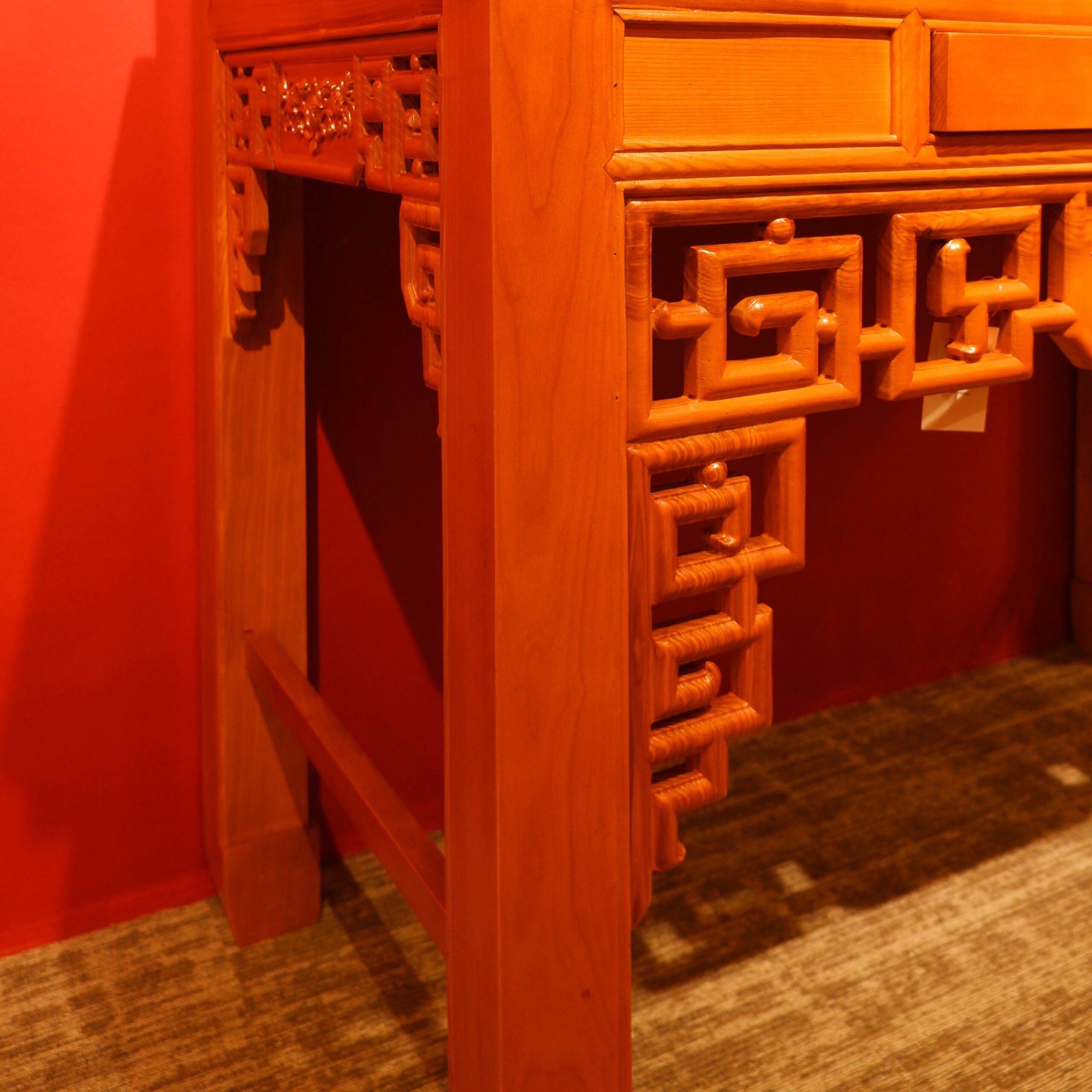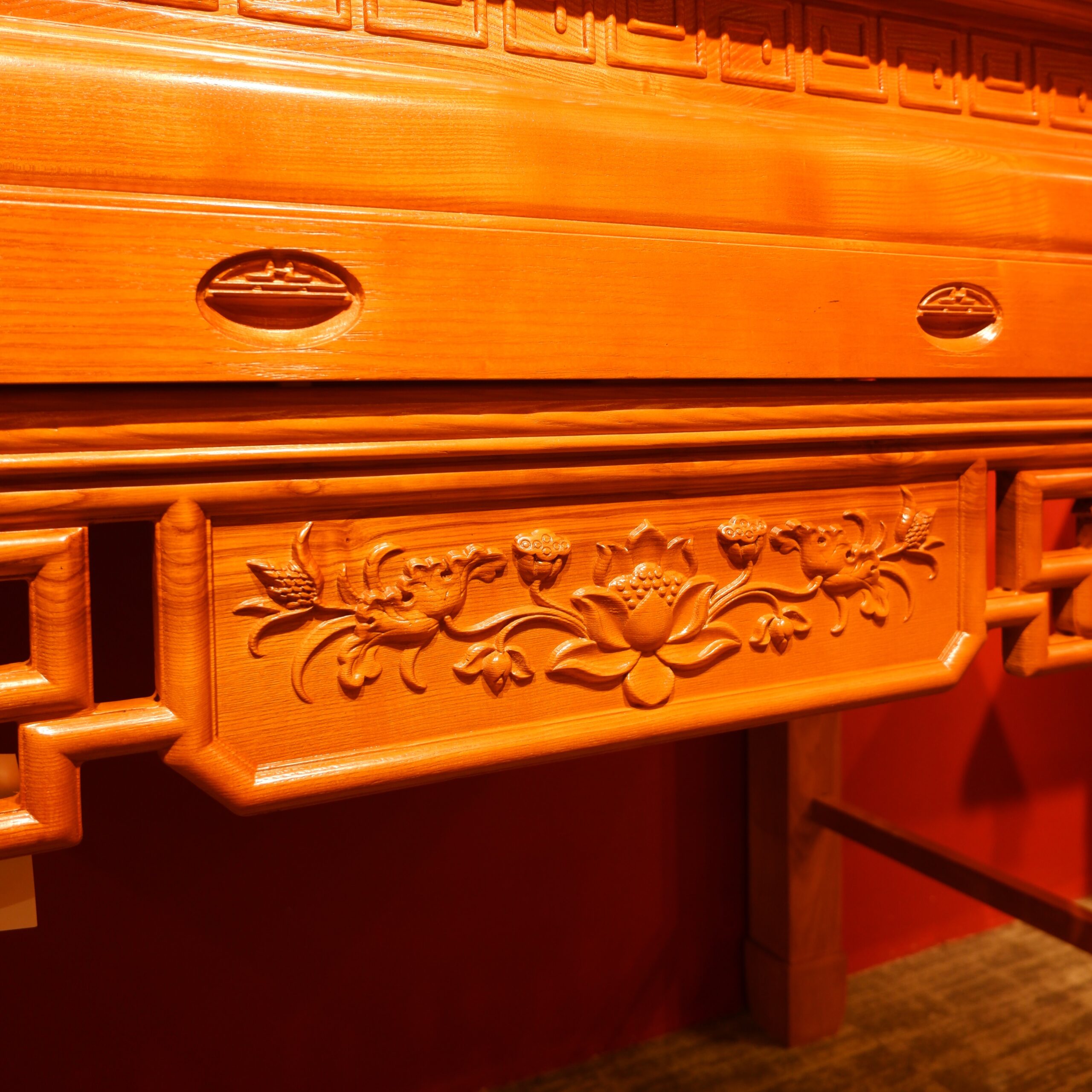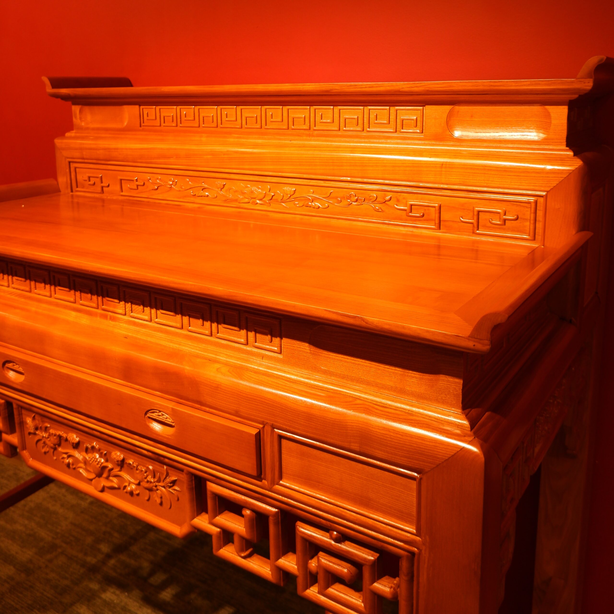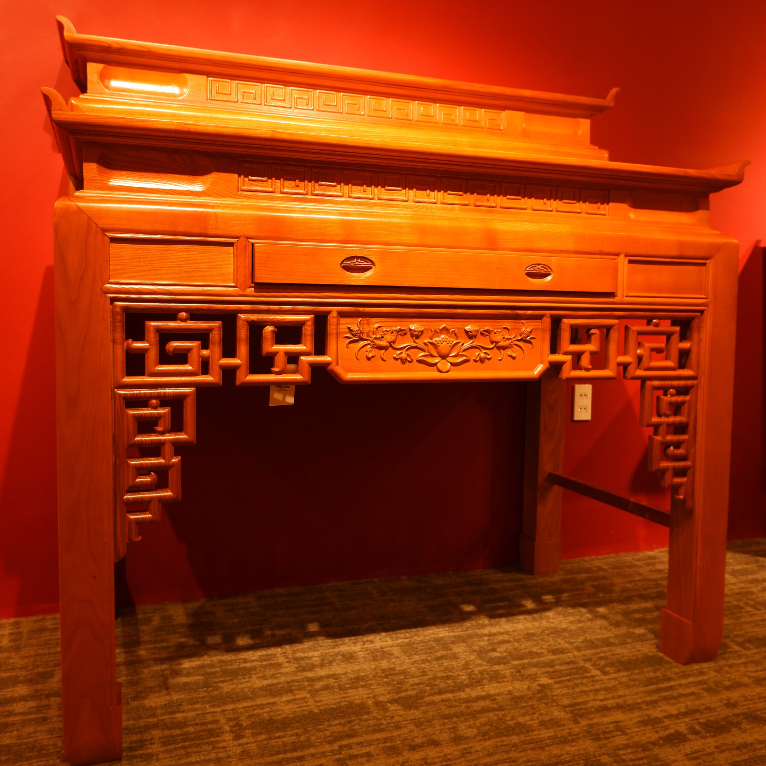 – Tên SP: Ban Thờ Gỗ Sồi Nhị Cấp Họa Tiết Sen Màu Nâu Vàng