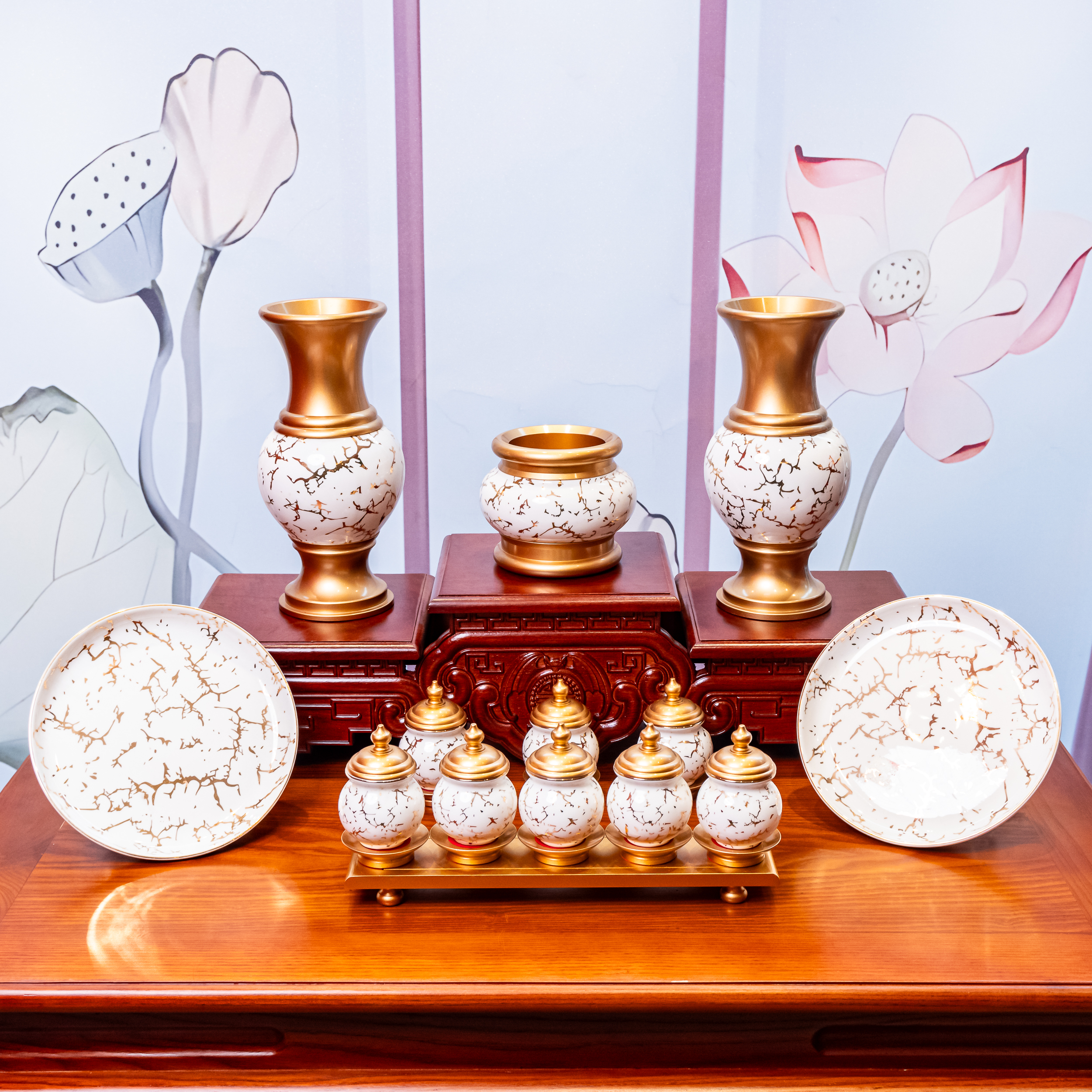 – Tên SP: Bộ Đồ Thờ Đồng Phối Sứ Vân Trắng