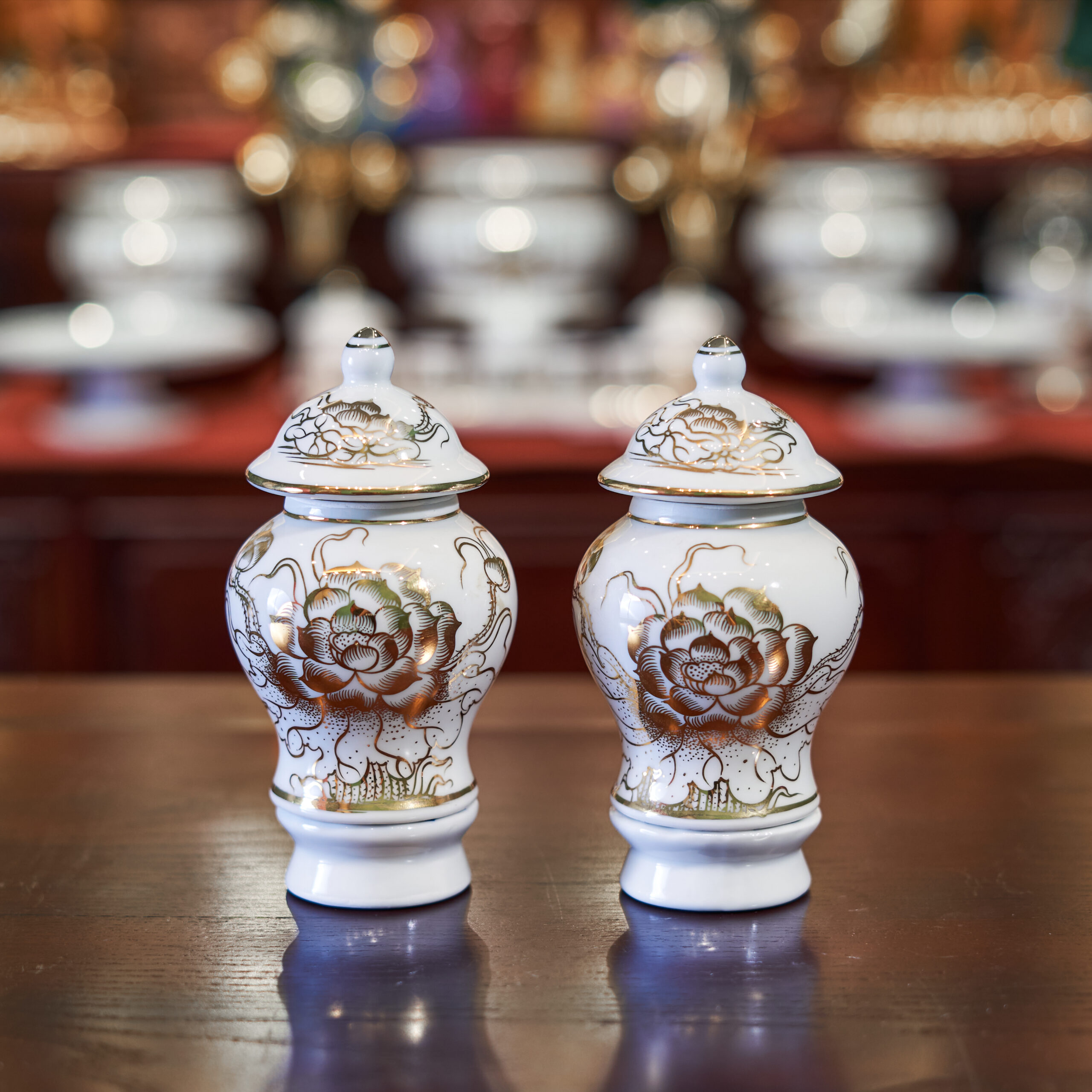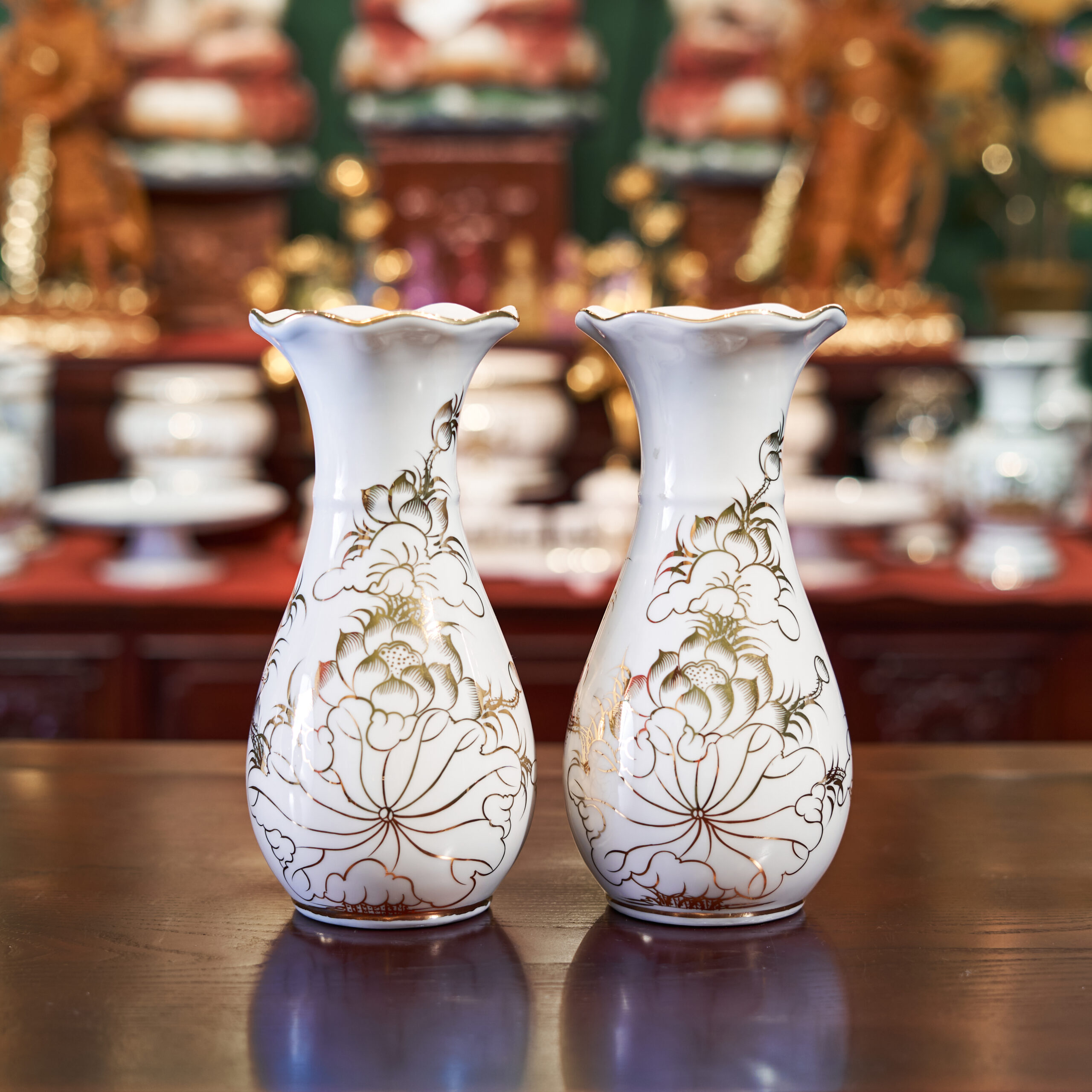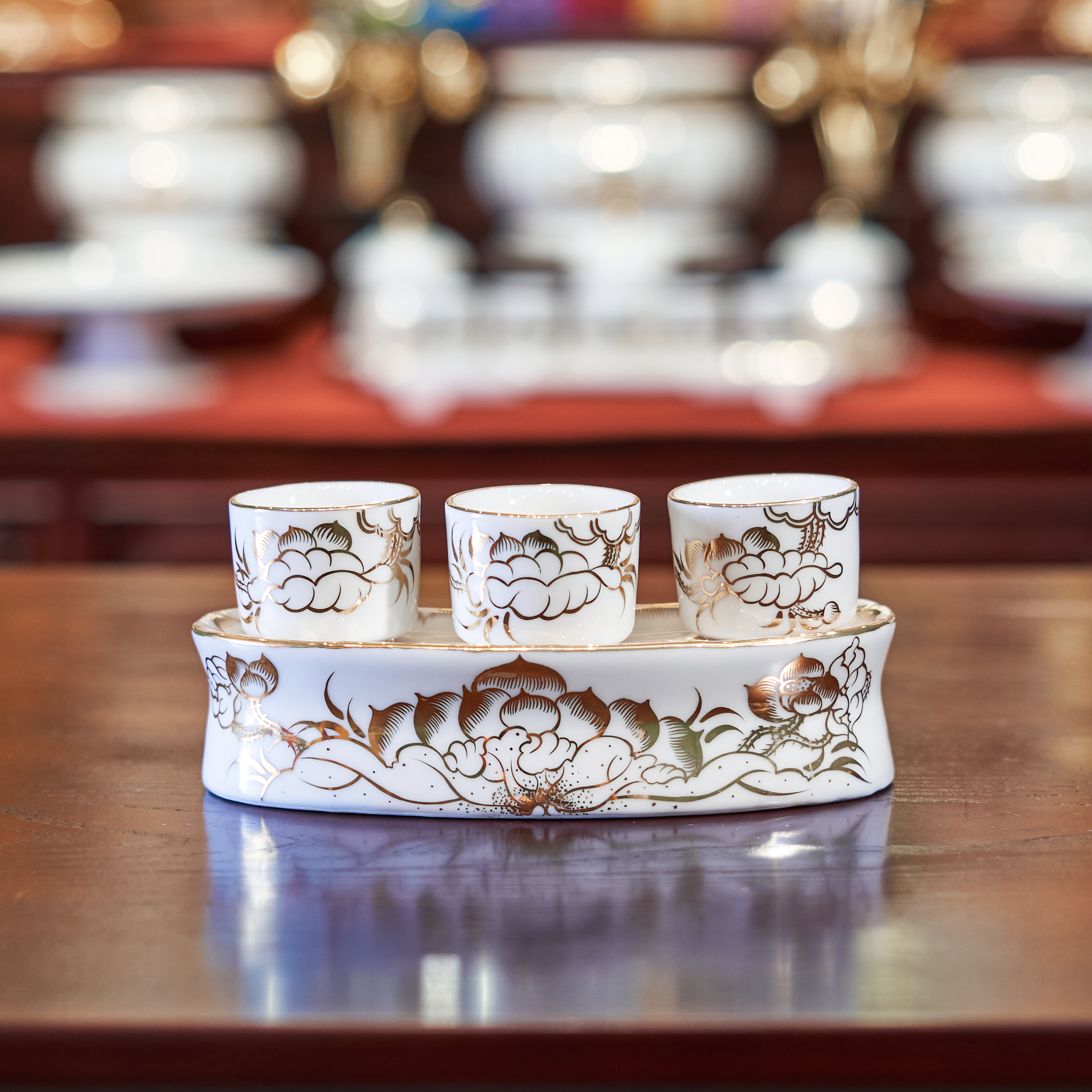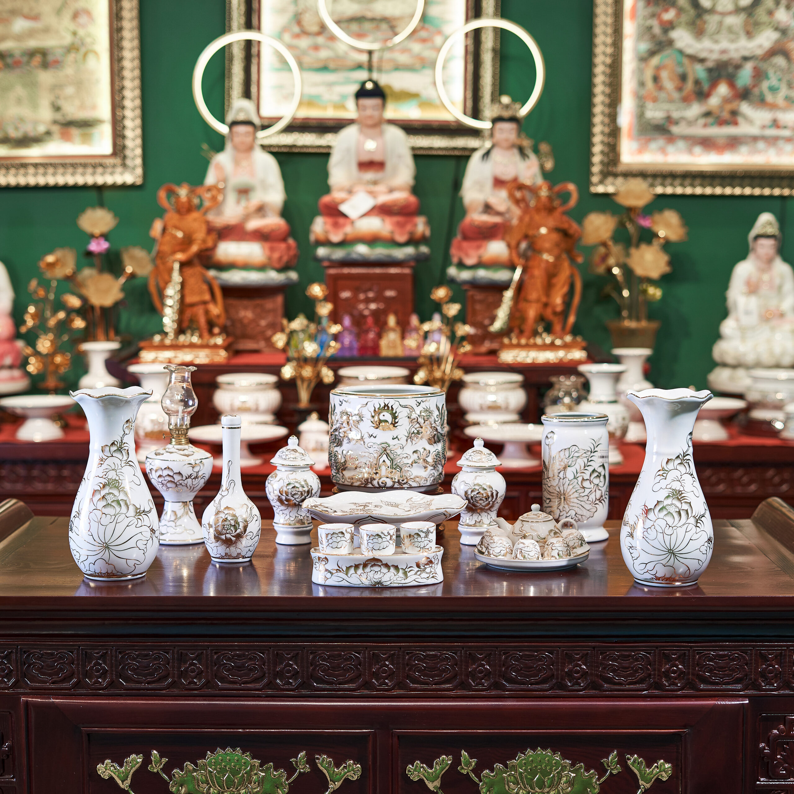 – Tên SP: Bộ Đồ Thờ Sứ Bát Tràng Bạch Ngọc Vàng Kim