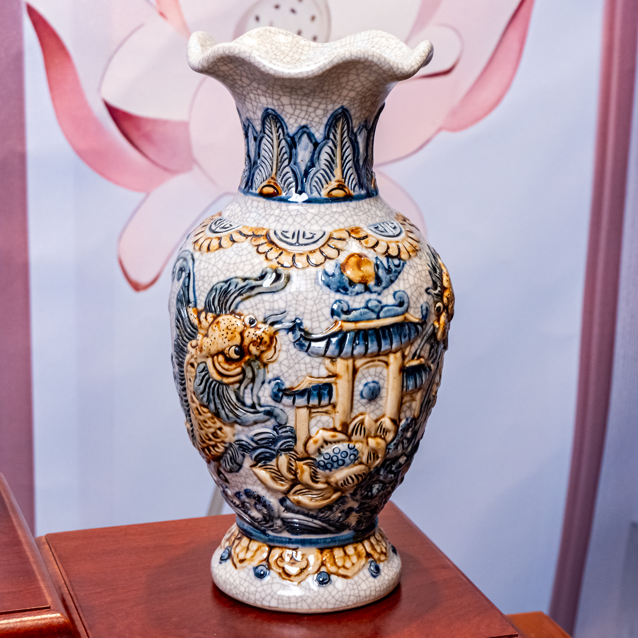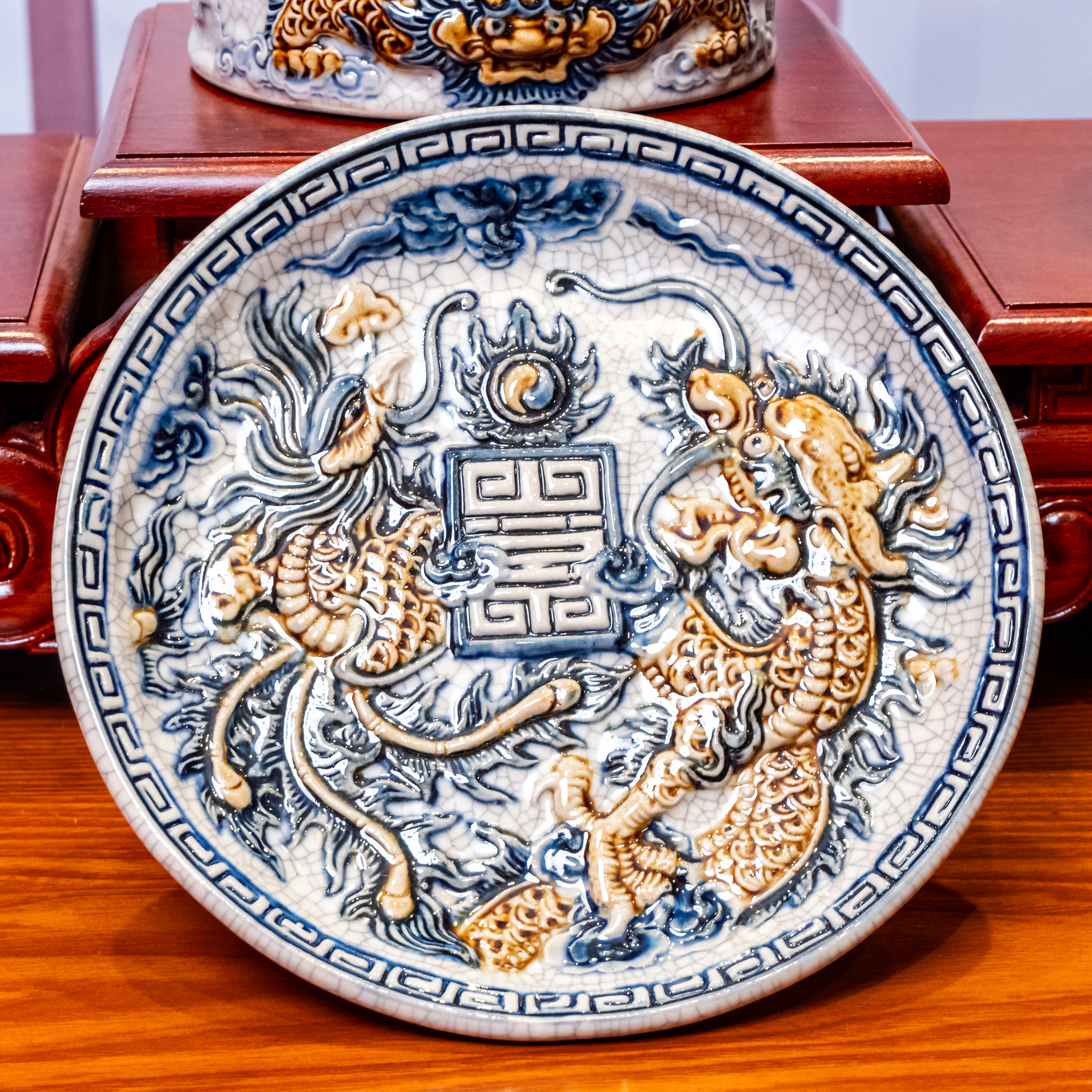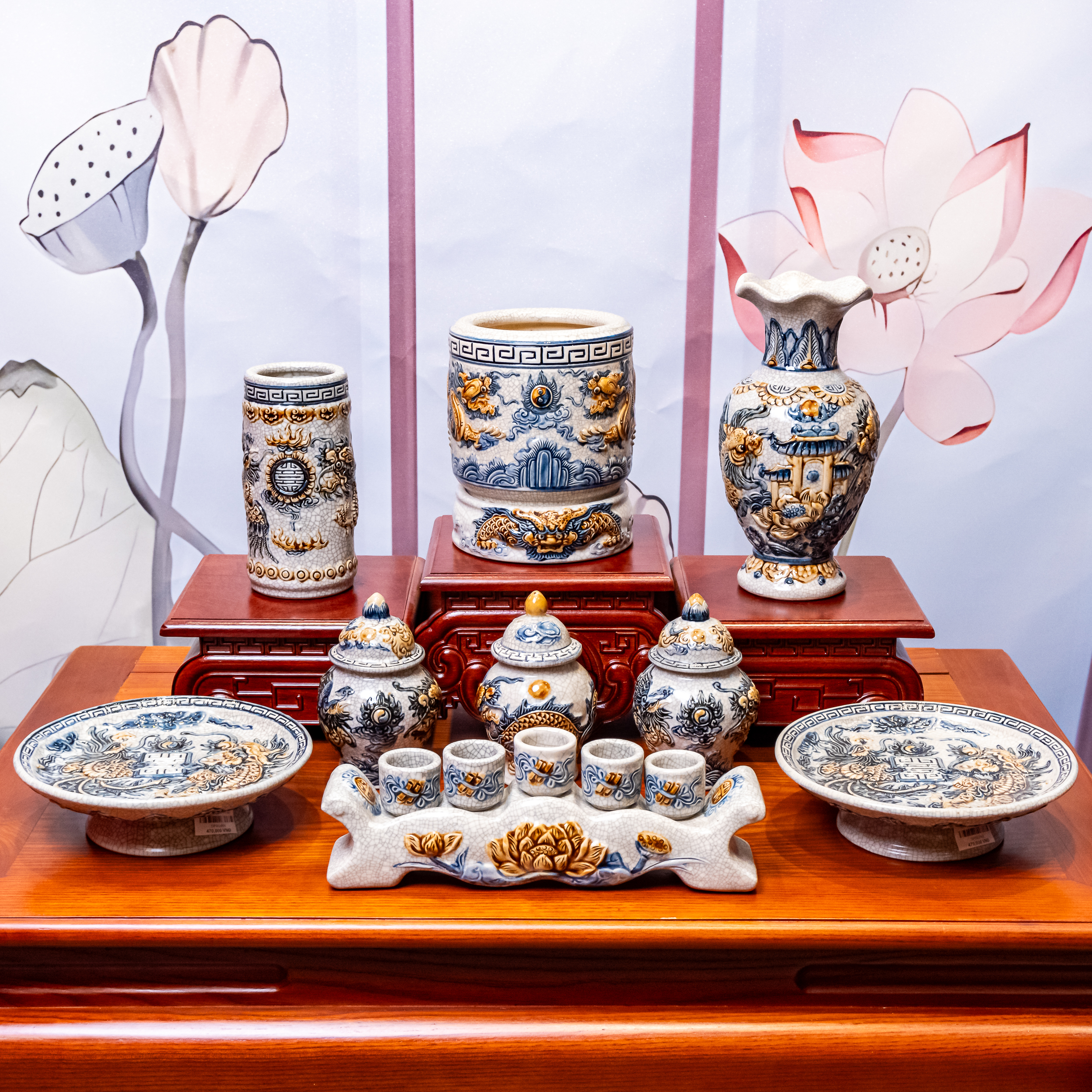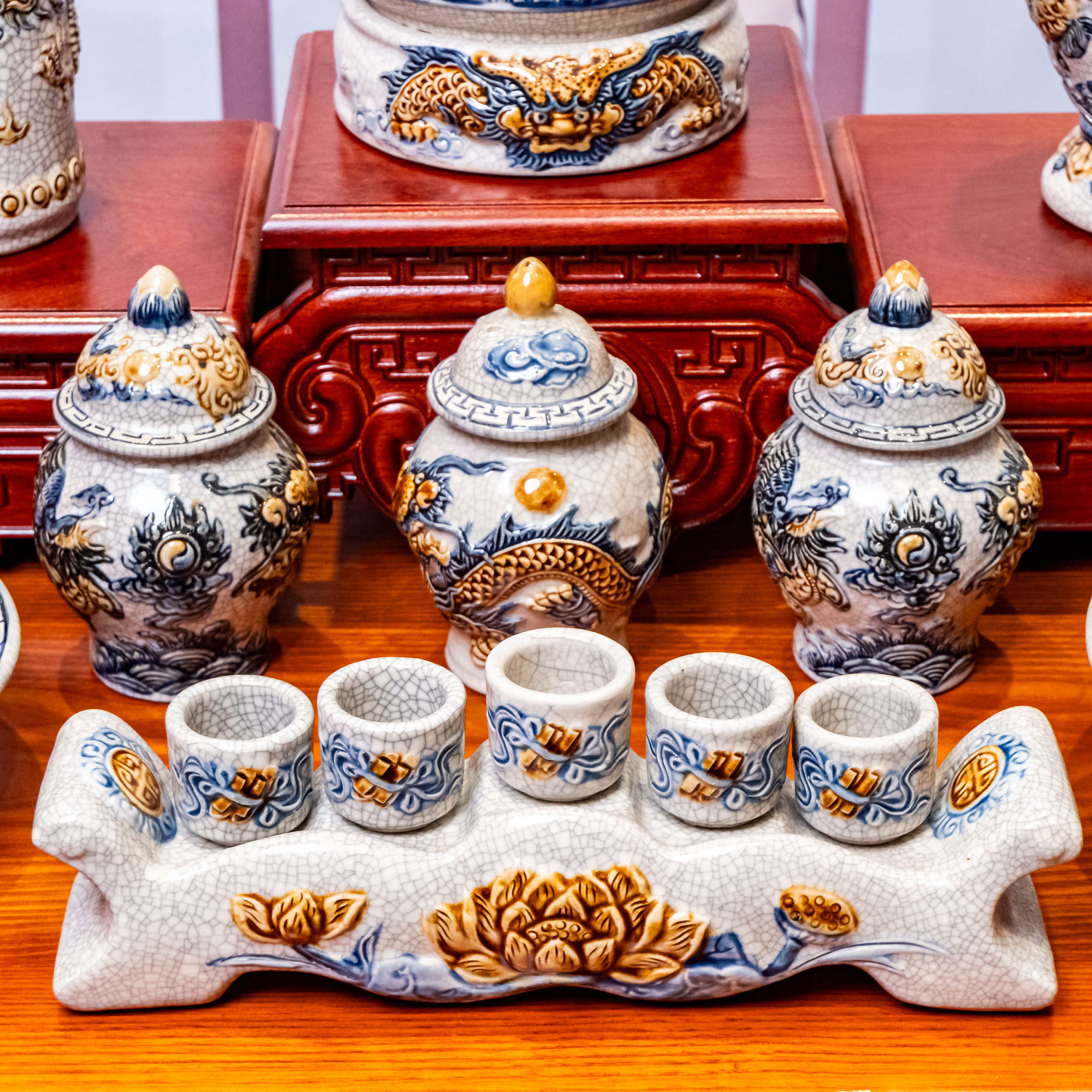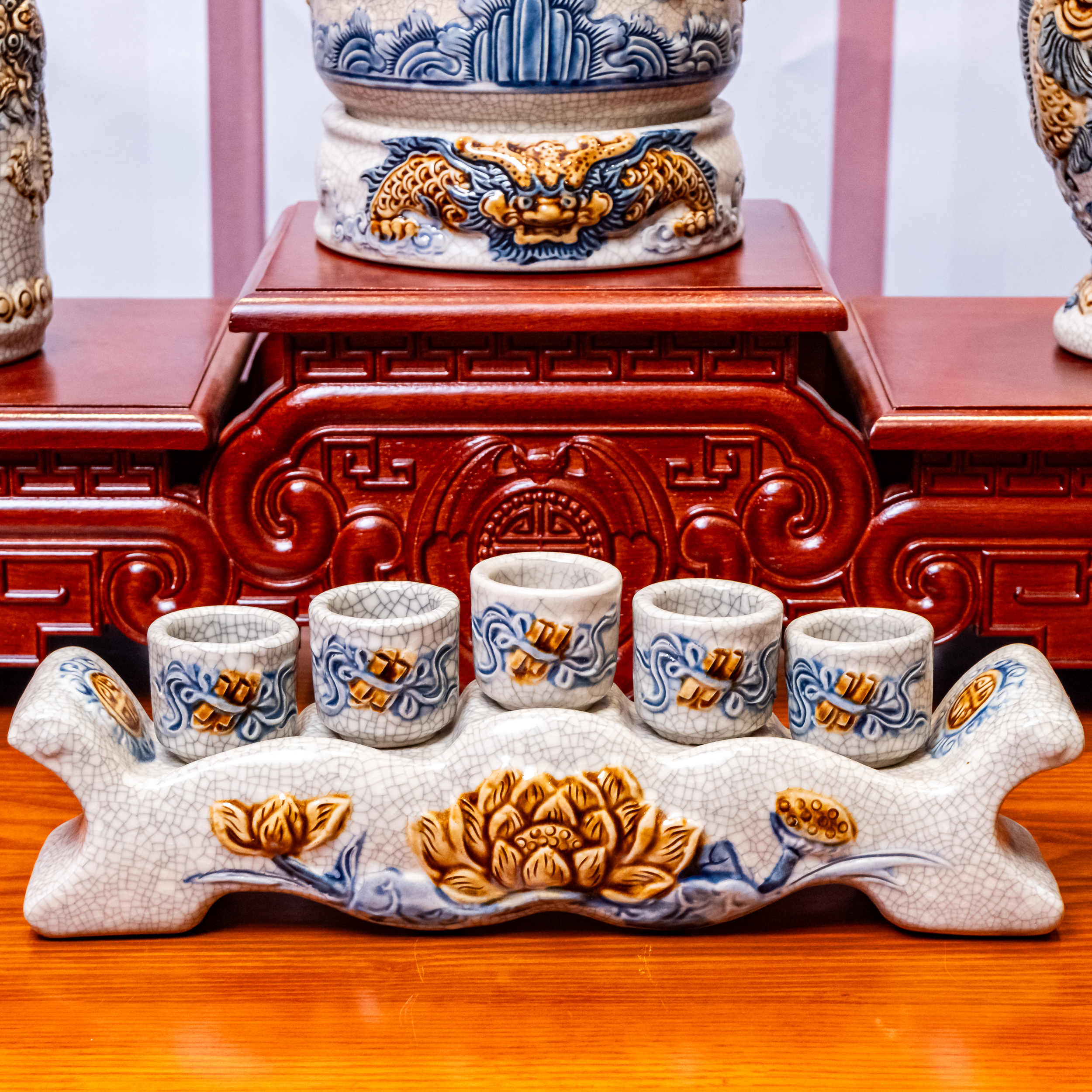 – Tên SP: Bộ Đồ Thờ Sứ Bát Tràng Men Rạn Rồng Nổi