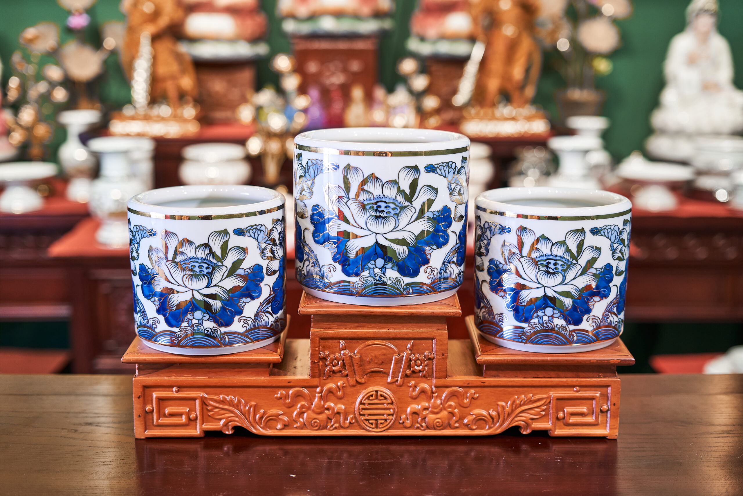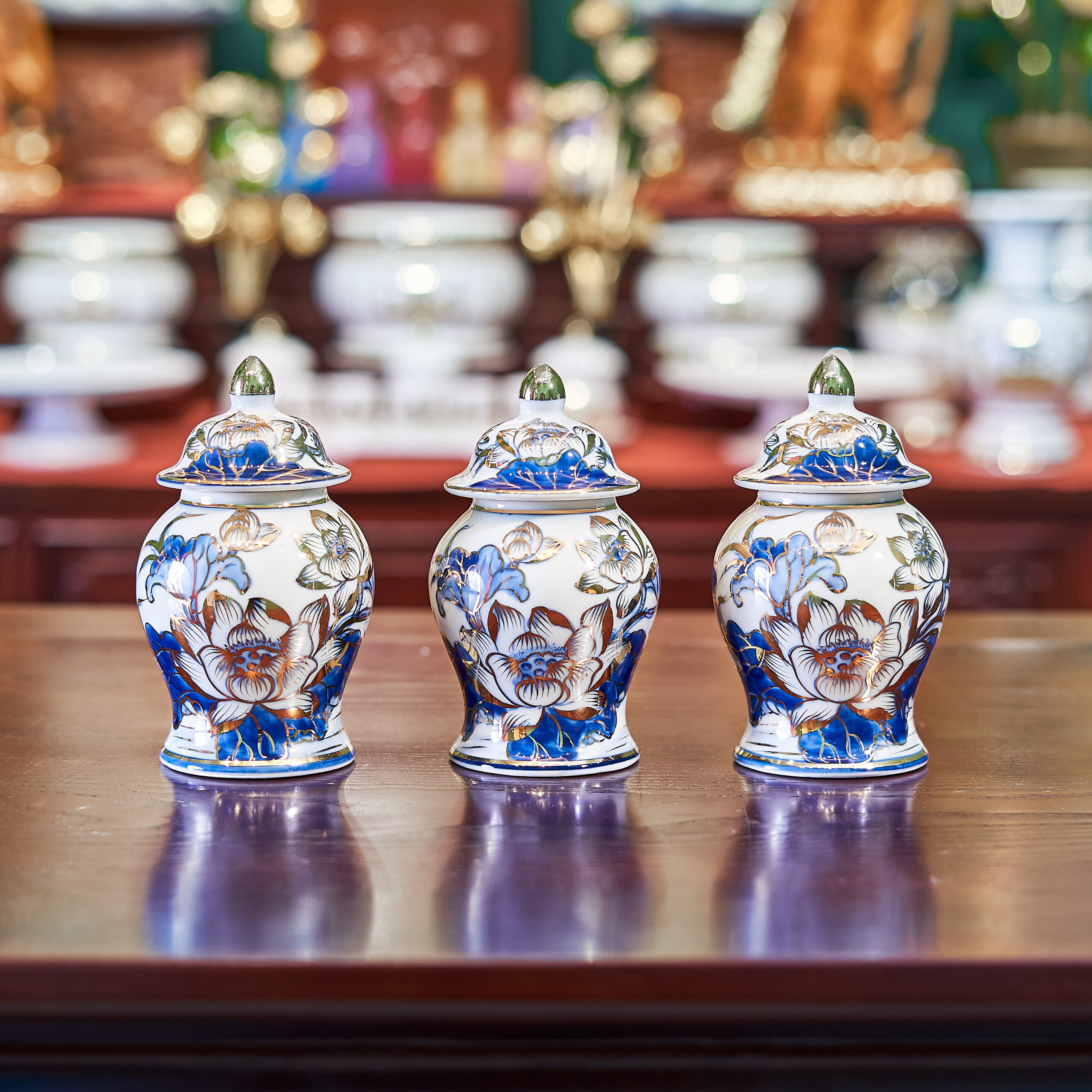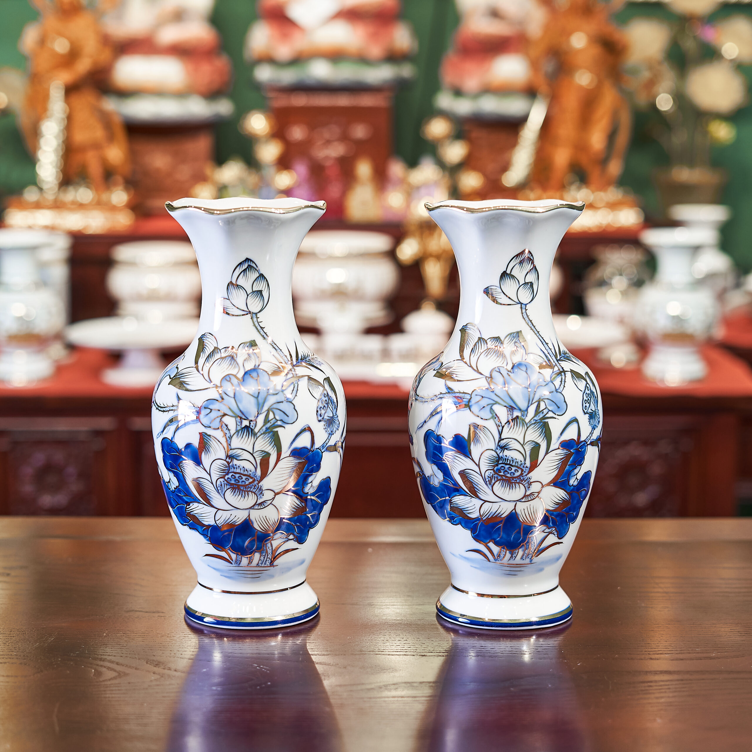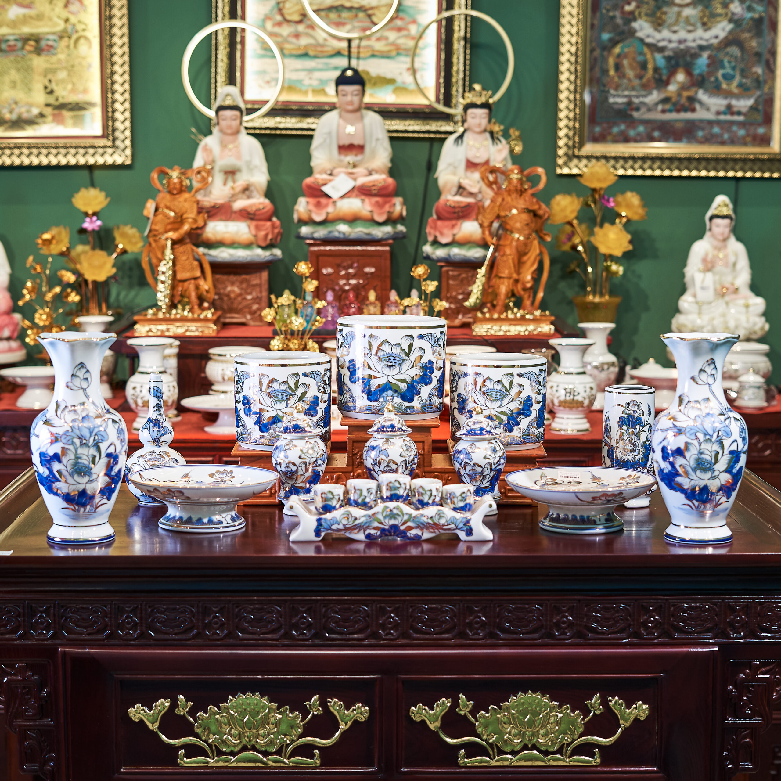 – Tên SP: Bộ Đồ Thờ Sứ Bát Tràng Sen Lộc Phát Vẽ Vàng
