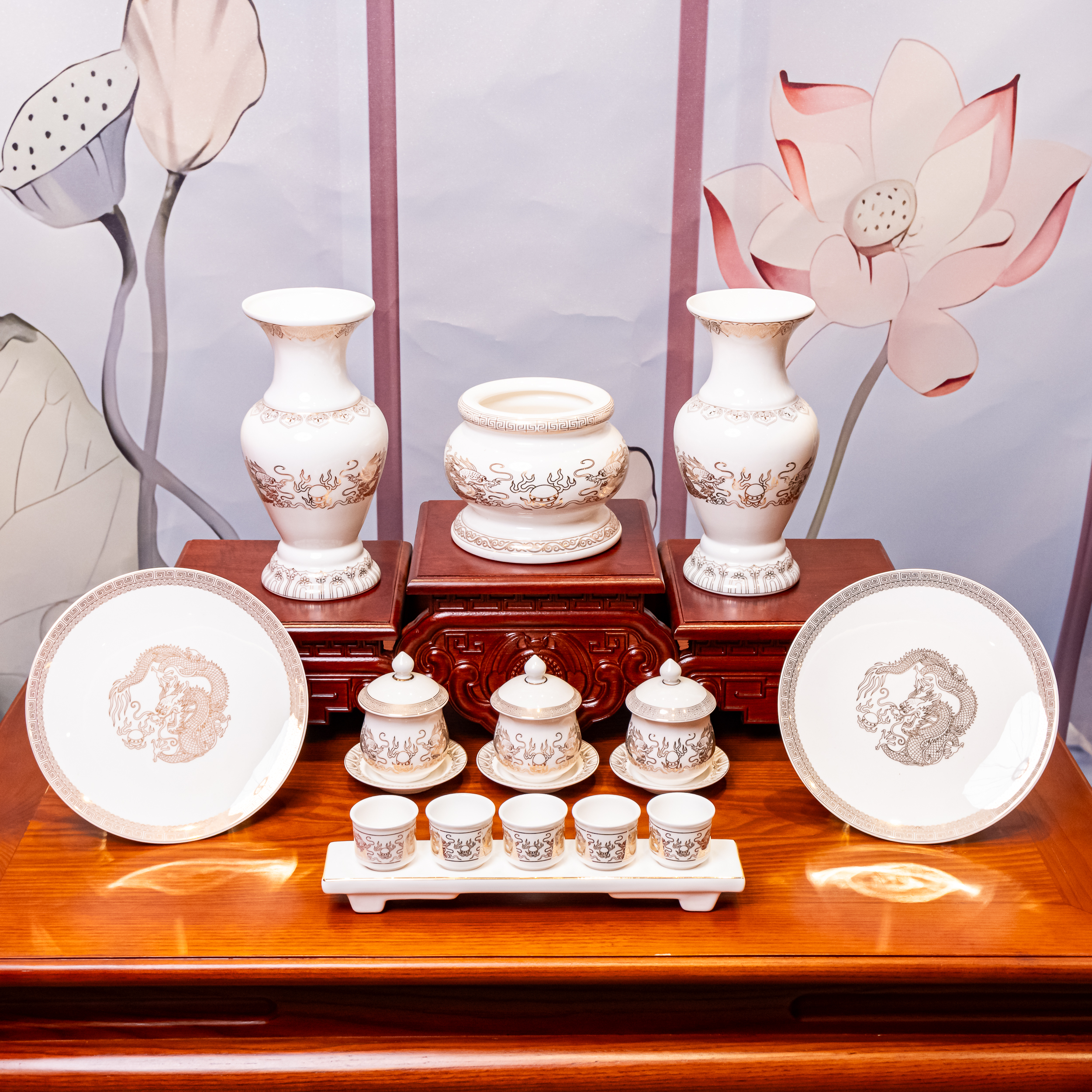 – Tên SP: Bộ Đồ Thờ Sứ Trắng Rồng Vàng