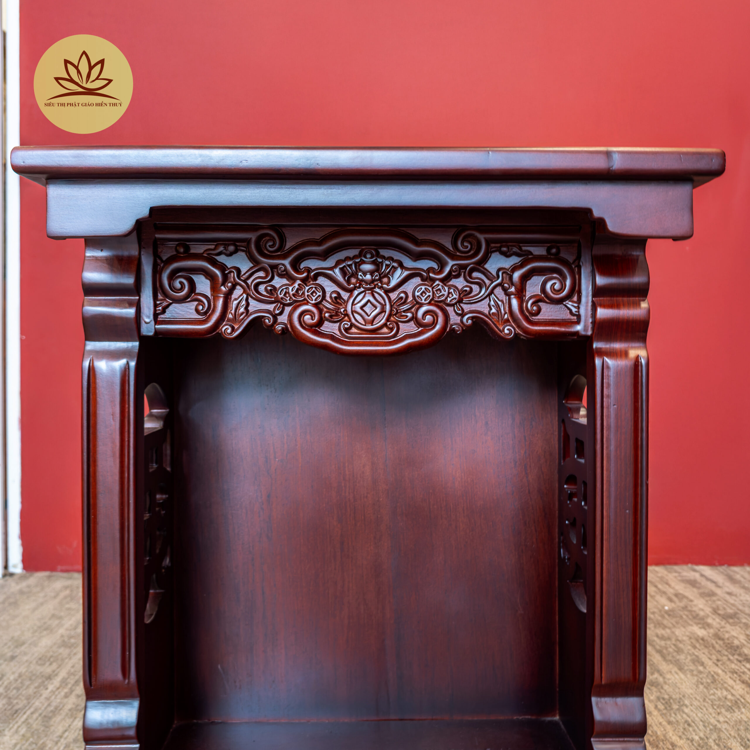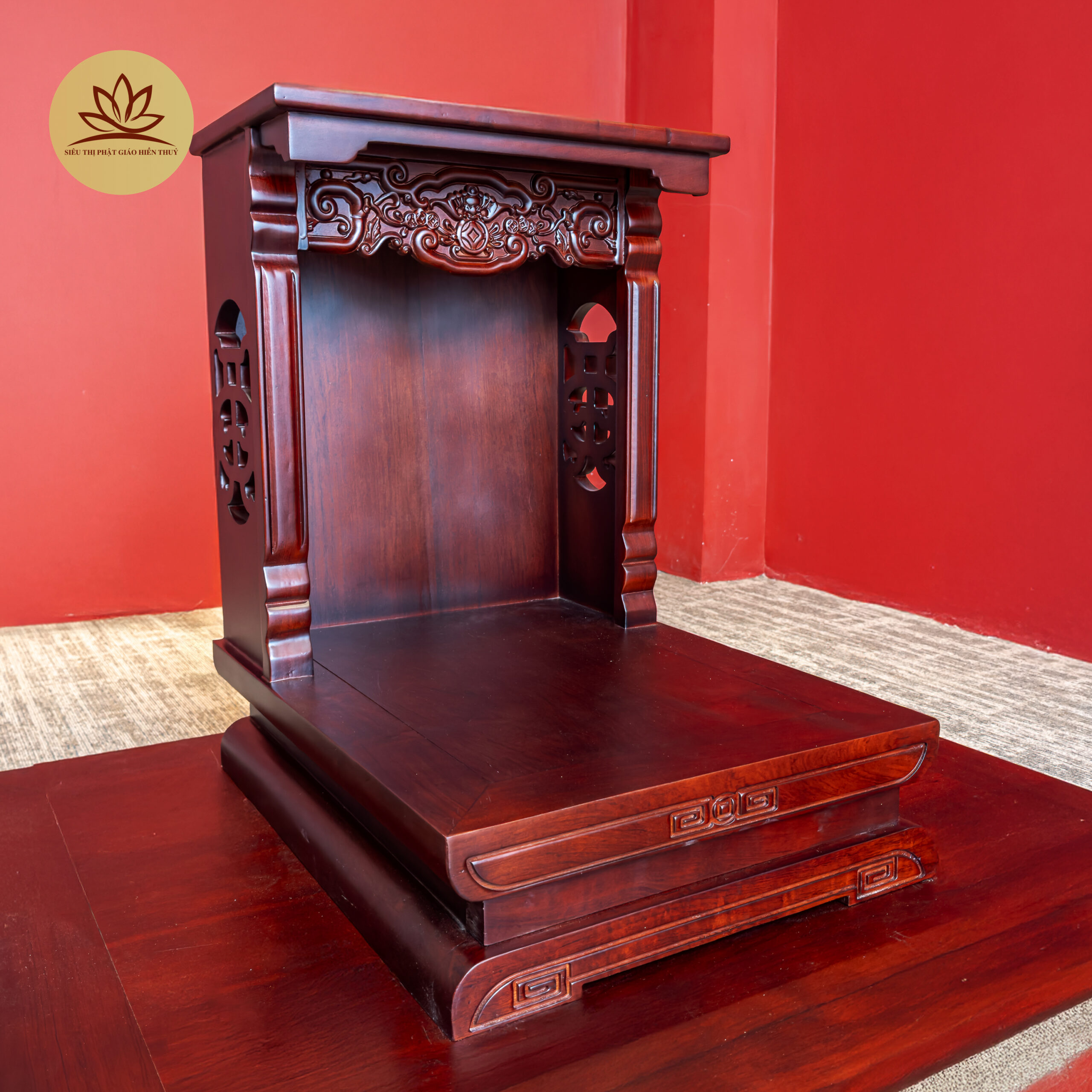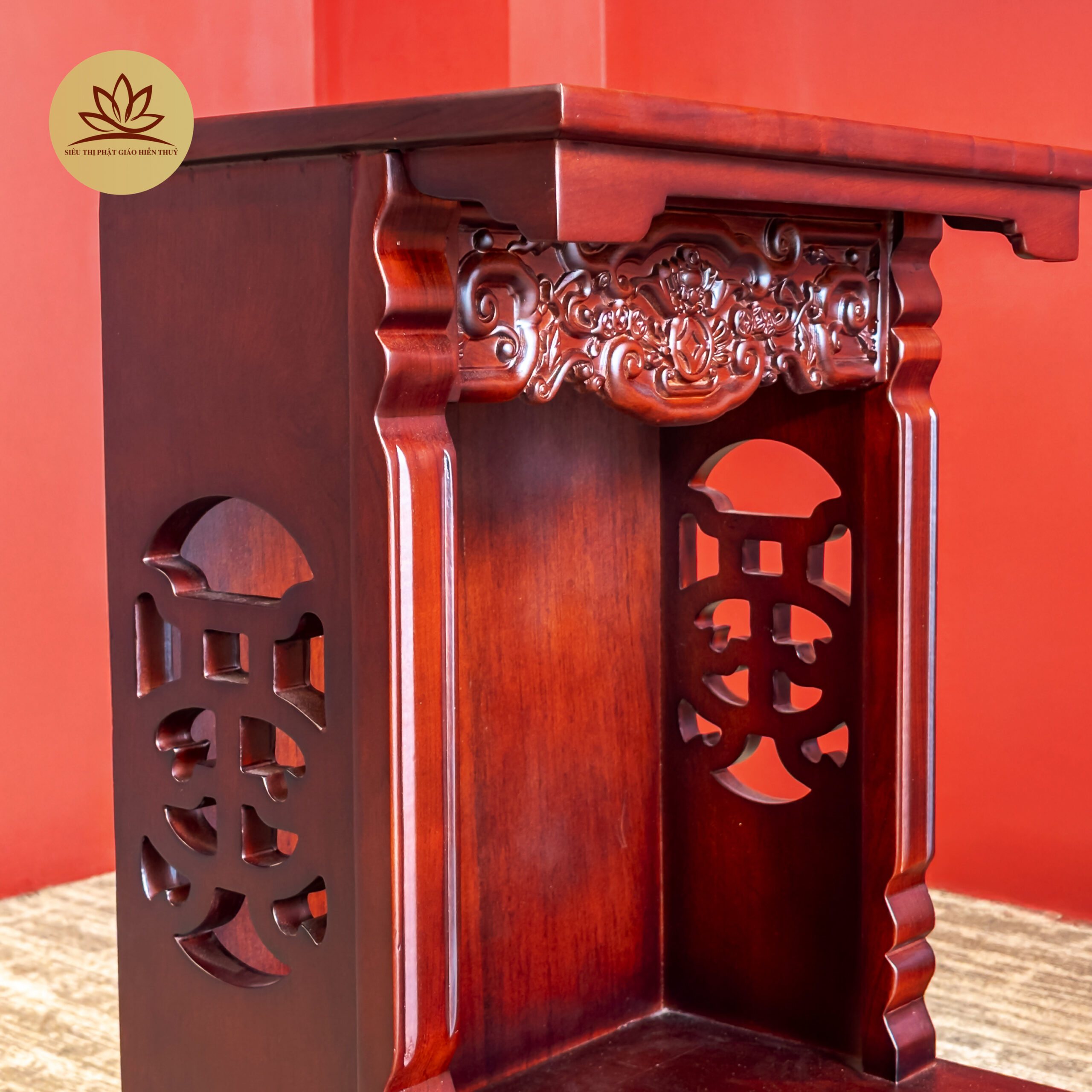 – Tên SP: Ban Thần Tài Gỗ Hương Mái Bằng Cột Tròn Nâu Gụ