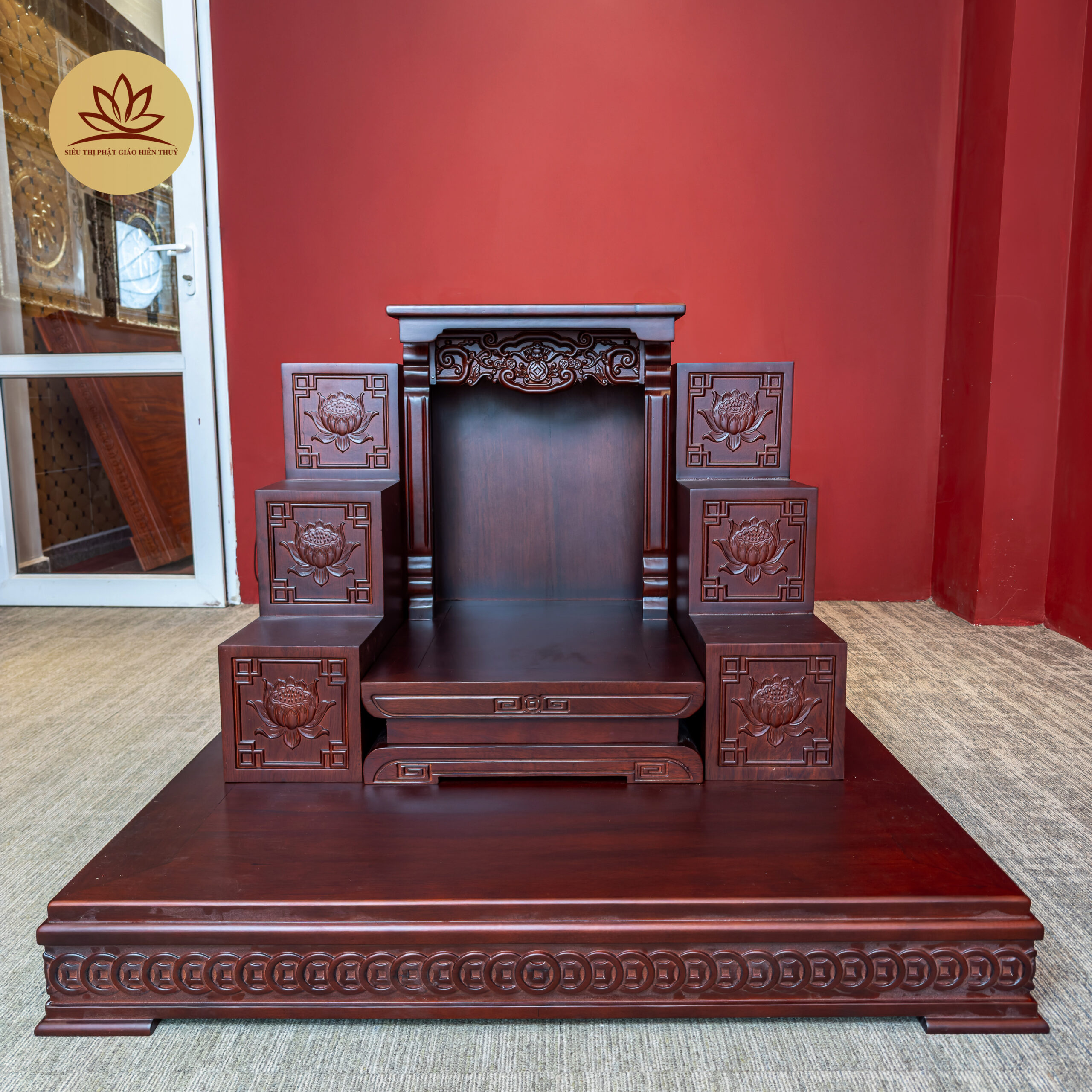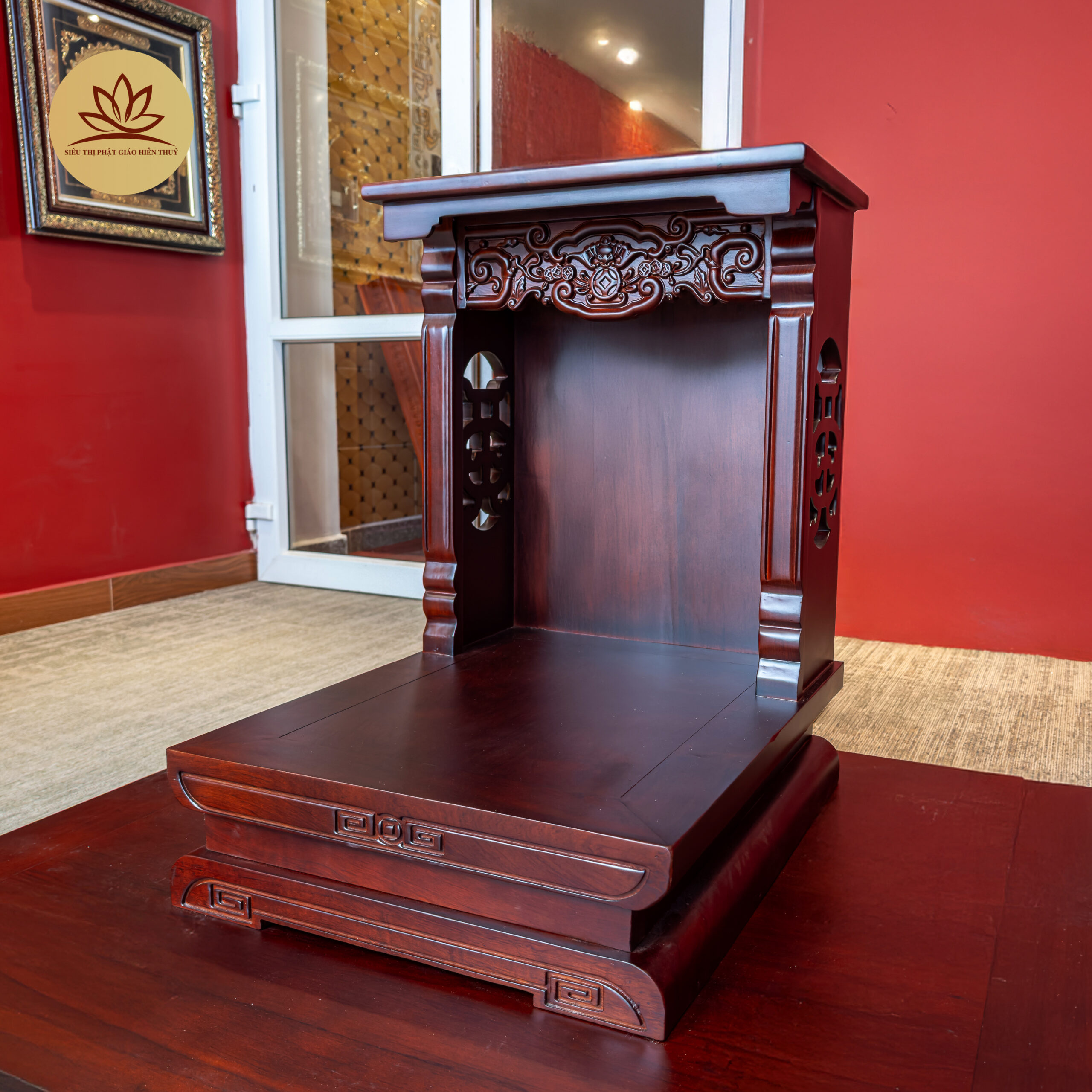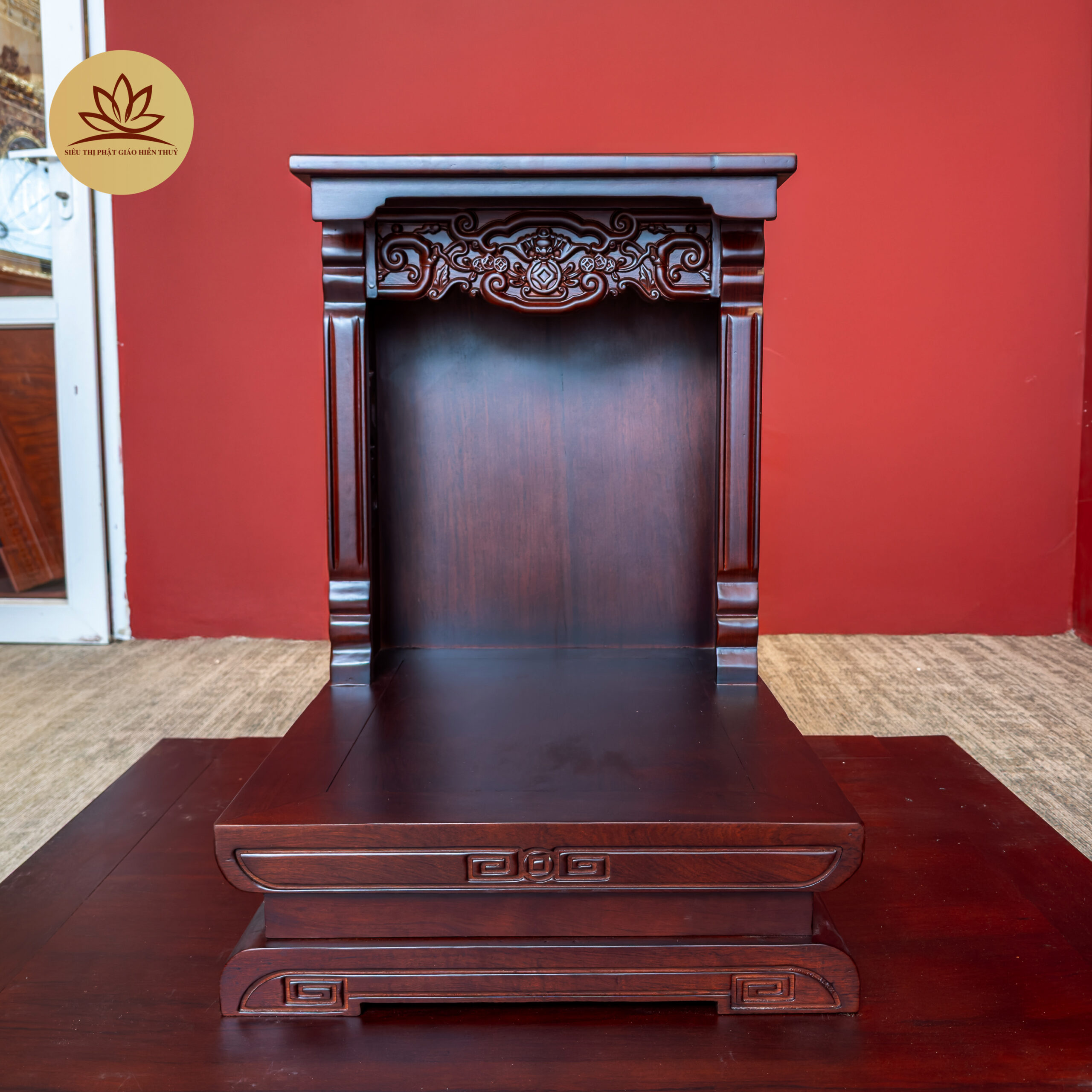 – Tên SP: Ban Thần Tài Gỗ Hương Mái Bằng Cột Tròn Nâu Gụ