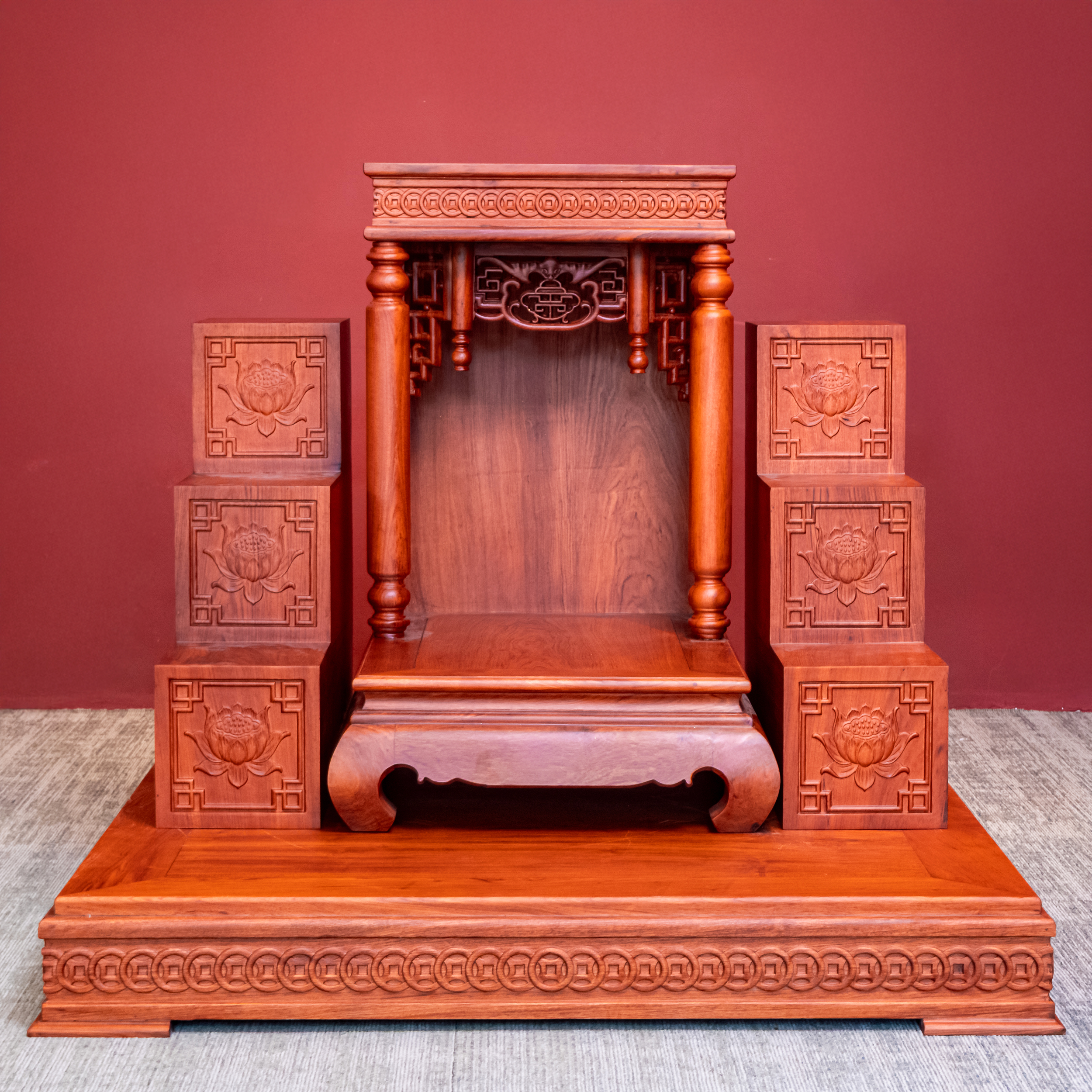 – Tên SP: Ban Thờ Thần Tài Thổ Địa Gỗ Hương Mái Bằng Cột Tròn