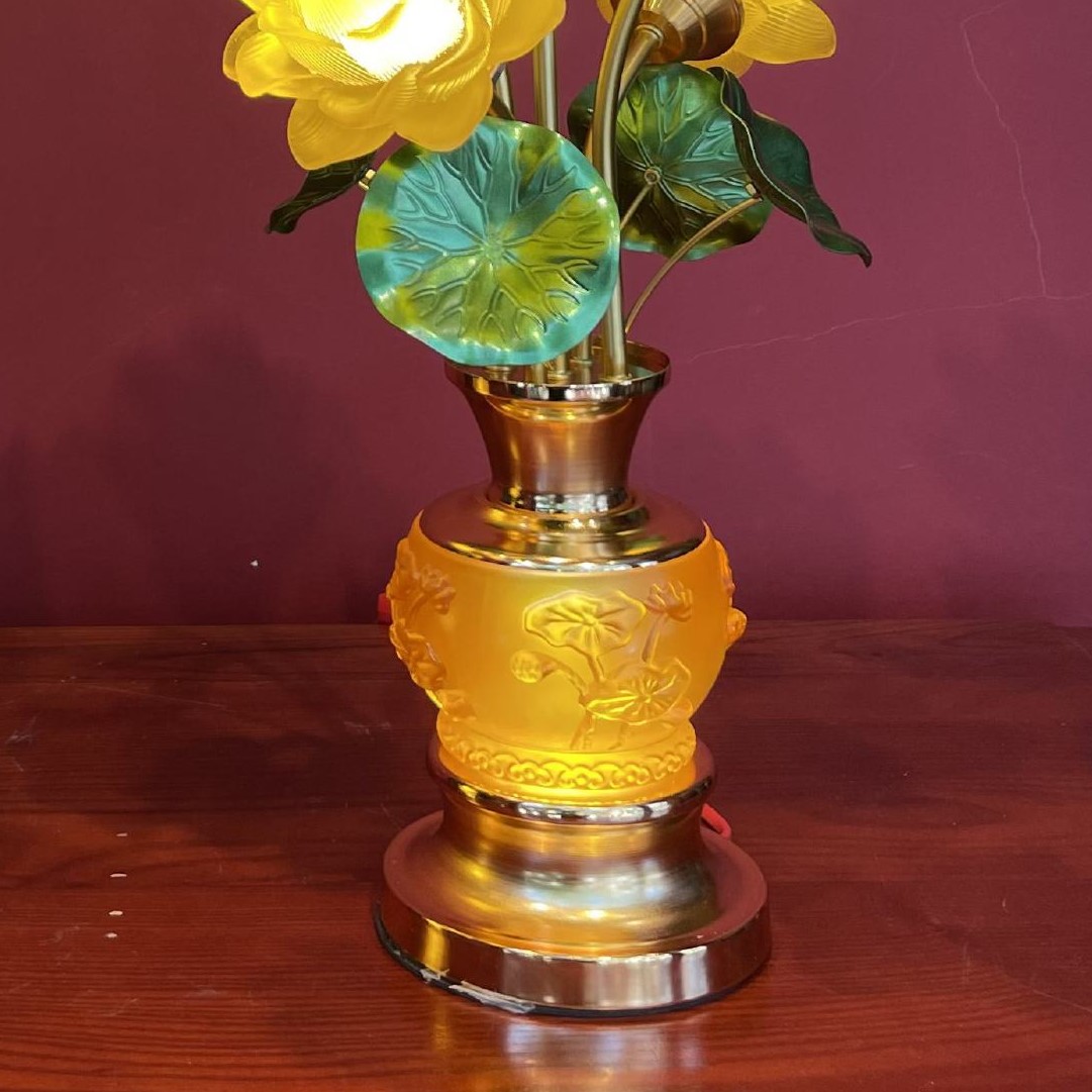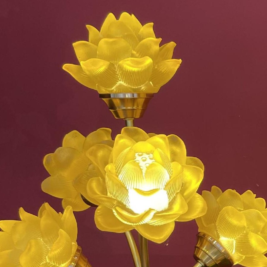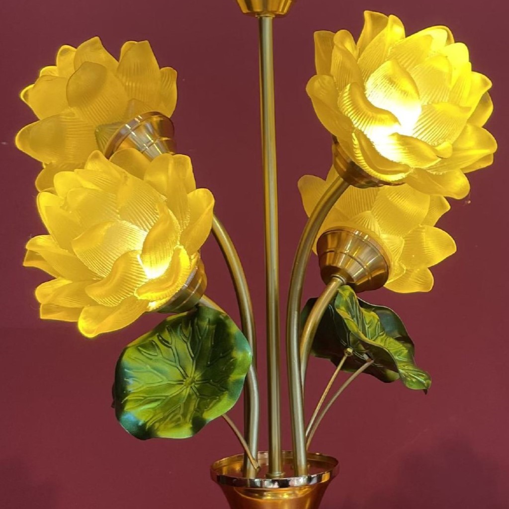 – Tên SP: Đèn Điện 5 Bông Bầu Lưu Ly Sen Nổi Lá Xanh