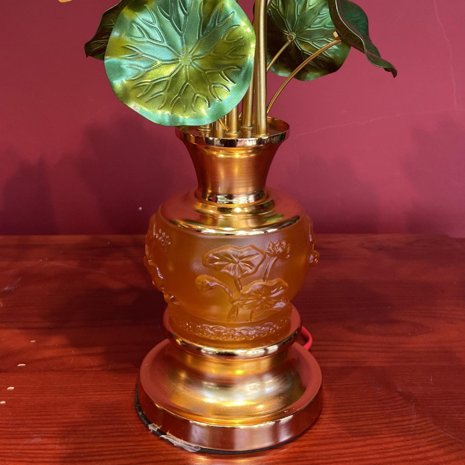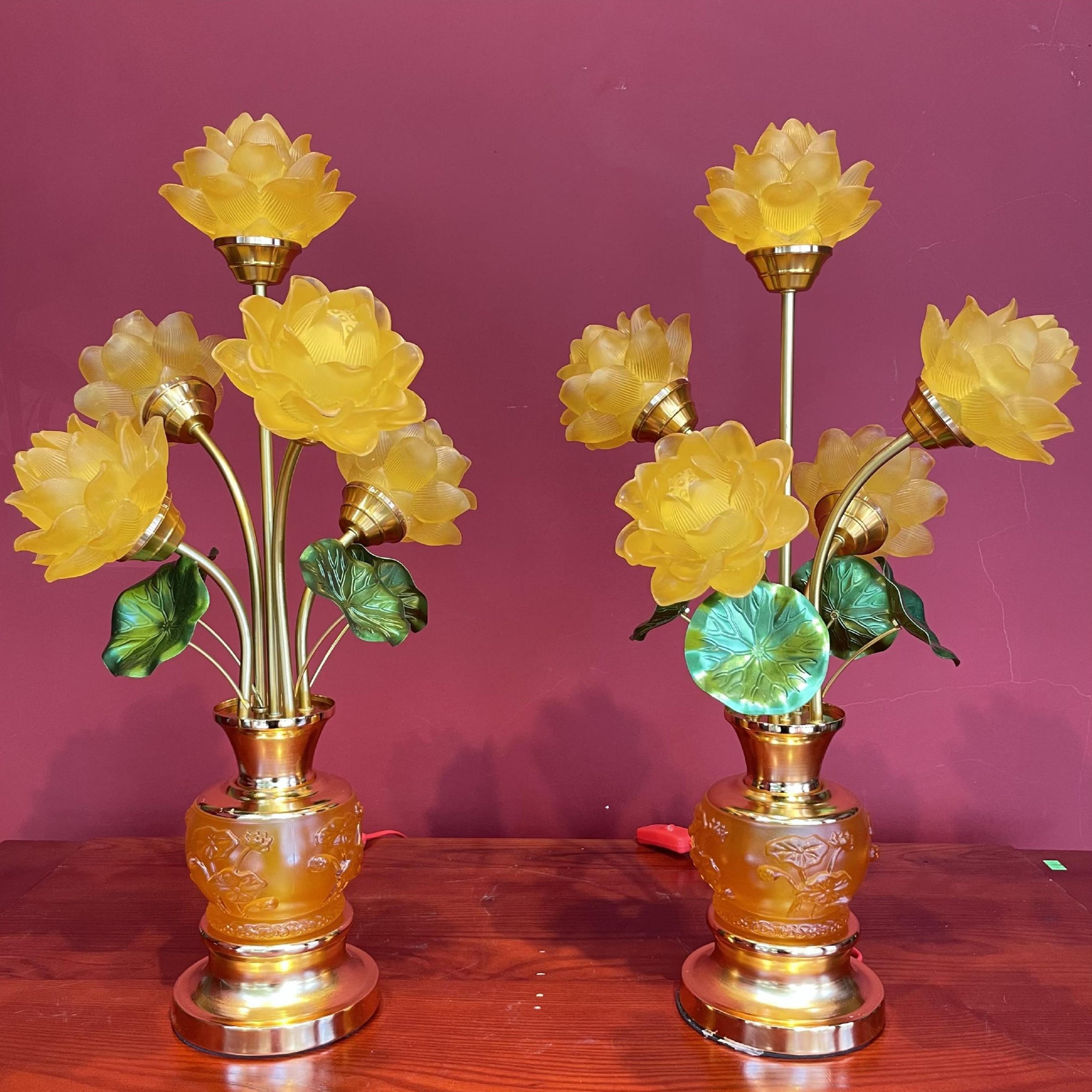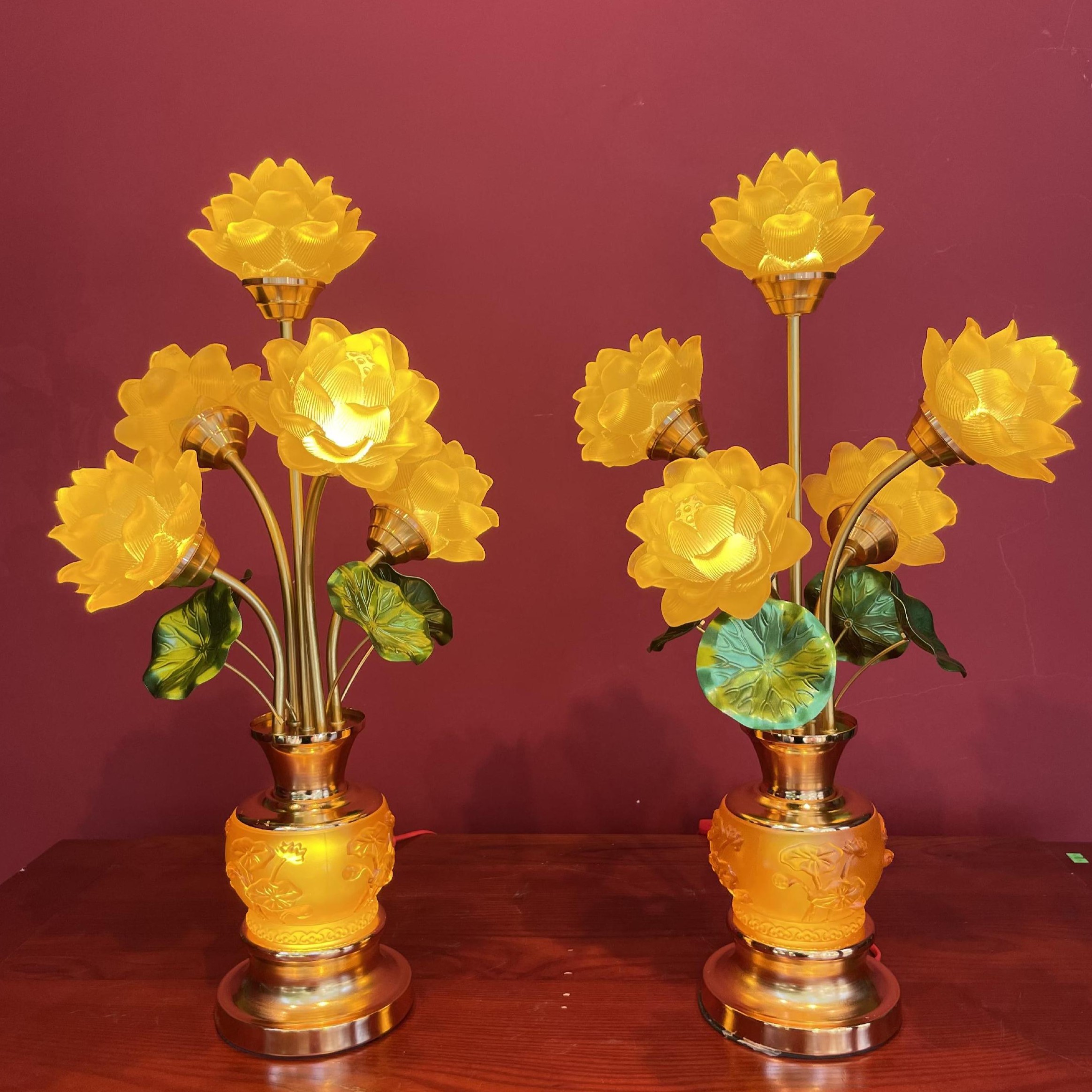 – Tên SP: Đèn Điện 5 Bông Bầu Lưu Ly Sen Nổi Lá Xanh