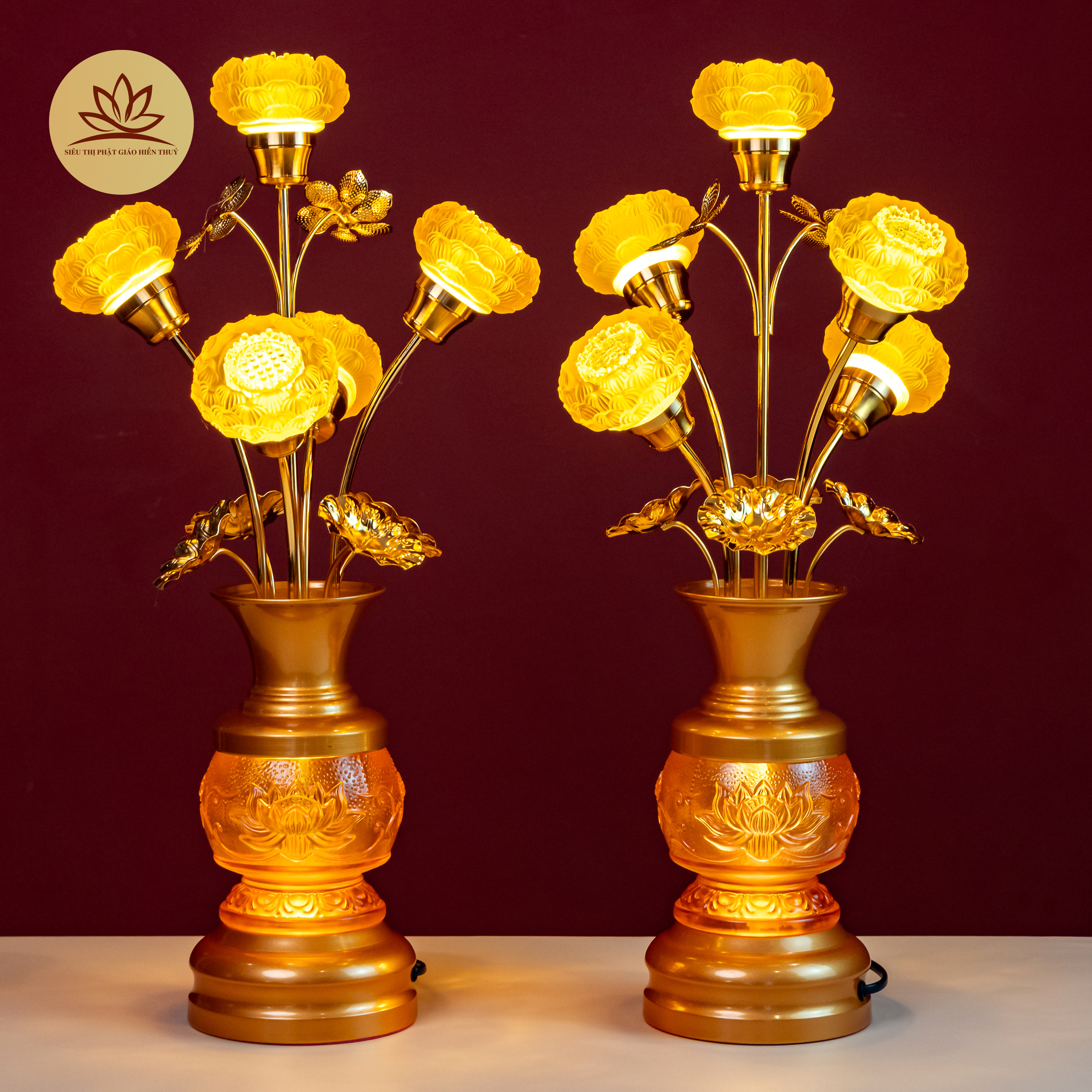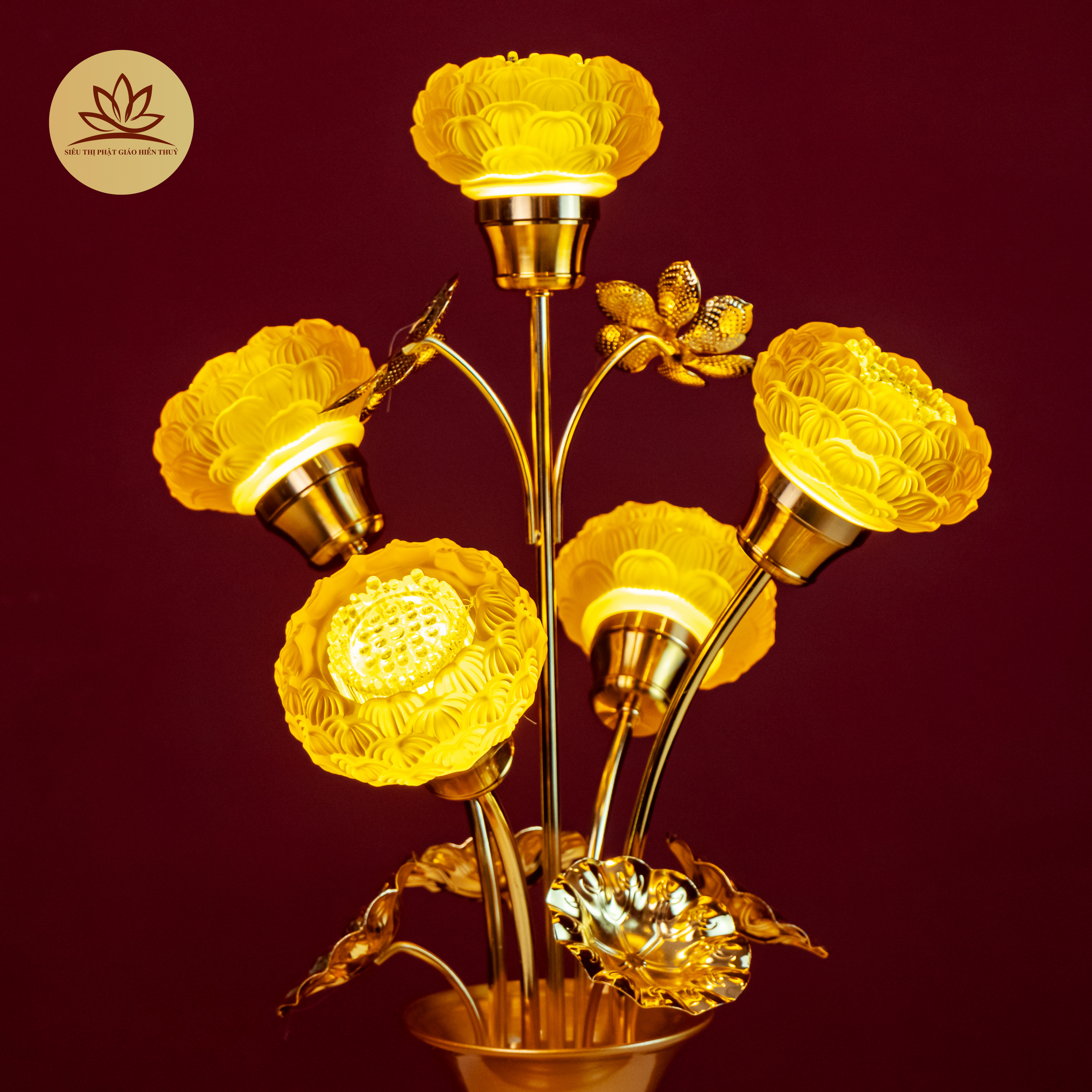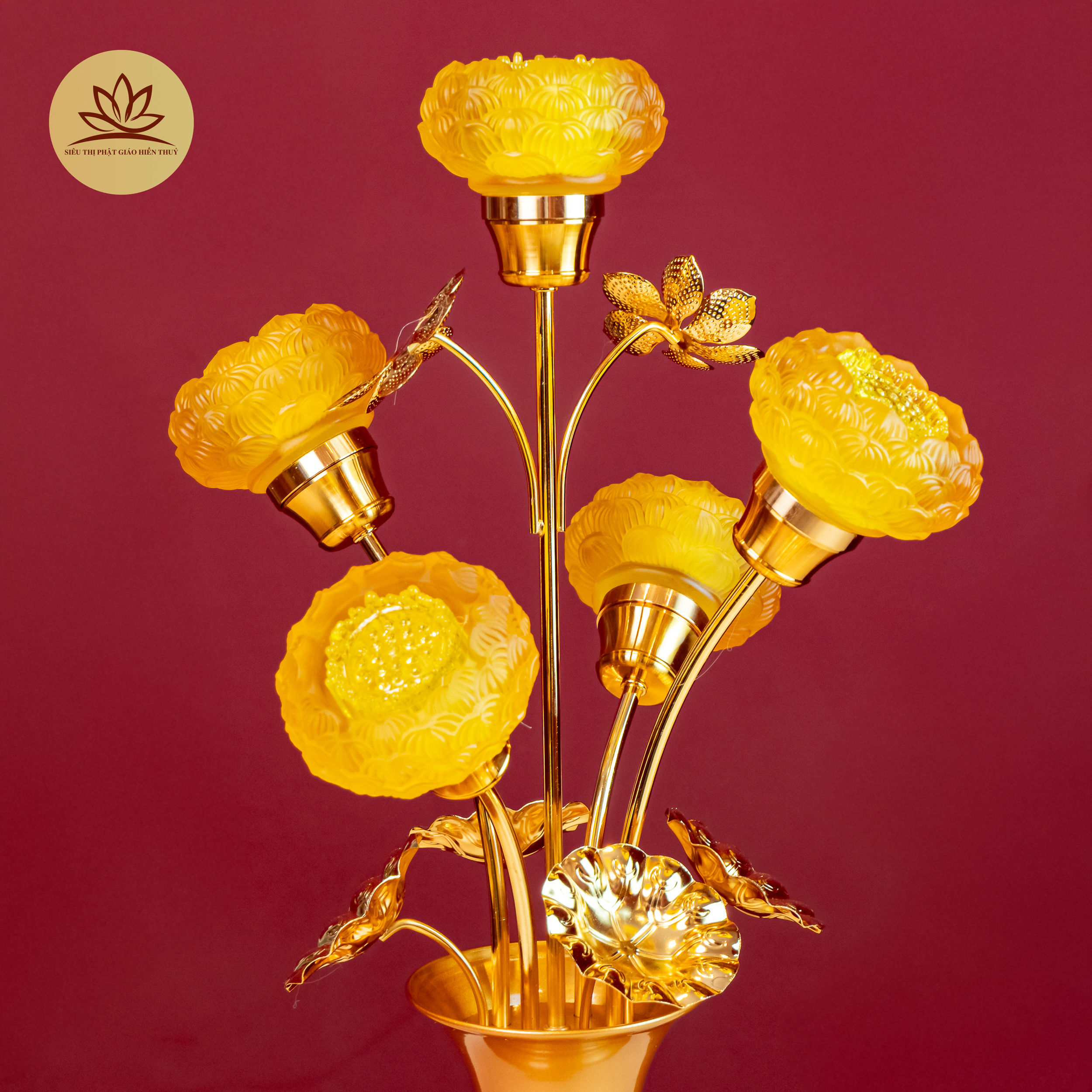 – Tên SP: Đôi Đèn Điện Lưu Ly Hoa Sen – 5 Bông (Đôi)
