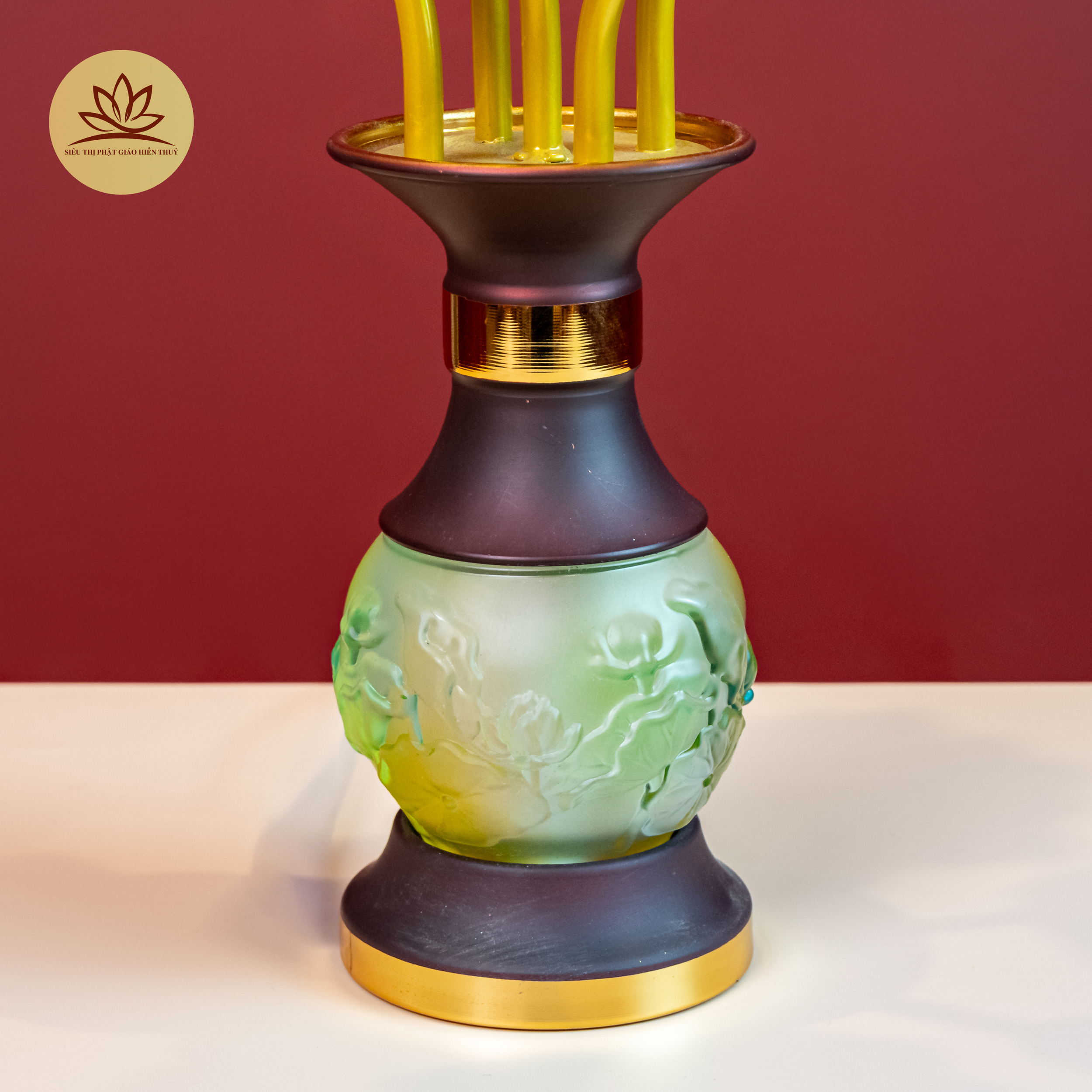 – Tên SP: Đôi Đèn Điện Lưu Ly Nhiều Bông Thân Lưu Ly Phối Hợp Kim 5 Chi Tiết