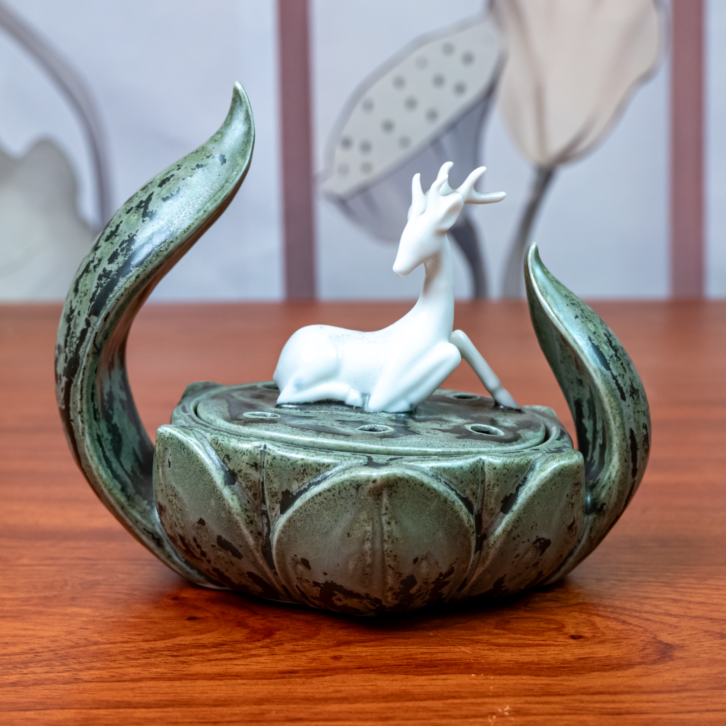 – Tên SP: Lư Đốt Trầm Gốm Nắp Hươu