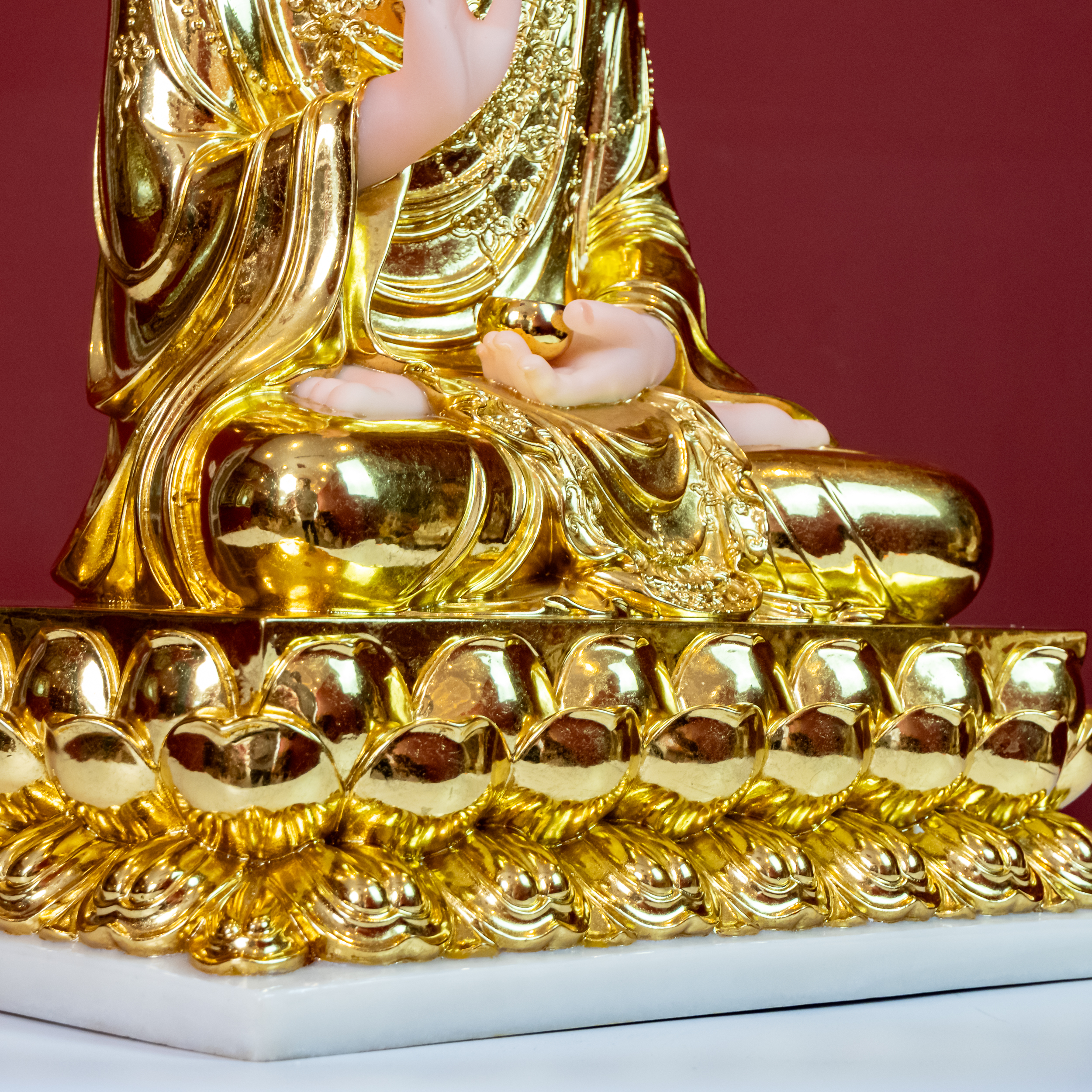 – Tên SP: Tượng Bổn Sư Thích Ca Mâu Ni Đá Thạch Anh Tọa Đài Sen – Dát Vàng