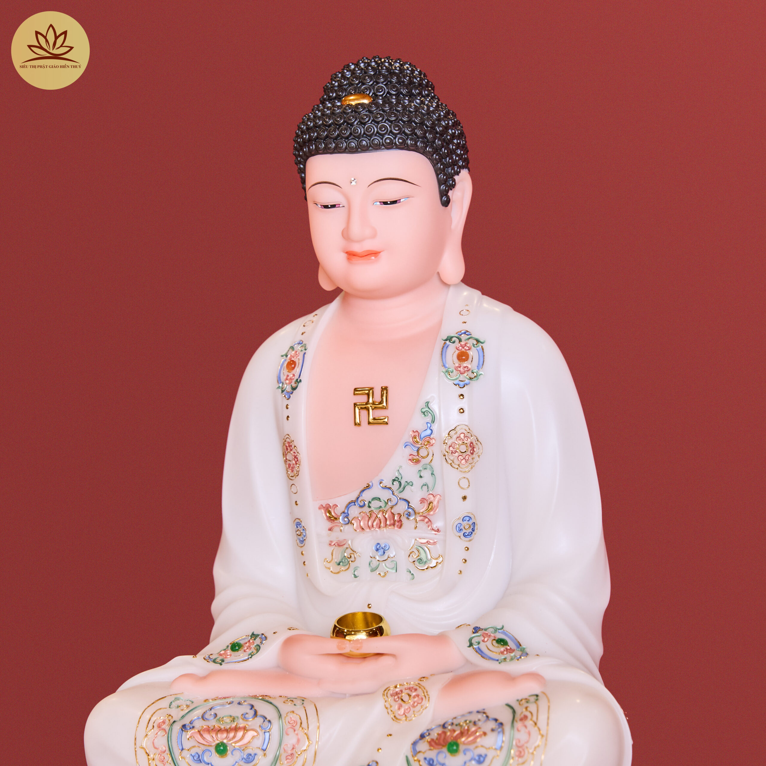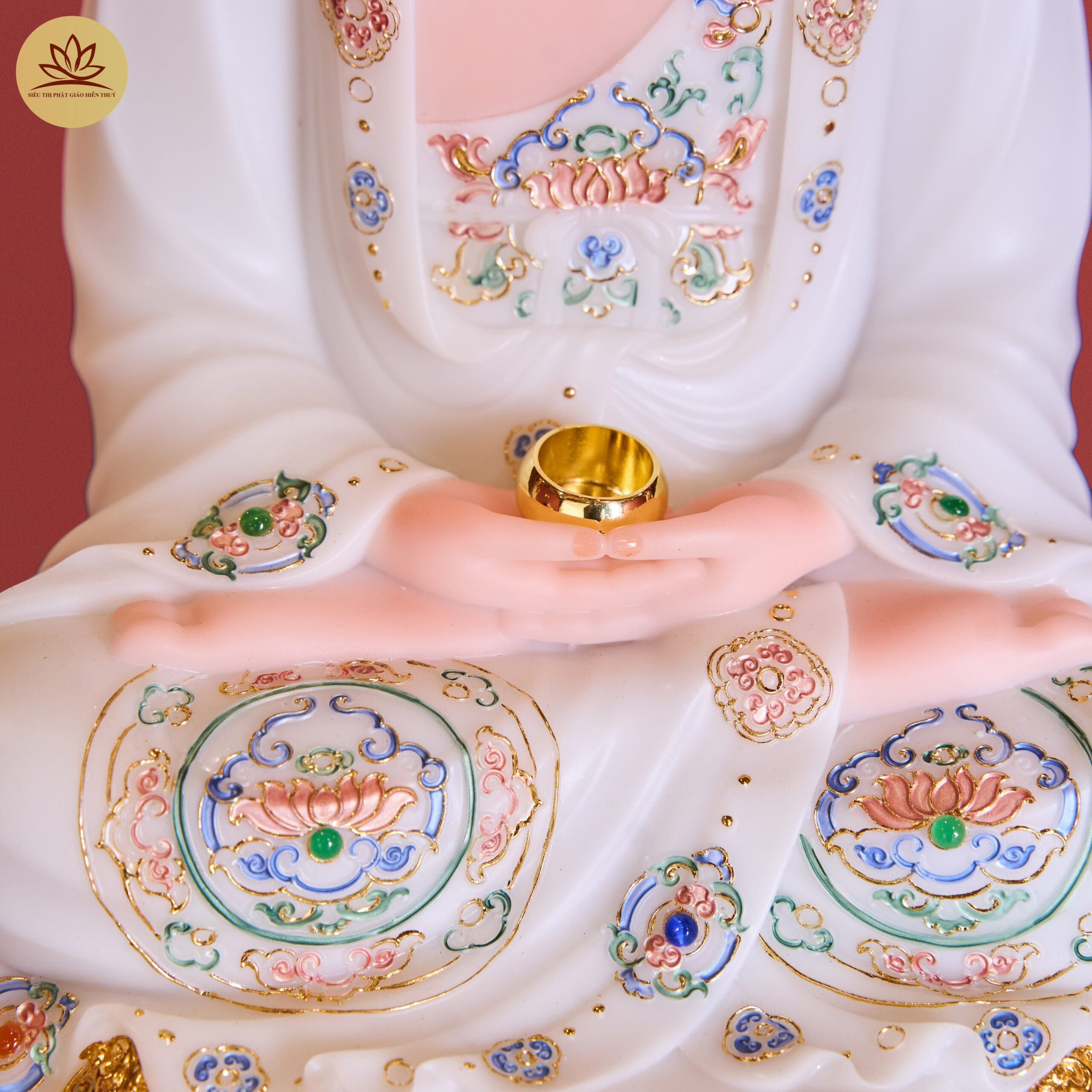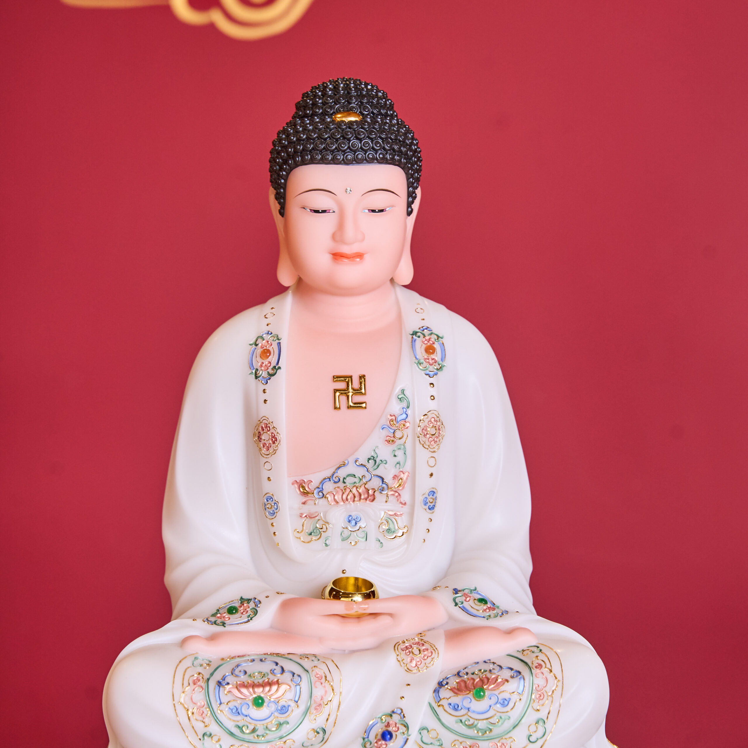 – Tên SP: Tượng Bổn sư Thích ca Mâu Ni Tọa Đài Sen Trắng Vẽ Gấm