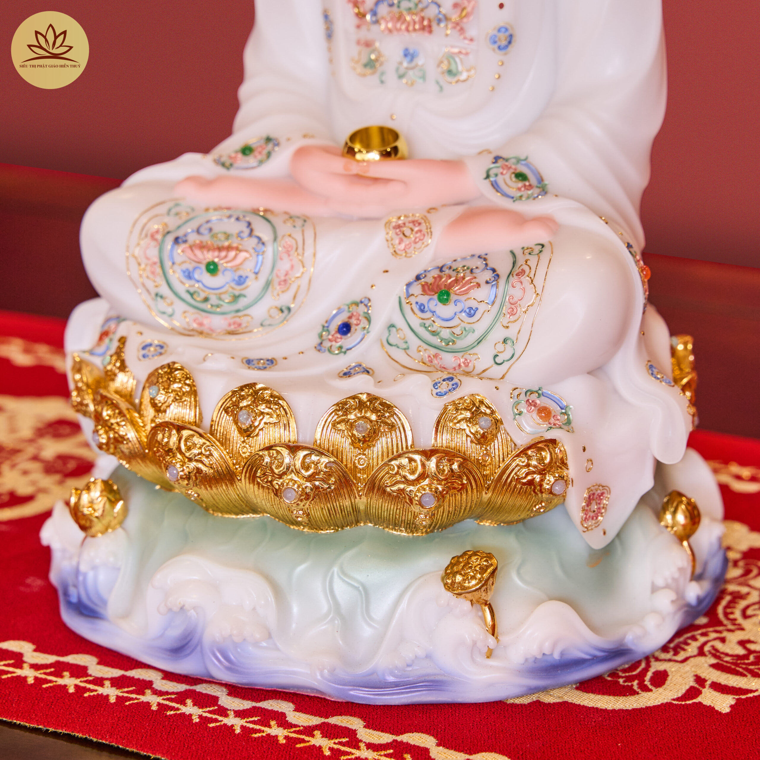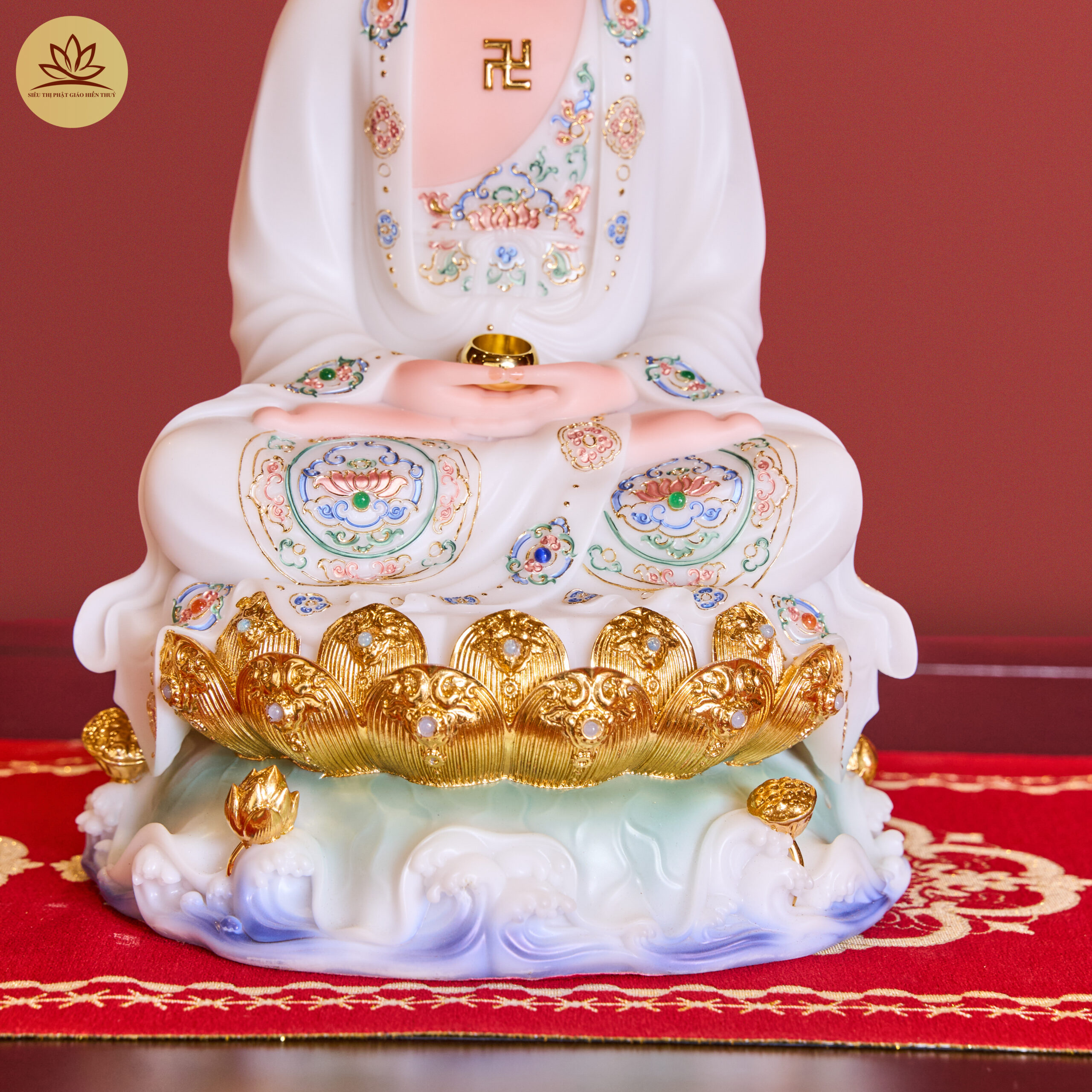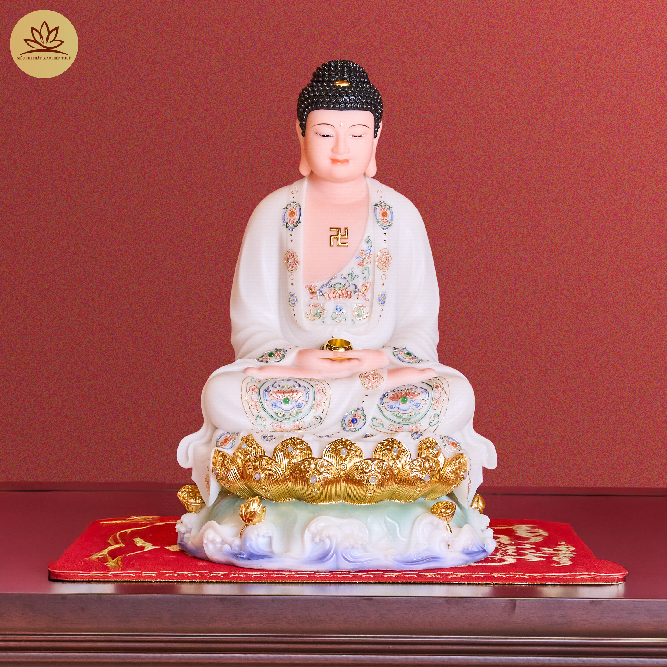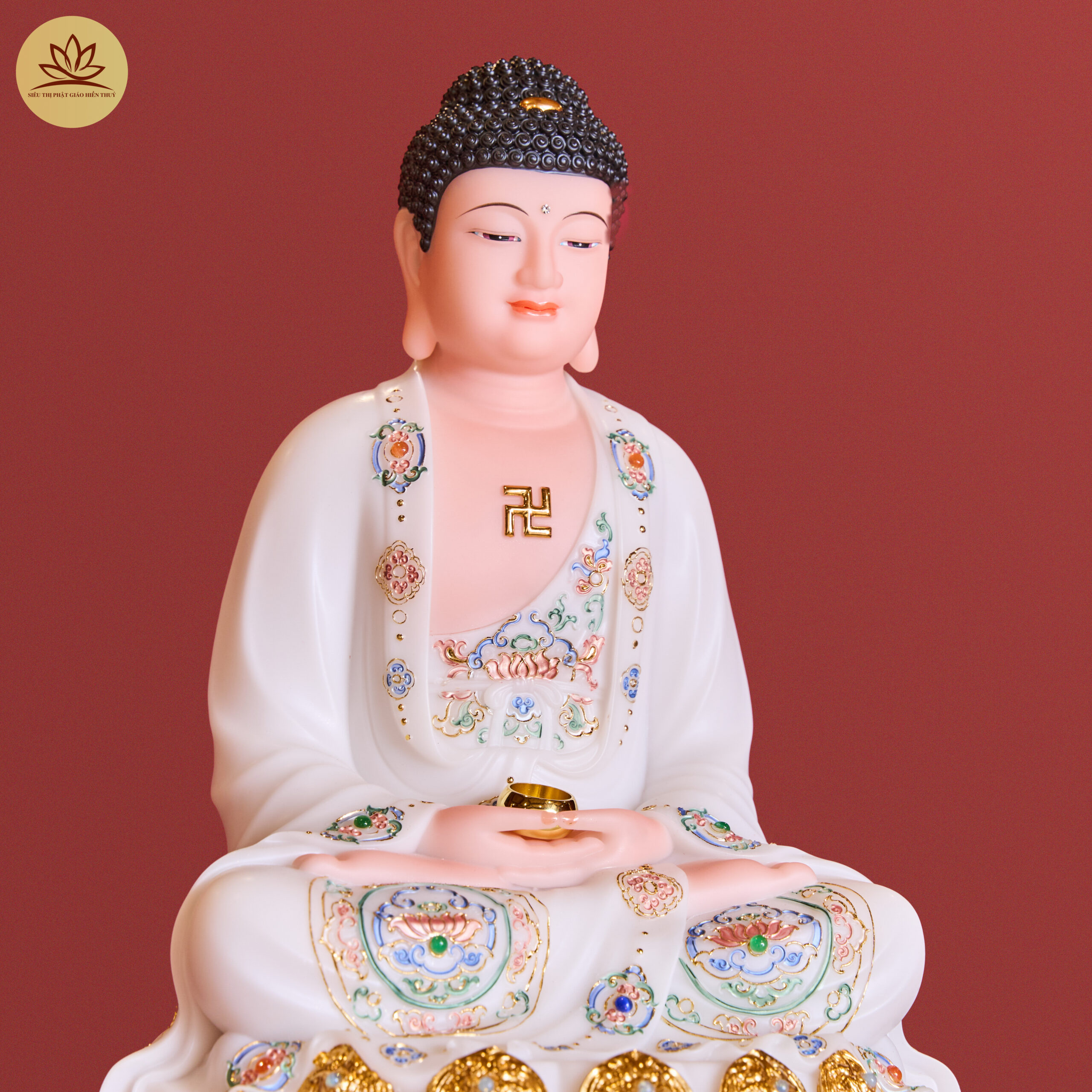 – Tên SP: Tượng Bổn sư Thích ca Mâu Ni Tọa Đài Sen Trắng Vẽ Gấm