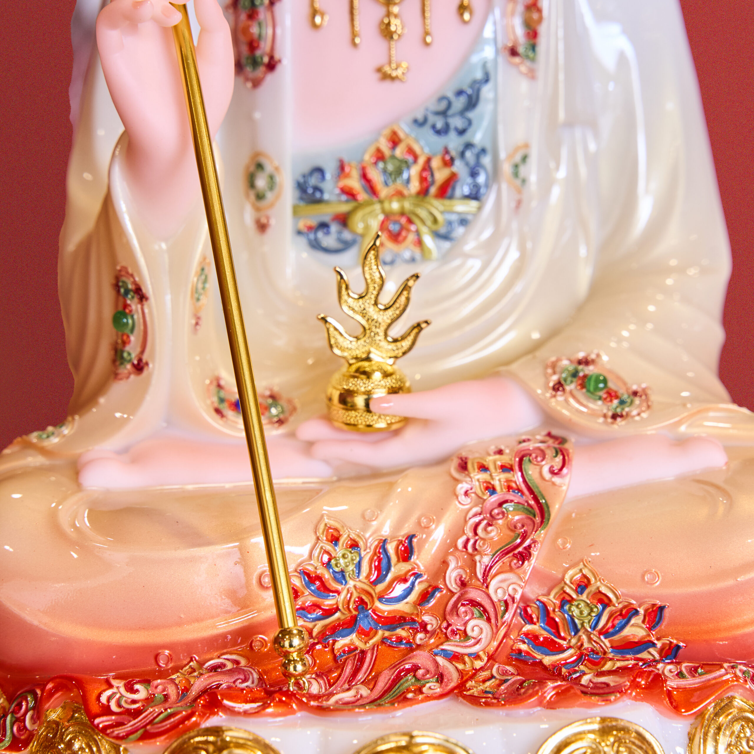 – Tên SP: Tượng Địa Tạng Tọa Đài Sen Cam Loang Dát Vàng