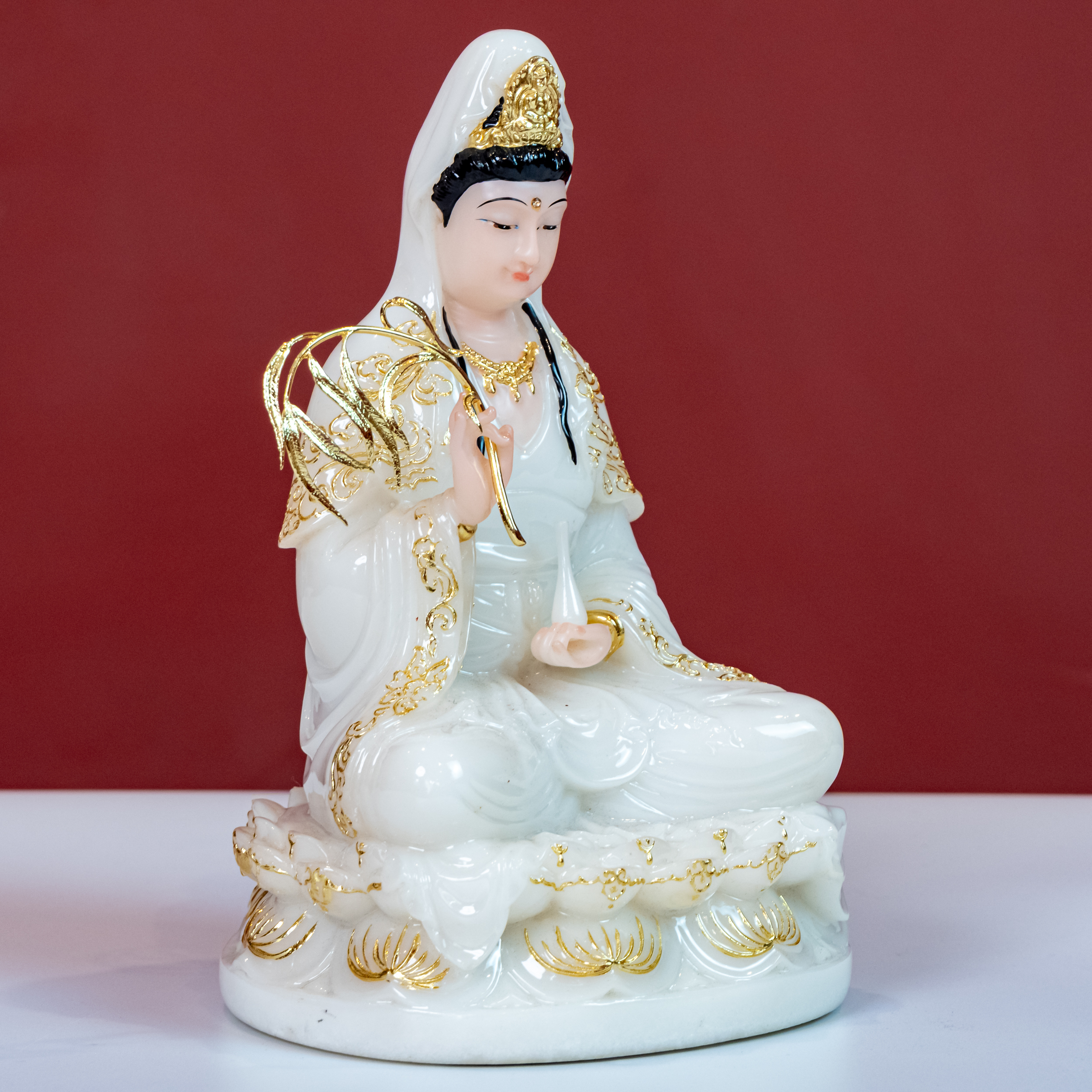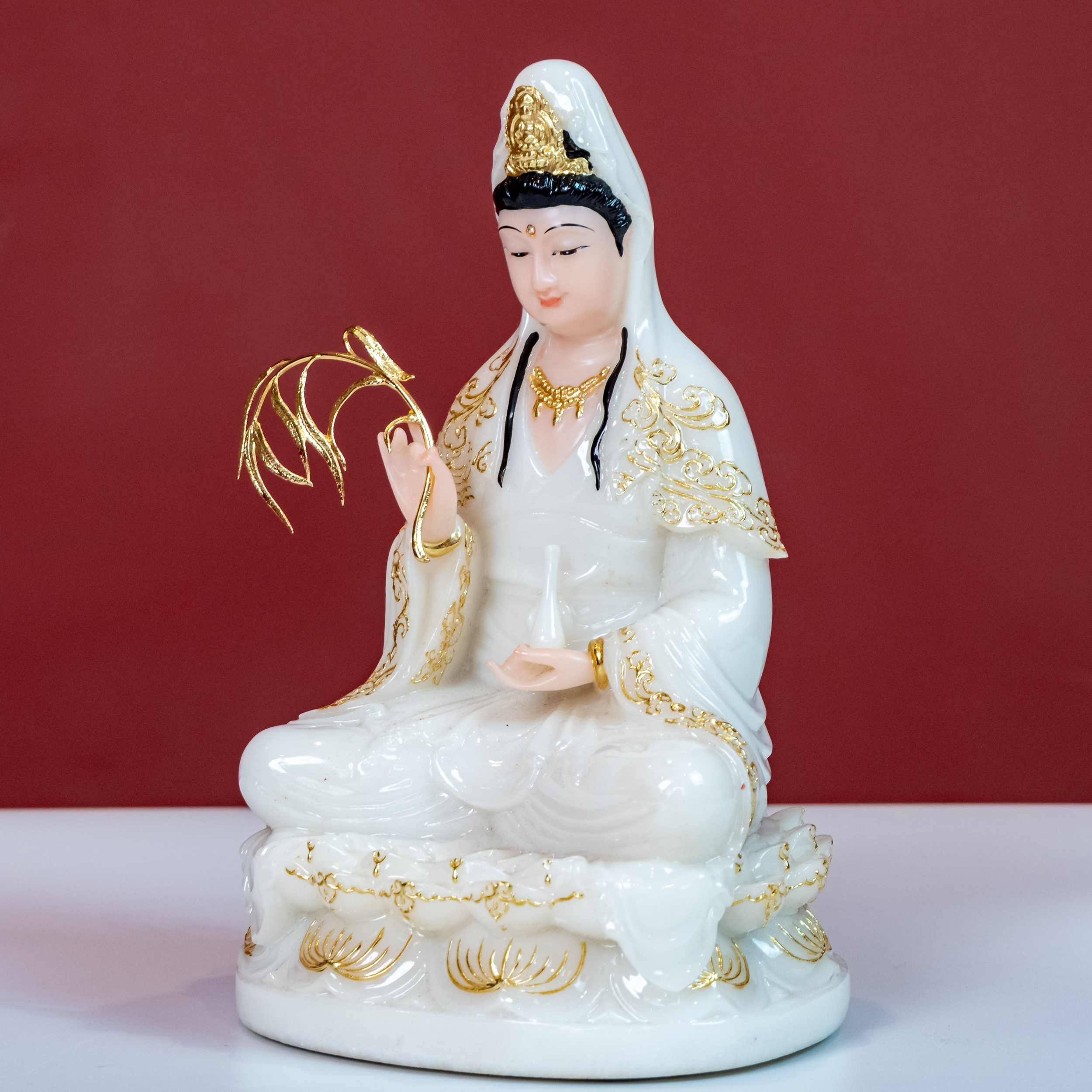 – Tên SP: Tượng Quan Âm Ngồi Đá Đài Loan – Màu Trắng