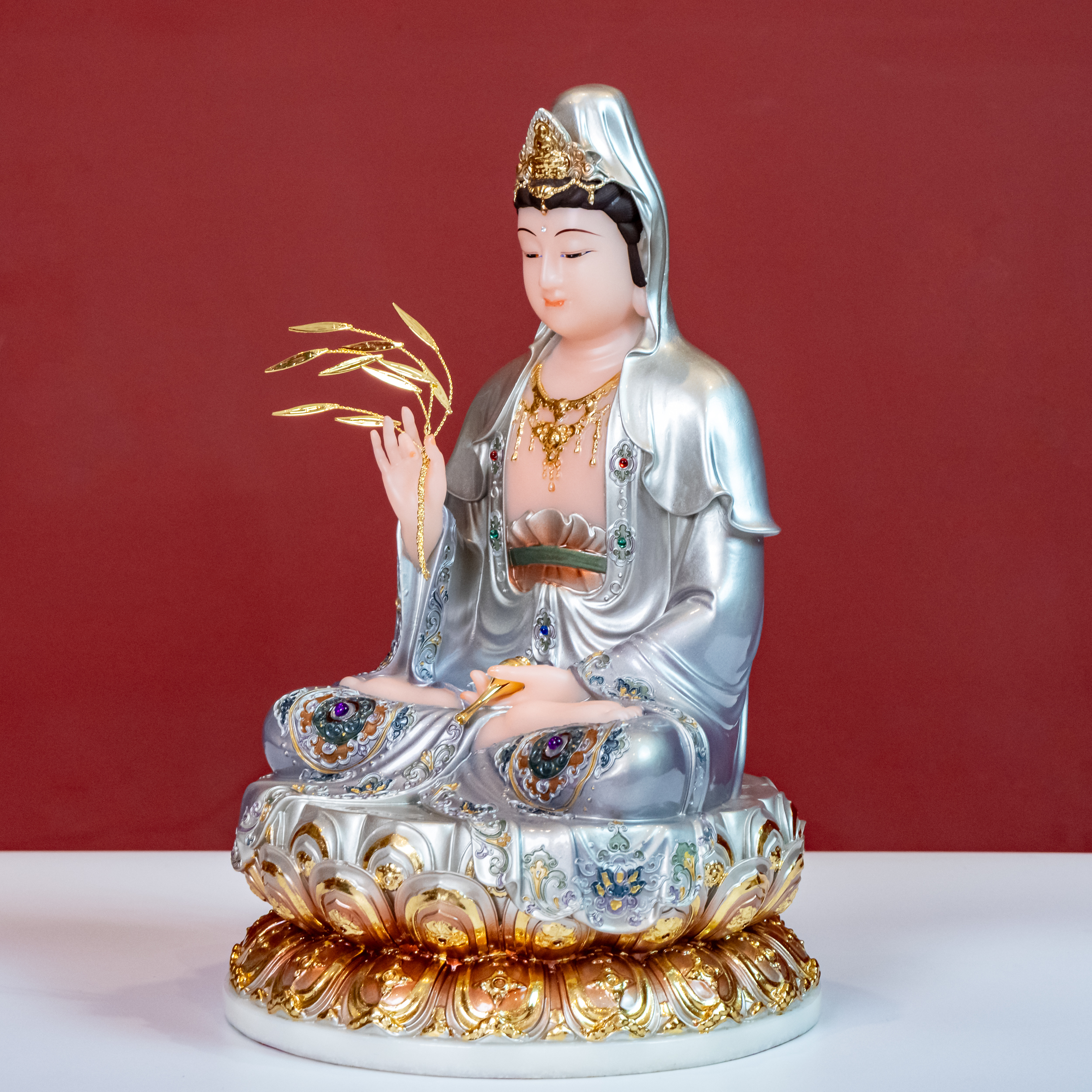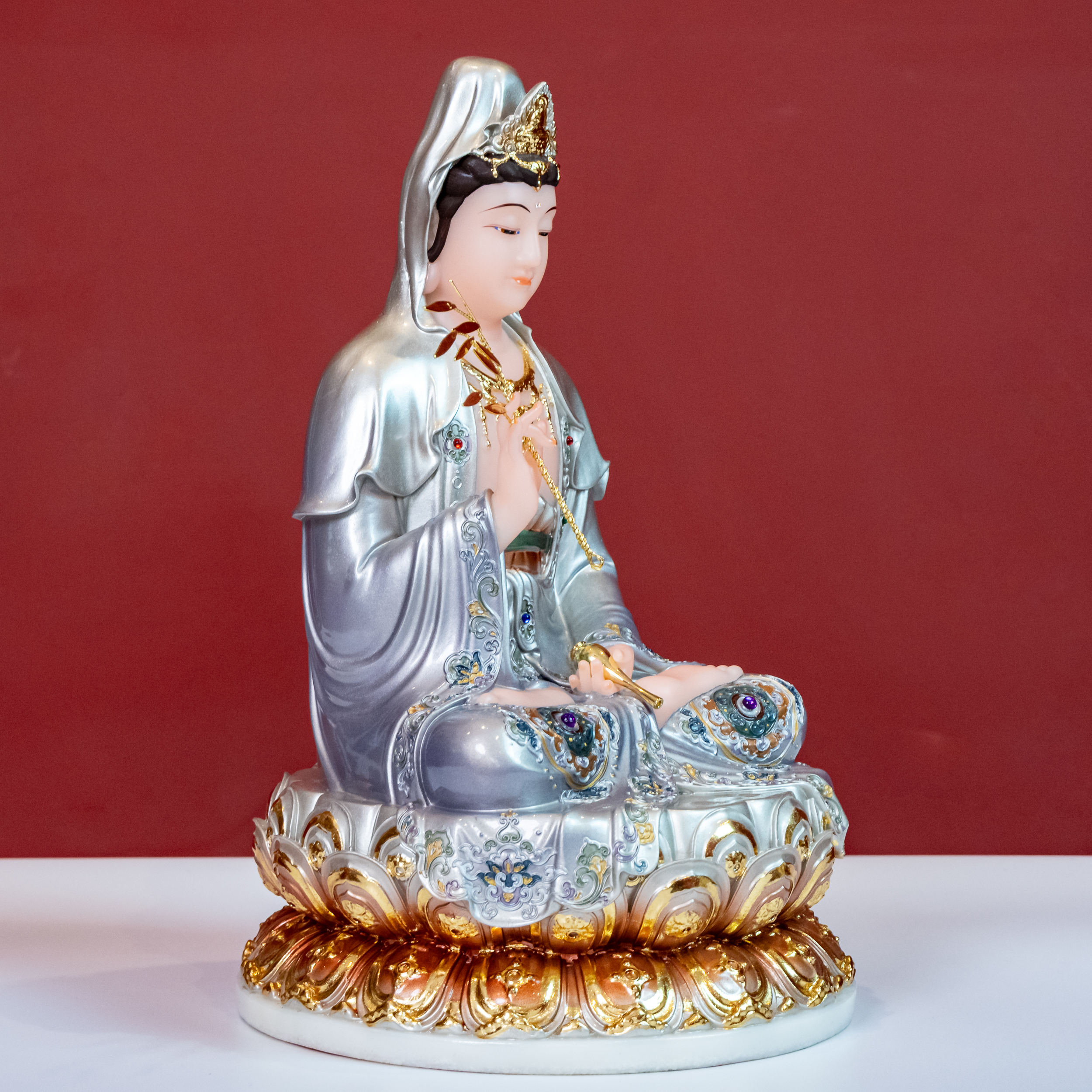 Quán Thế Âm Bồ Tát là một trong những vị Bồ Tát được kính trọng nhất trong Phật Giáo Đại Thừa. Tôn Tượng Quán Thế Âm Bồ Tát là biểu tượng của lòng từ bi vô hạn, sự cứu độ, niềm tin và hy vọng. Tôn Tượng Quán Thế Âm Bồ Tát được làm bằng chất liệu cao cấp, bền đẹp, chạm khắc tinh xảo, tôn lên vẻ hiền từ mà trang nghiêm của Mẹ Quan Âm. Sở hữu Tôn Tượng Quan Âm Bồ Tát trên ban thờ đem đến cho không gian vẻ uy nghiêm, sang trọng, thể hiện lòng thành kính của gia chủ với bậc thánh.
