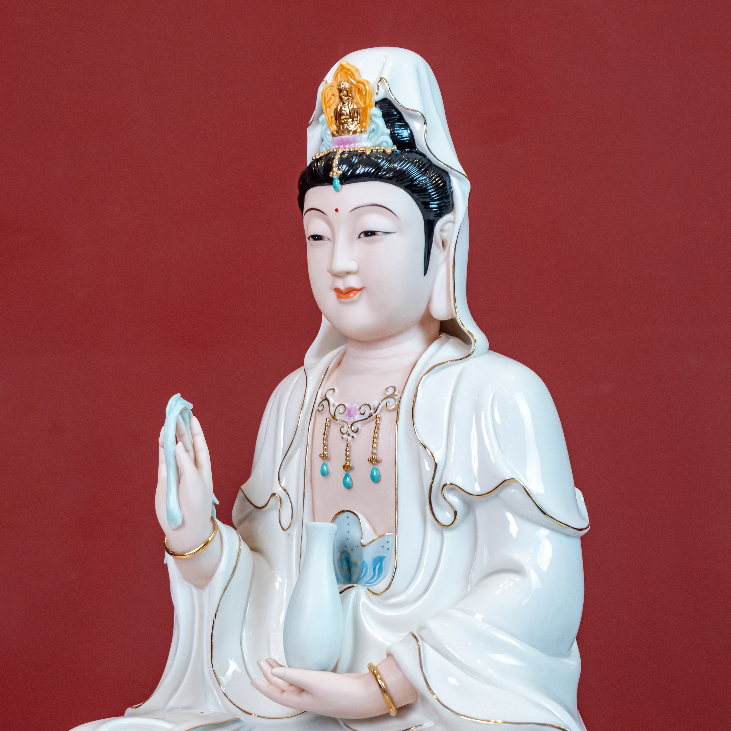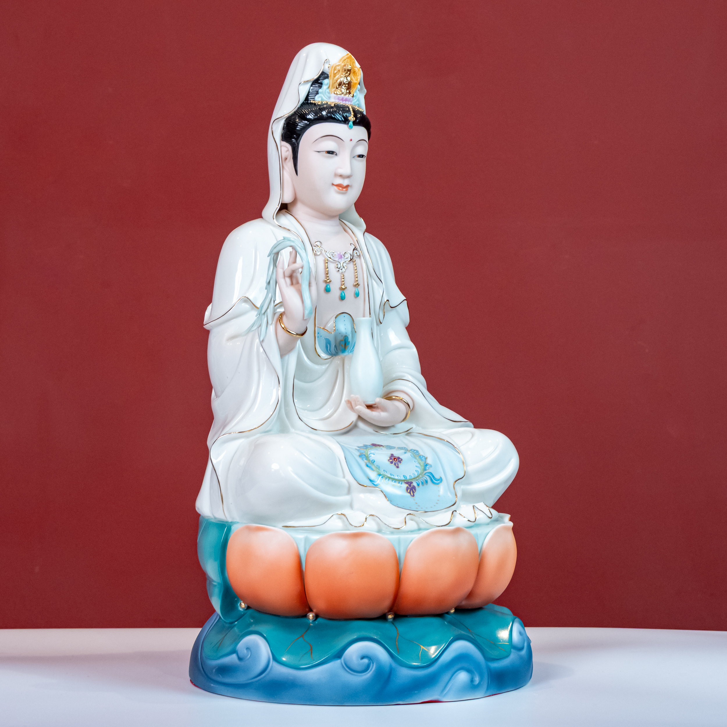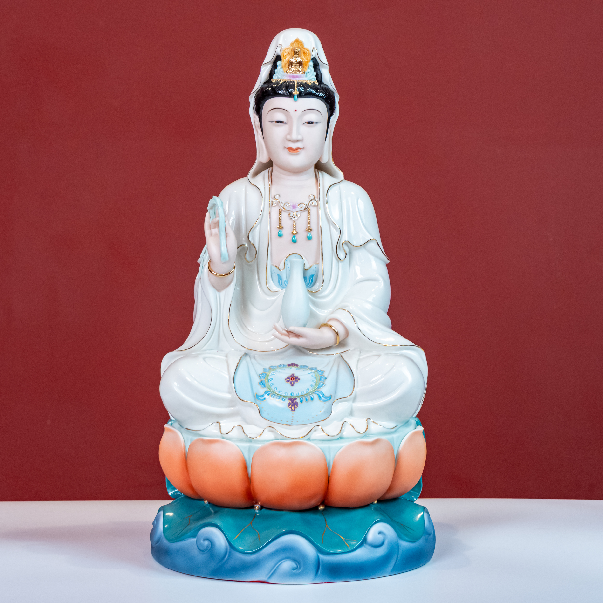 Quán Thế Âm Bồ Tát là một trong những vị Bồ Tát được kính trọng nhất trong Phật Giáo Đại Thừa. Tôn Tượng Quán Thế Âm Bồ Tát là biểu tượng của lòng từ bi vô hạn, sự cứu độ, niềm tin và hy vọng. Tôn Tượng Quán Thế Âm Bồ Tát được làm bằng chất liệu cao cấp, bền đẹp, chạm khắc tinh xảo, tôn lên vẻ hiền từ mà trang nghiêm của Mẹ Quan Âm. Sở hữu Tôn Tượng Quan Âm Bồ Tát trên ban thờ đem đến cho không gian vẻ uy nghiêm, sang trọng, thể hiện lòng thành kính của gia chủ với bậc thánh.