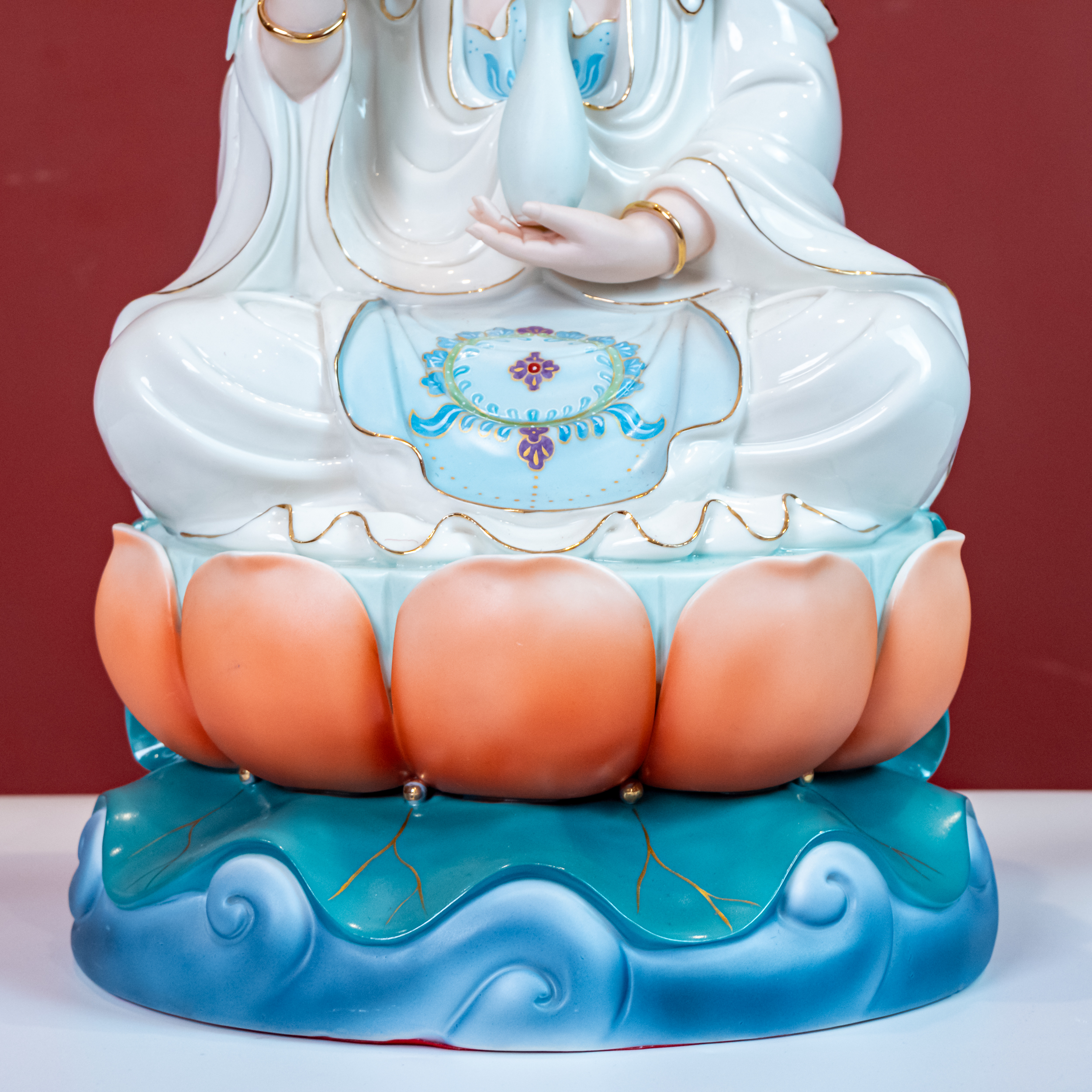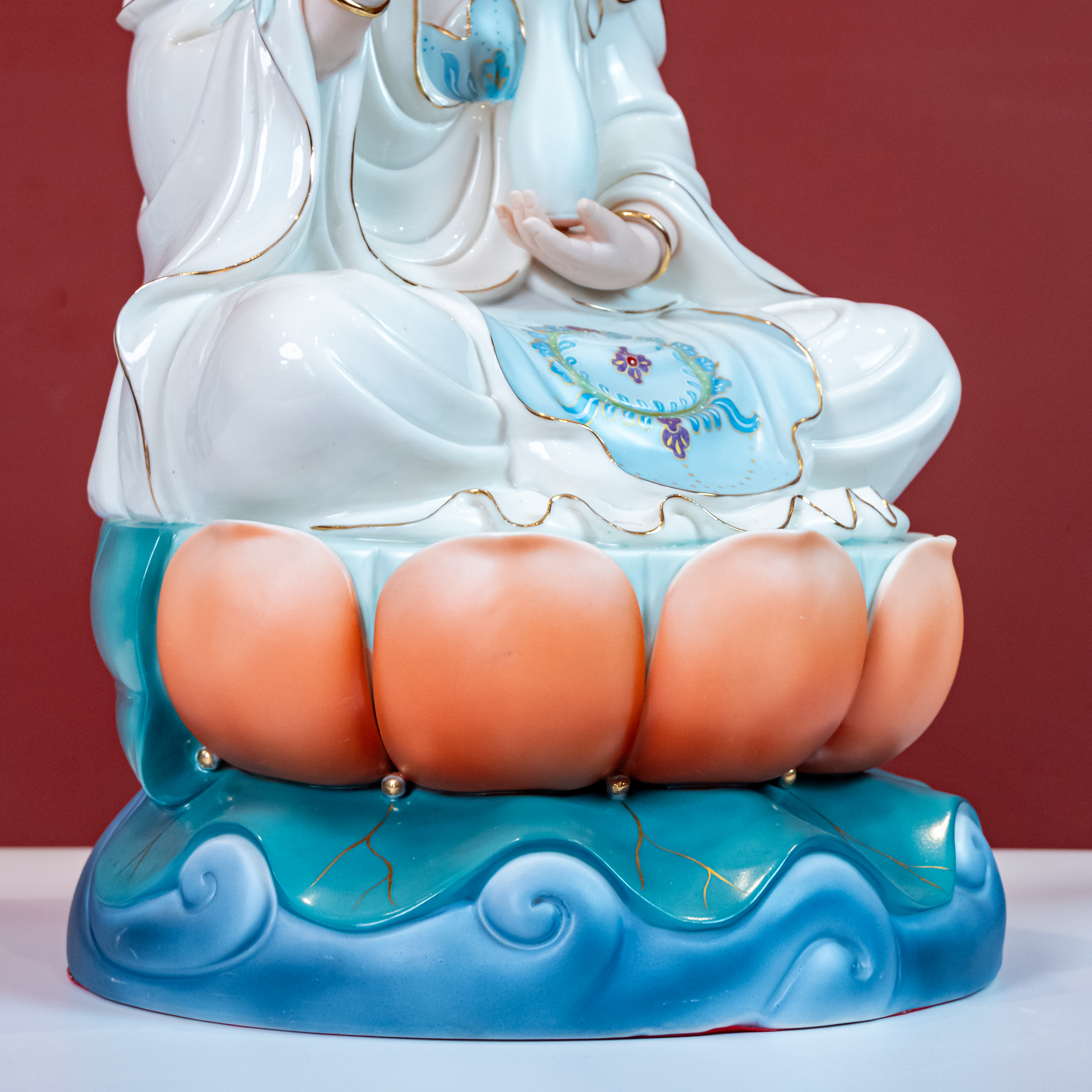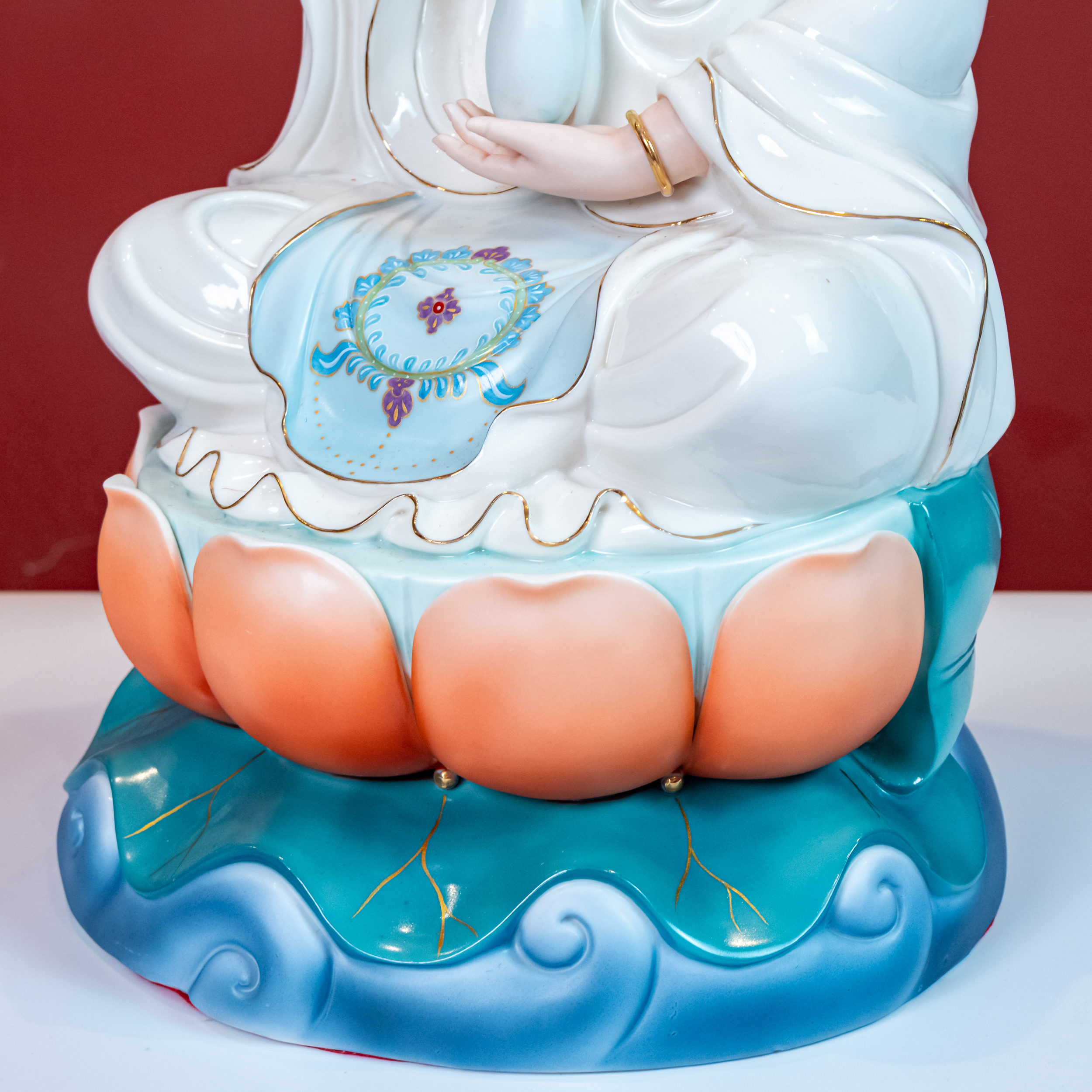 – Tên SP: Tượng Quan Âm Sứ Đức Hóa Tọa Đài Sen Màu Đỏ Xanh