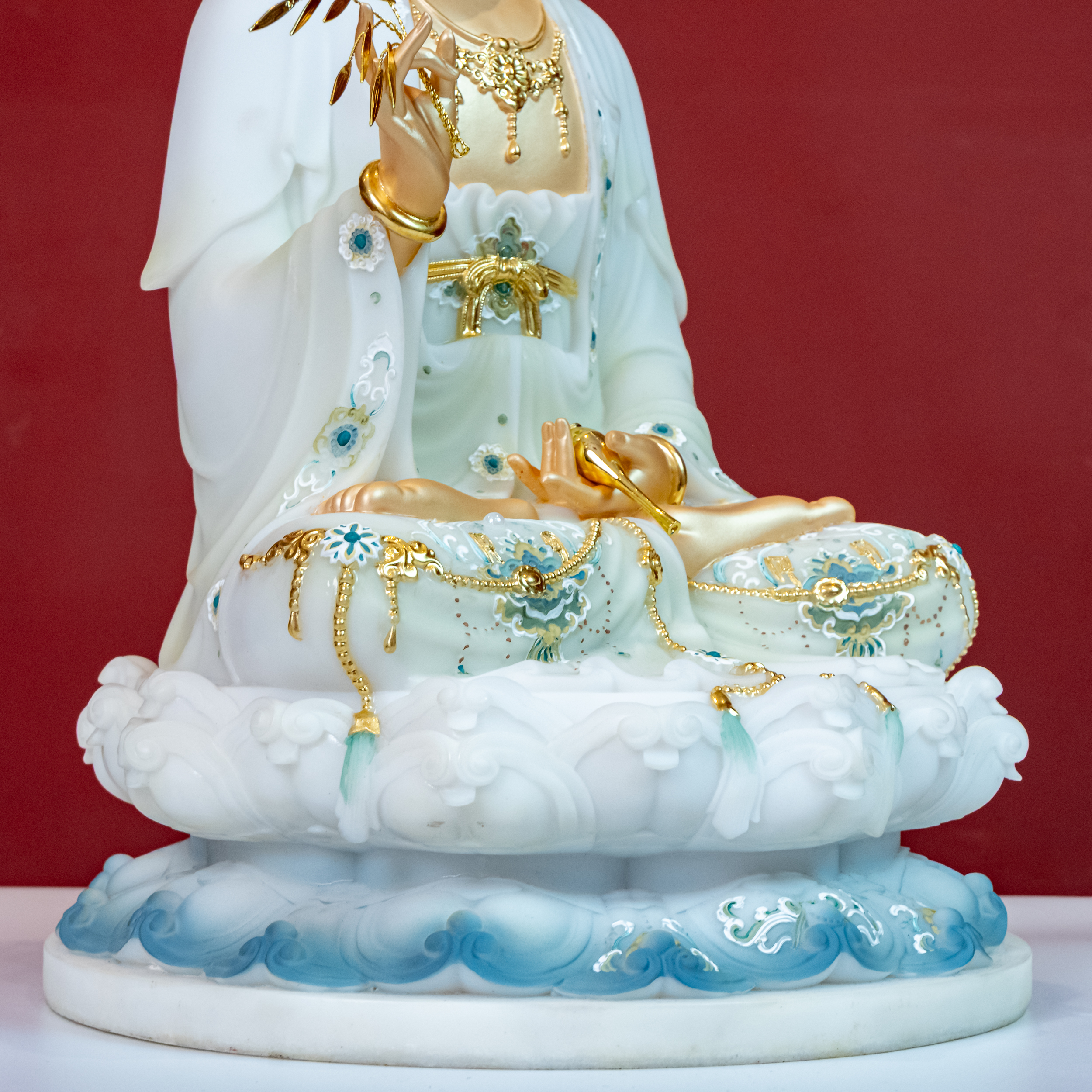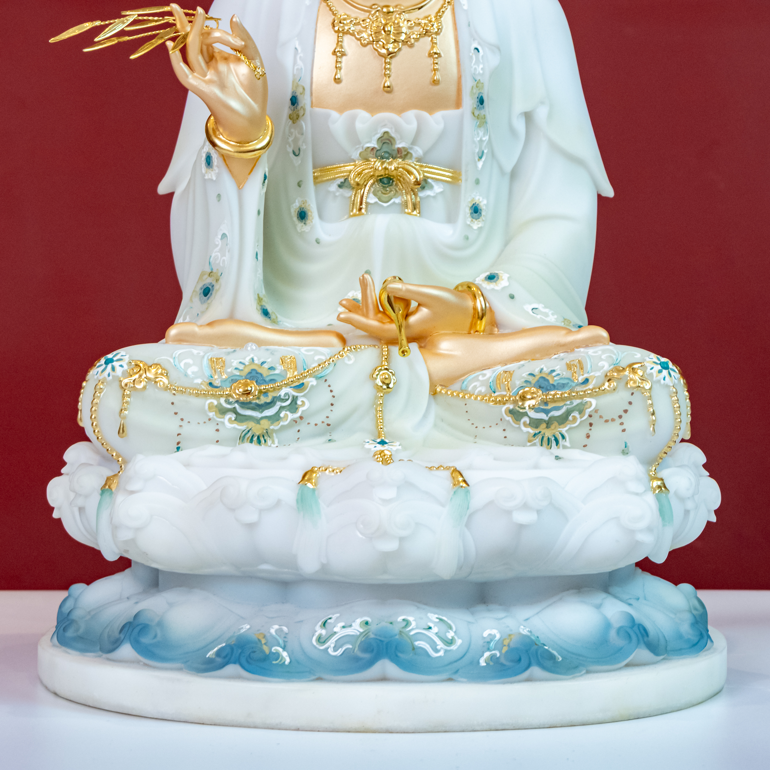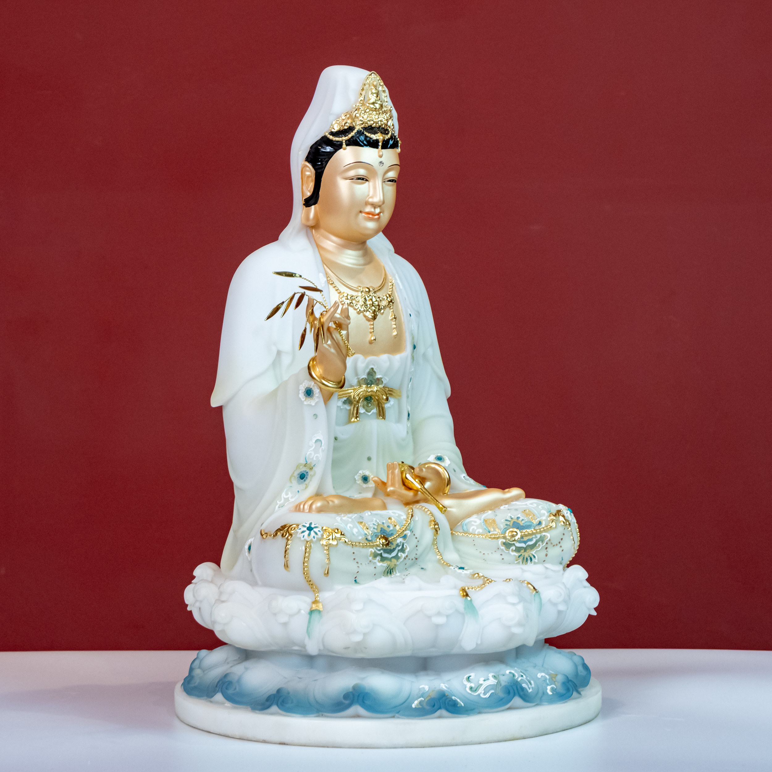 Quán Thế Âm Bồ Tát là một trong những vị Bồ Tát được kính trọng nhất trong Phật Giáo Đại Thừa. Tôn Tượng Quán Thế Âm Bồ Tát là biểu tượng của lòng từ bi vô hạn, sự cứu độ, niềm tin và hy vọng. Tôn Tượng Quán Thế Âm Bồ Tát được làm bằng chất liệu cao cấp, bền đẹp, chạm khắc tinh xảo, tôn lên vẻ hiền từ mà trang nghiêm của Mẹ Quan Âm. Sở hữu Tôn Tượng Quan Âm Bồ Tát trên ban thờ đem đến cho không gian vẻ uy nghiêm, sang trọng, thể hiện lòng thành kính của gia chủ với bậc thánh.