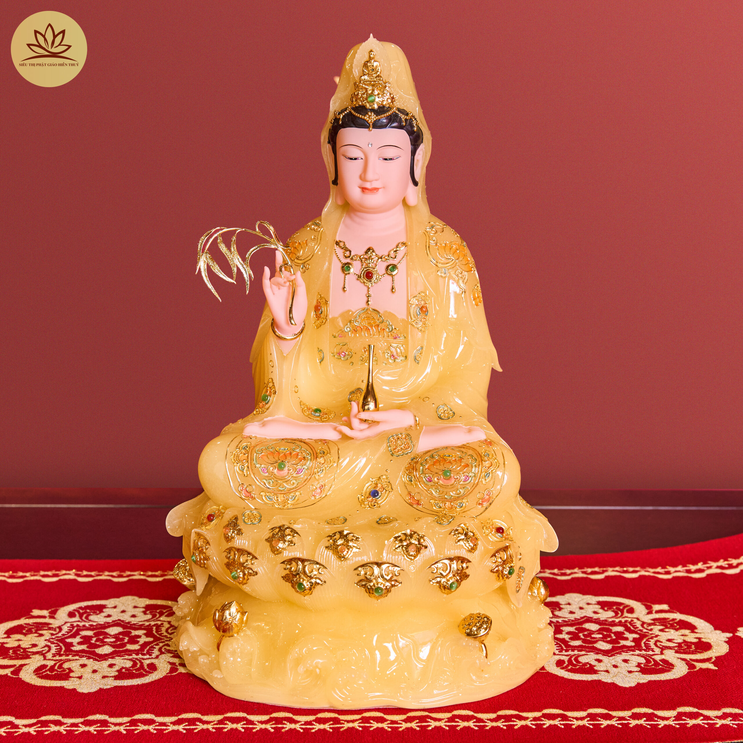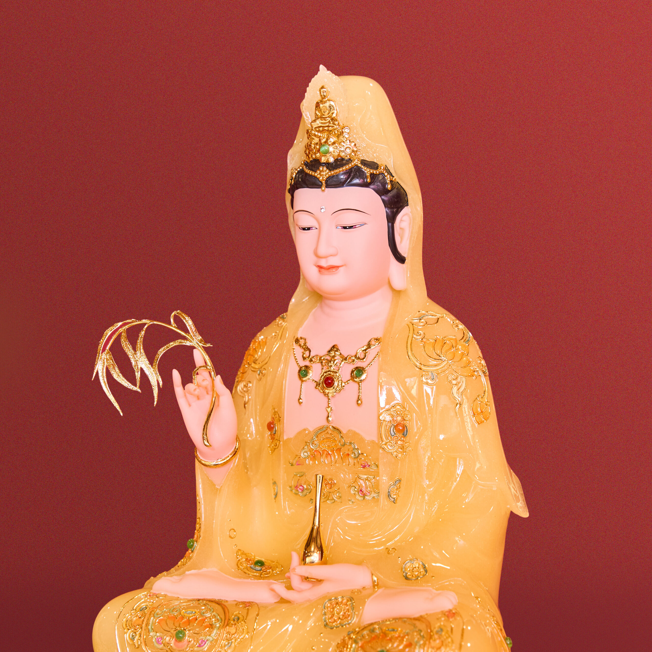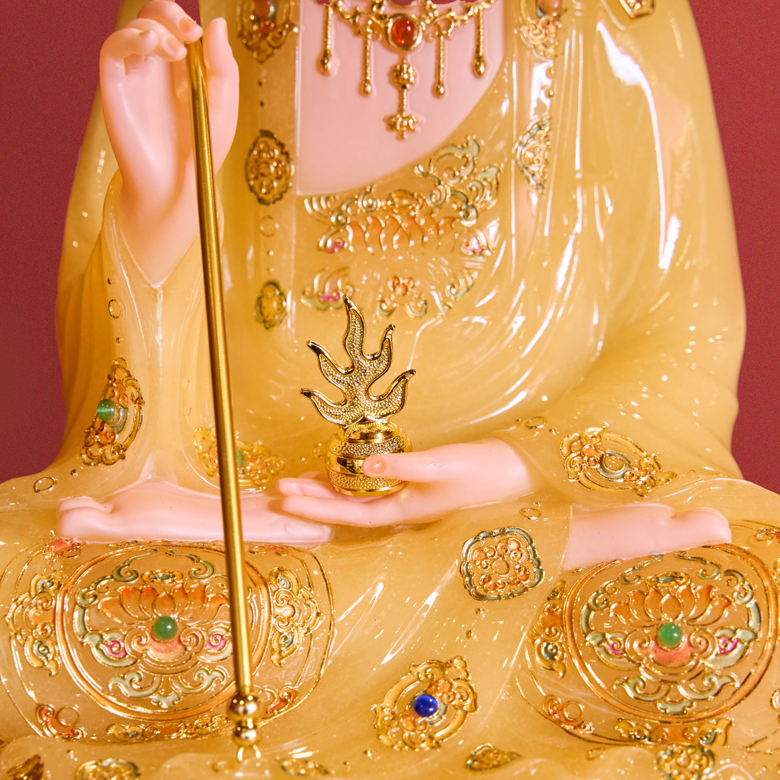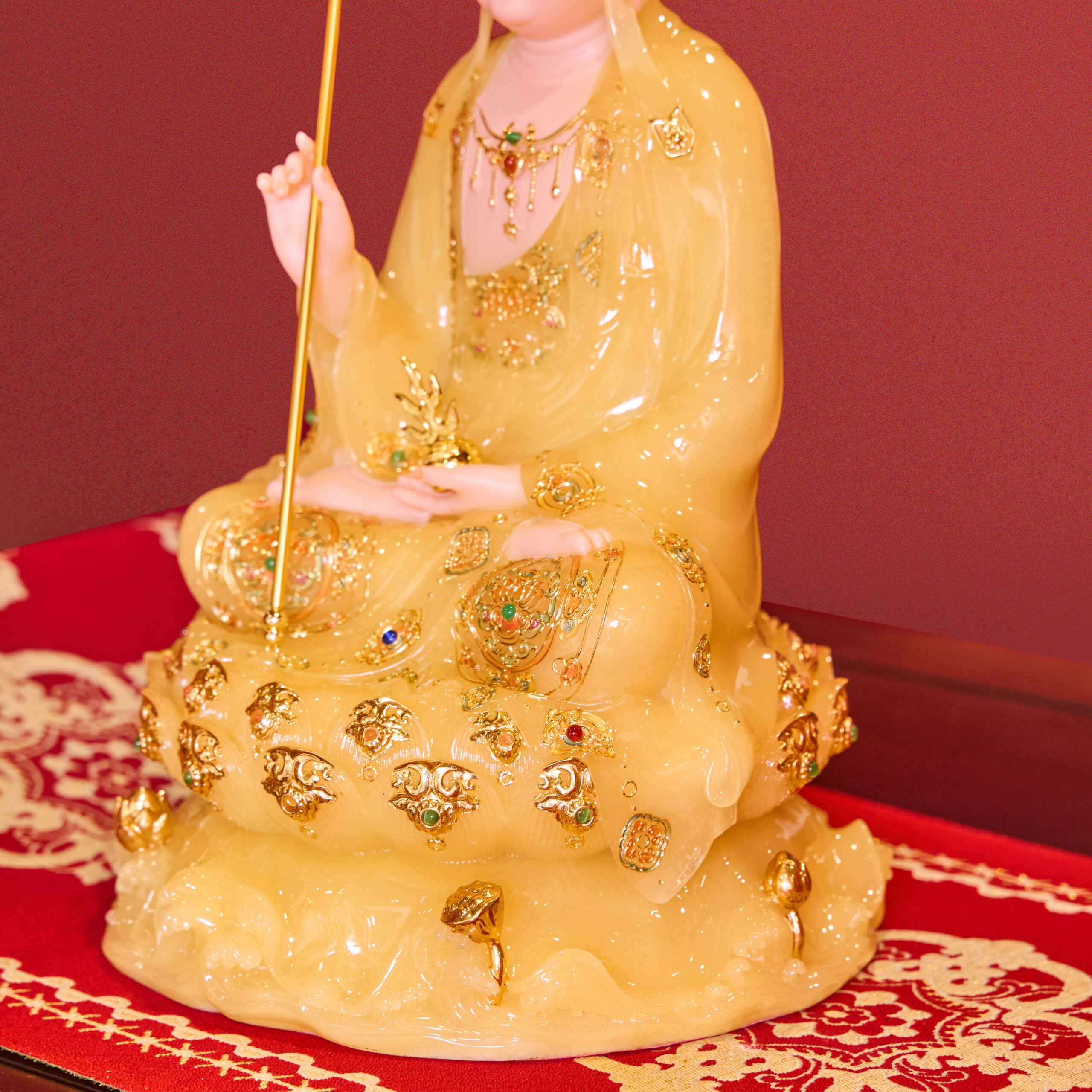 – Tên SP: Tượng Ta Bà Tam Thánh Bột Đá Toạ Đài Sen Thạch Anh Vàng
