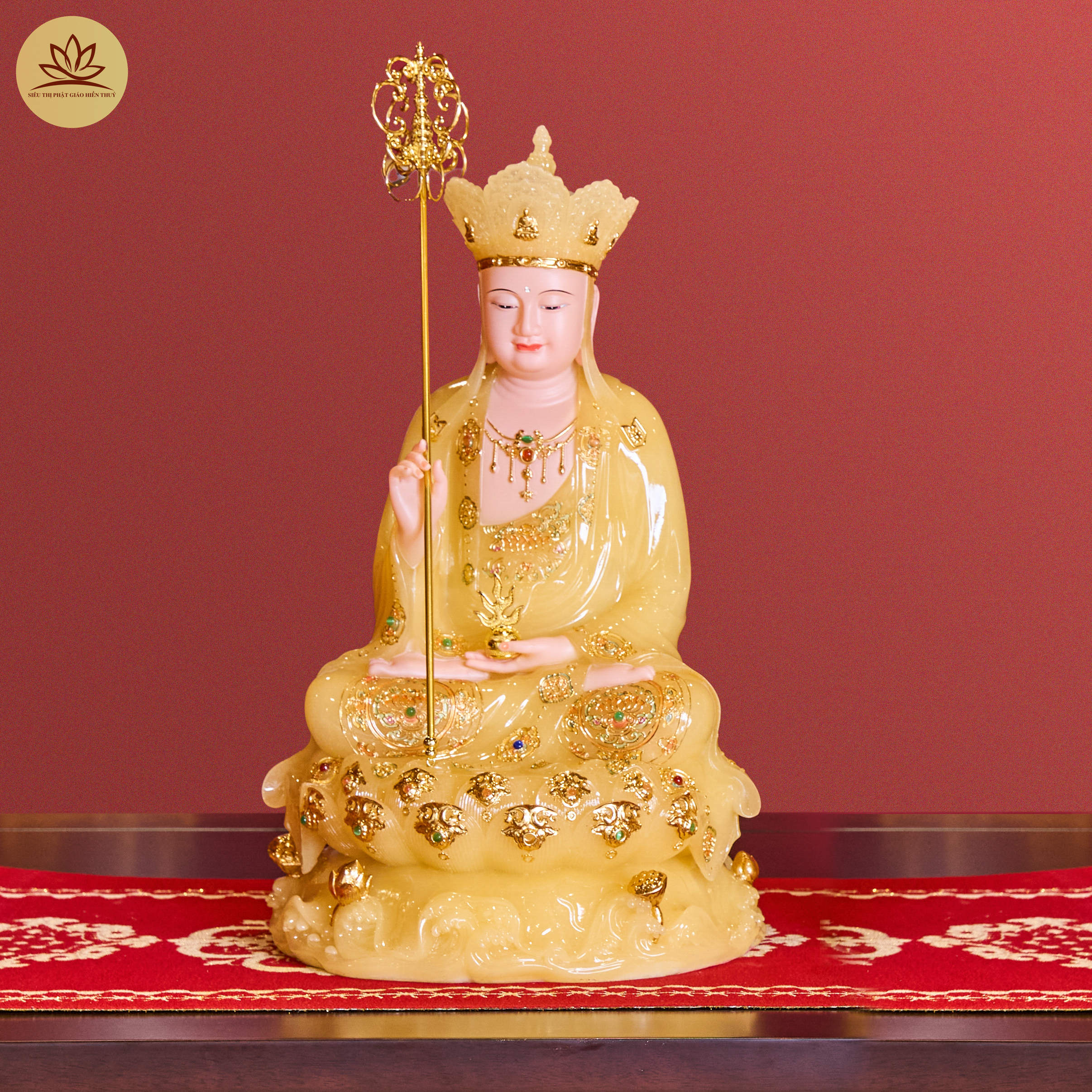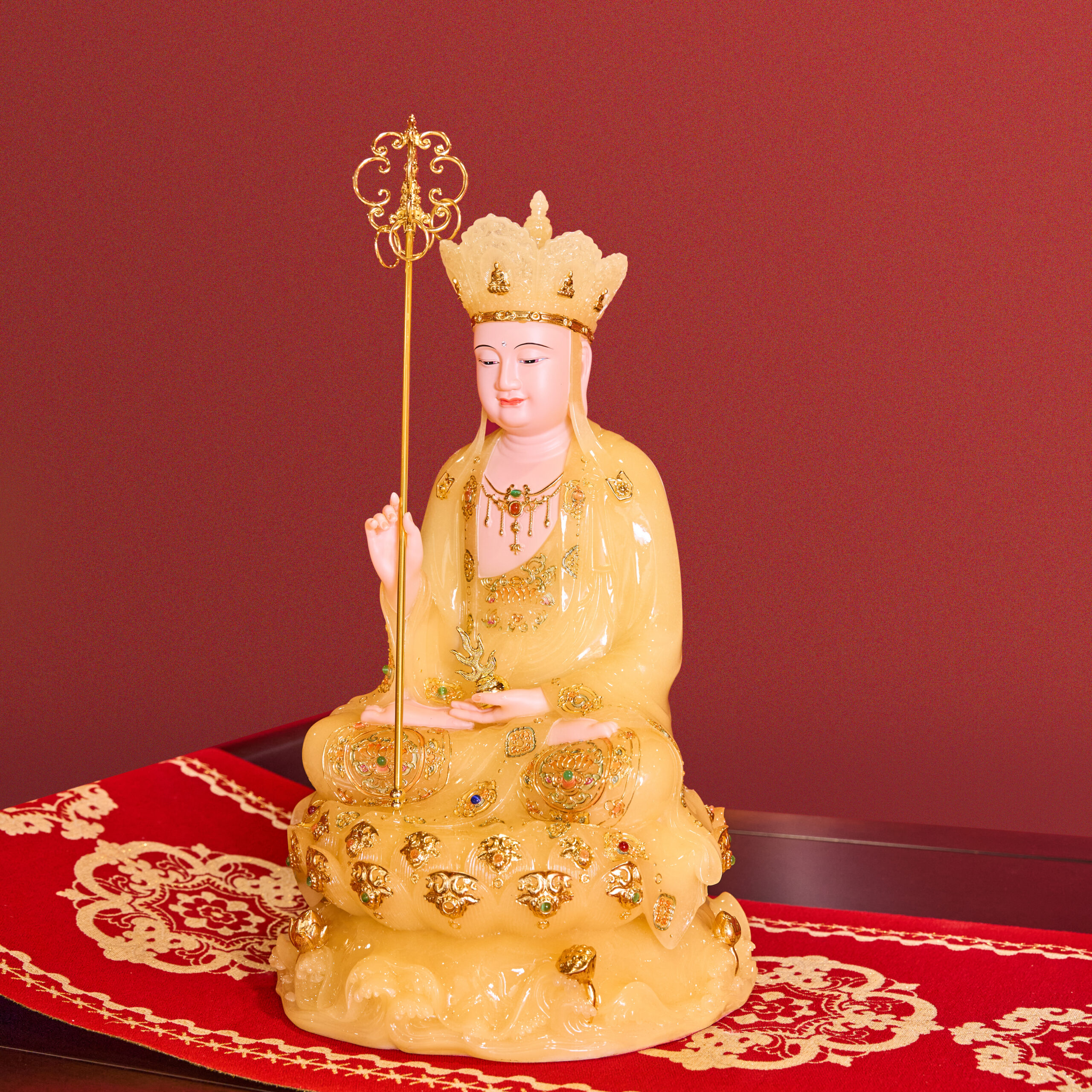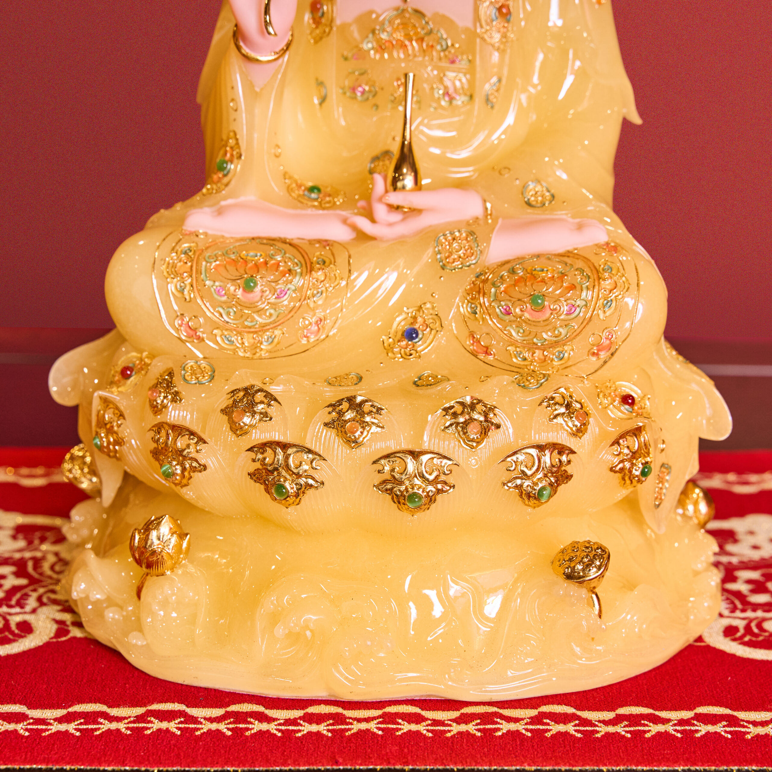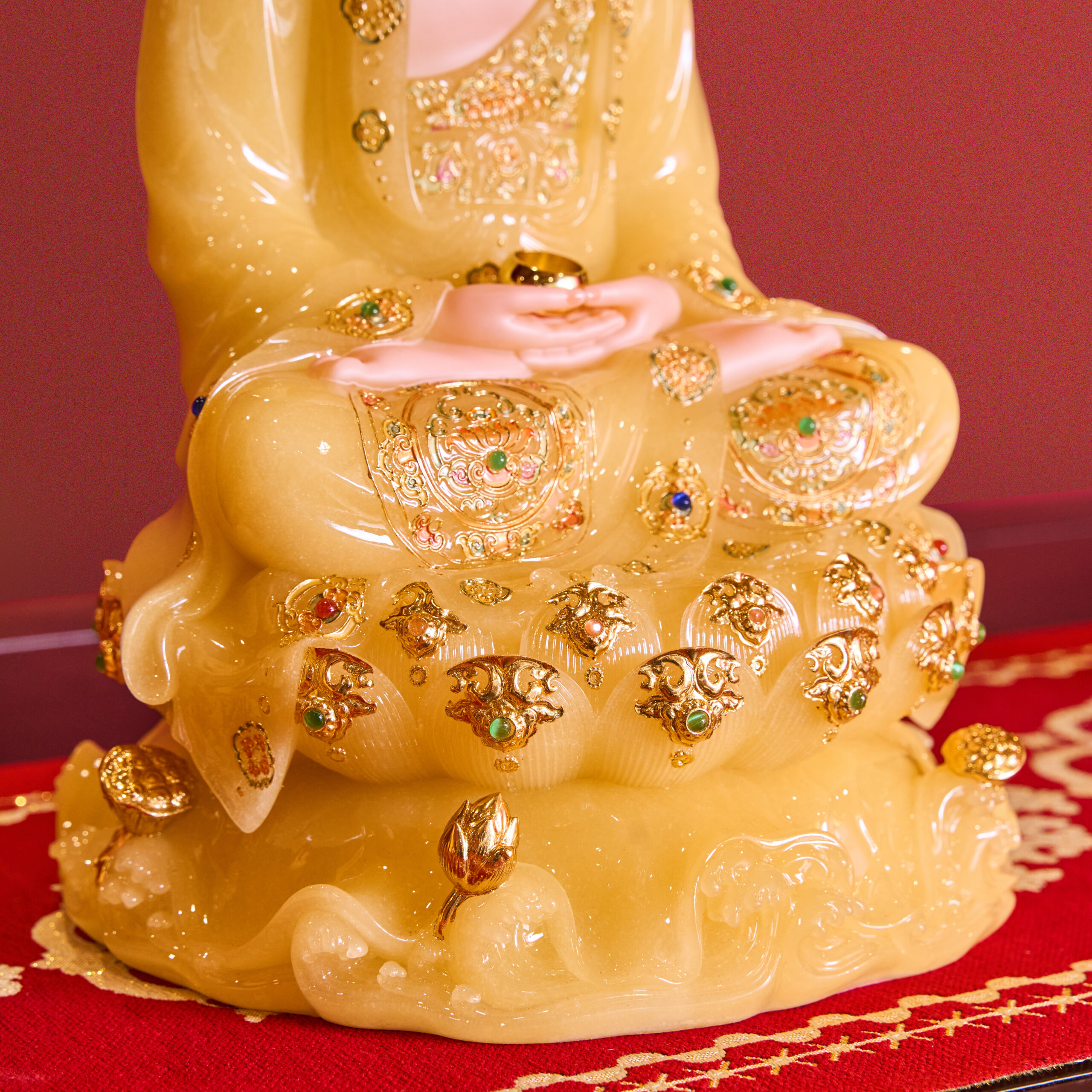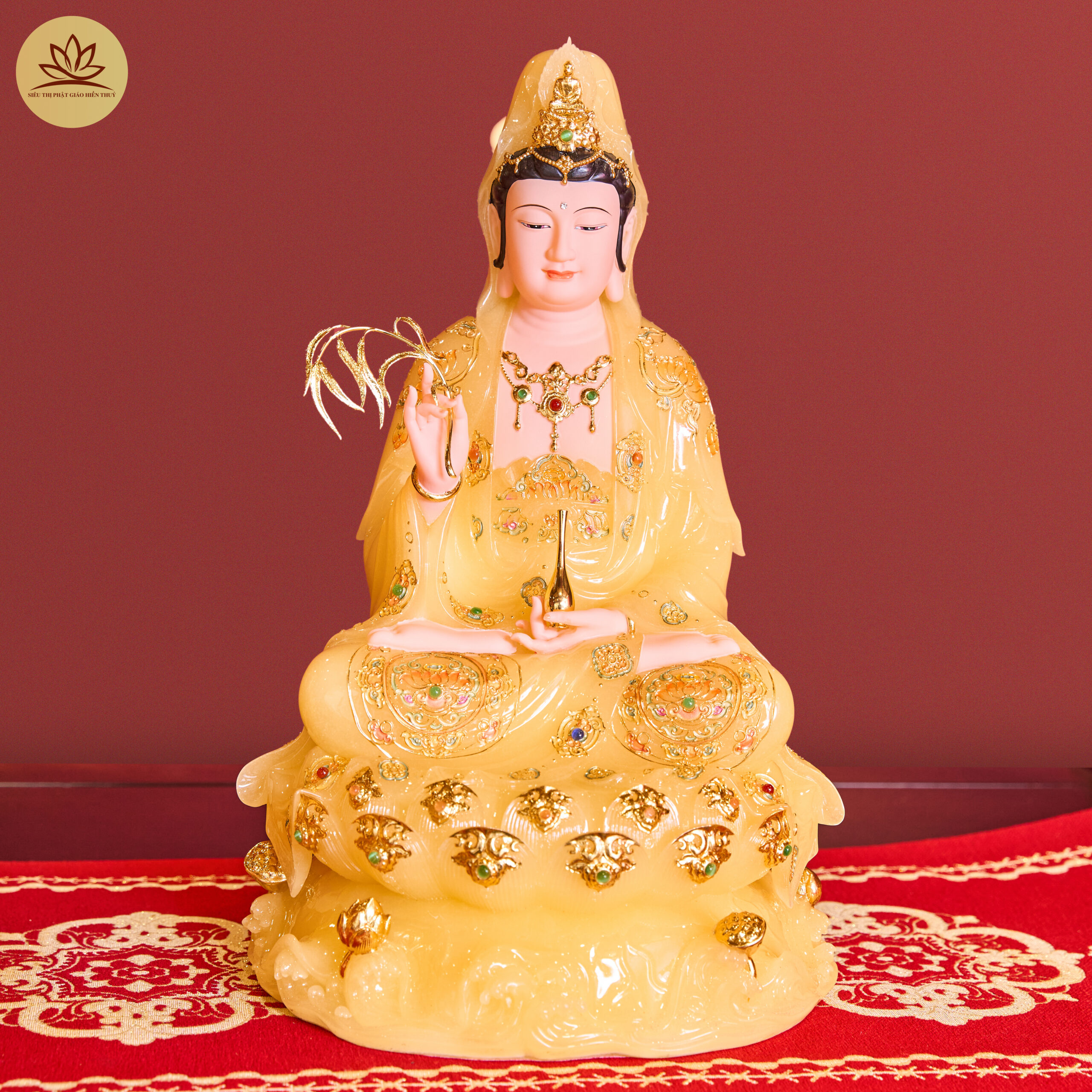 – Tên SP: Tượng Ta Bà Tam Thánh Bột Đá Toạ Đài Sen Thạch Anh Vàng