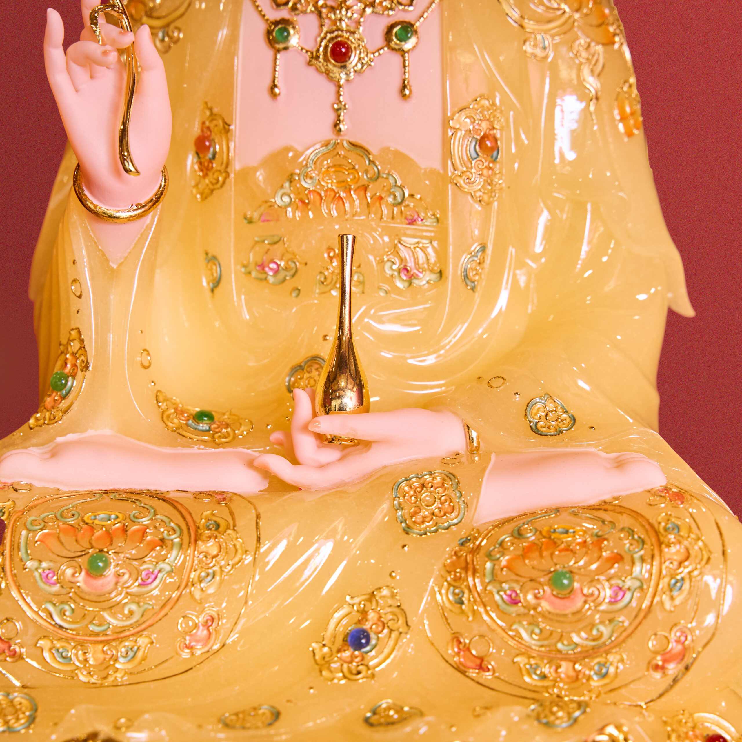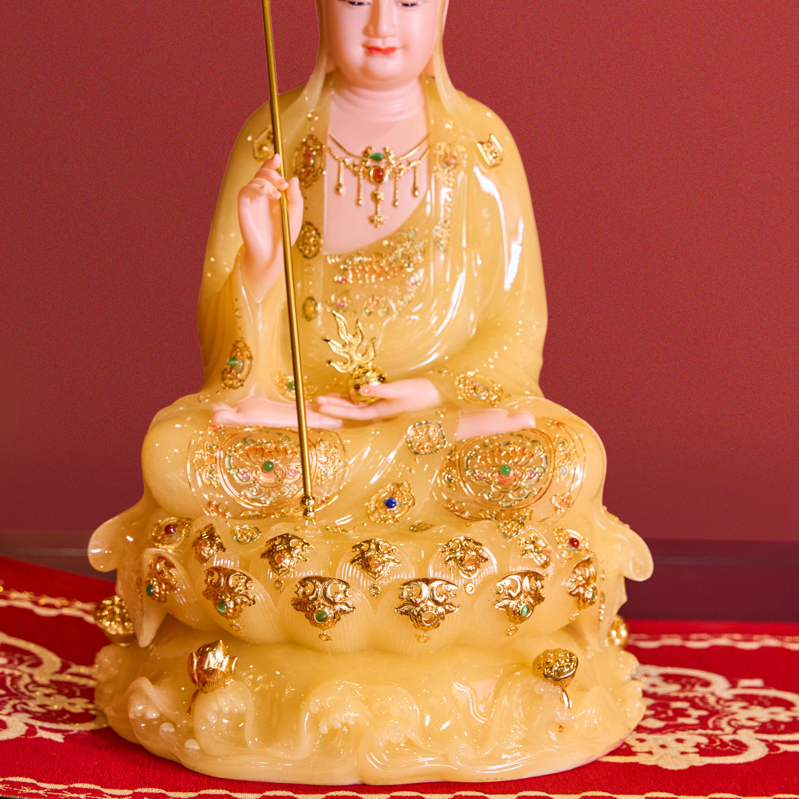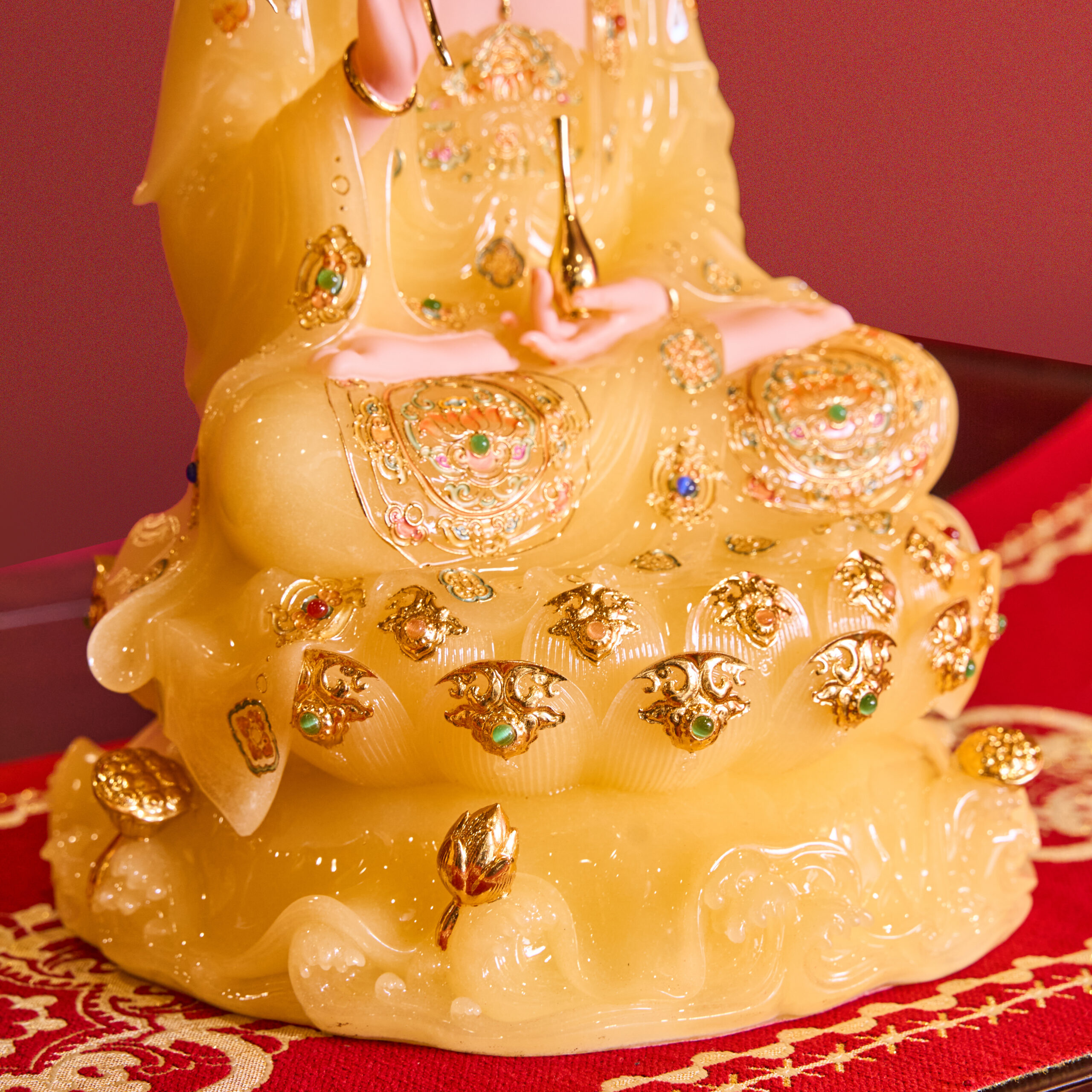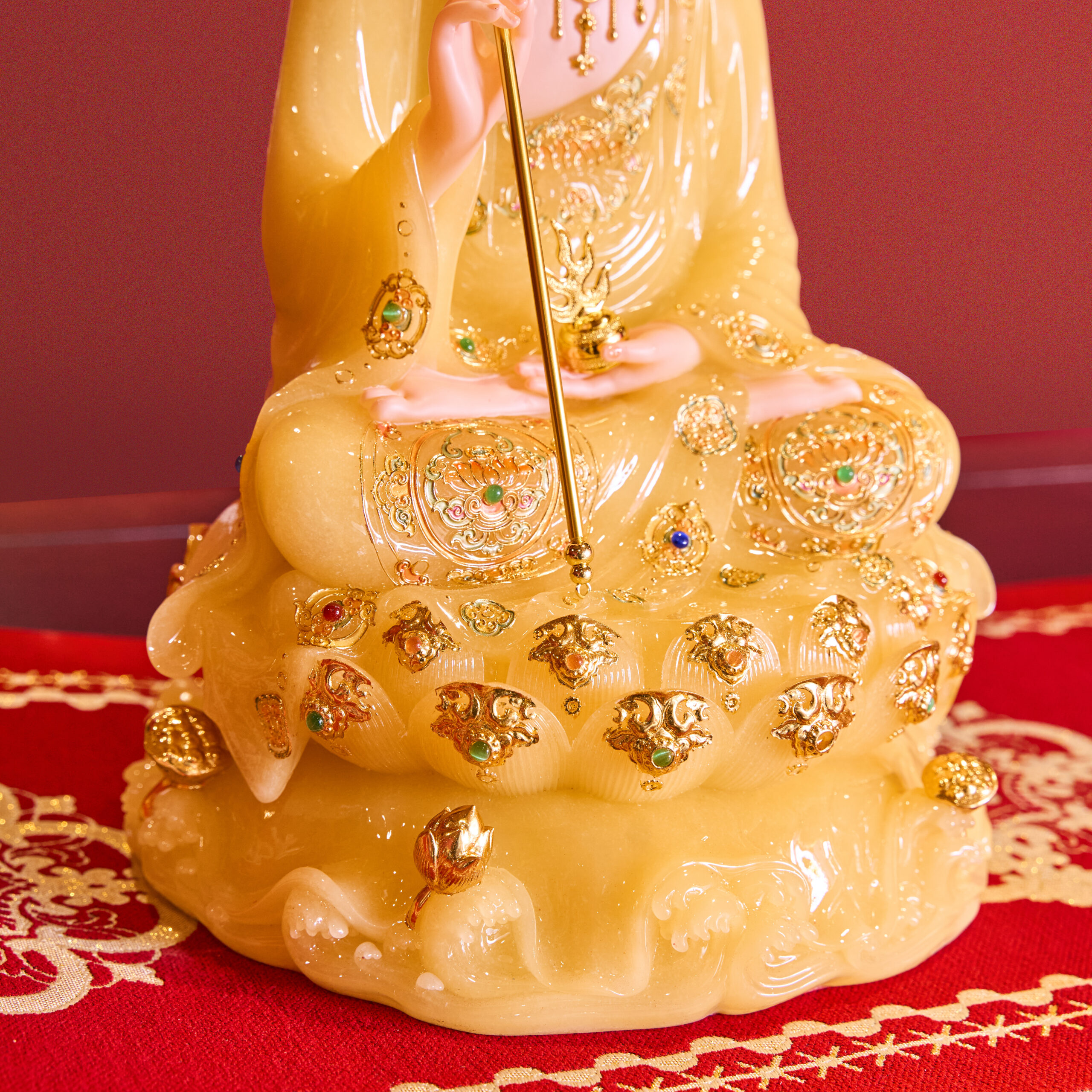 – Tên SP: Tượng Ta Bà Tam Thánh Bột Đá Toạ Đài Sen Thạch Anh Vàng
