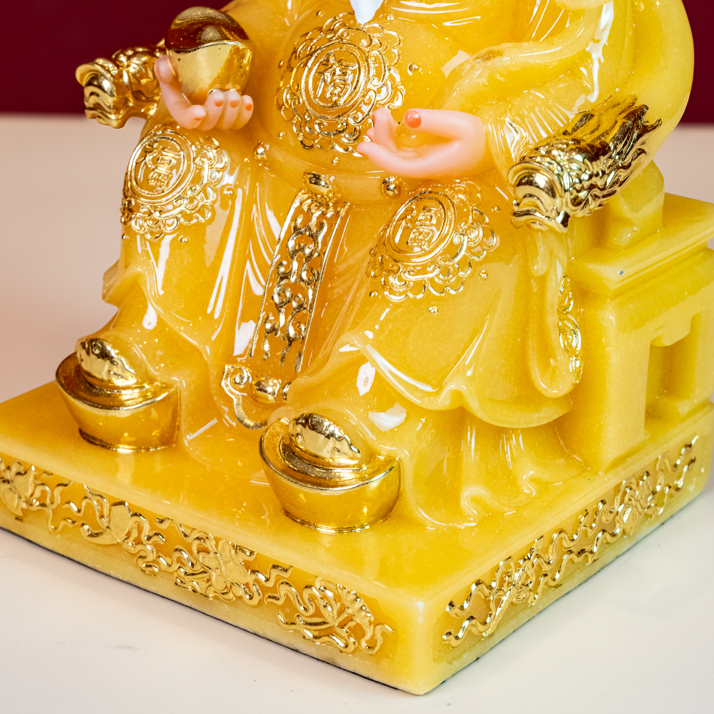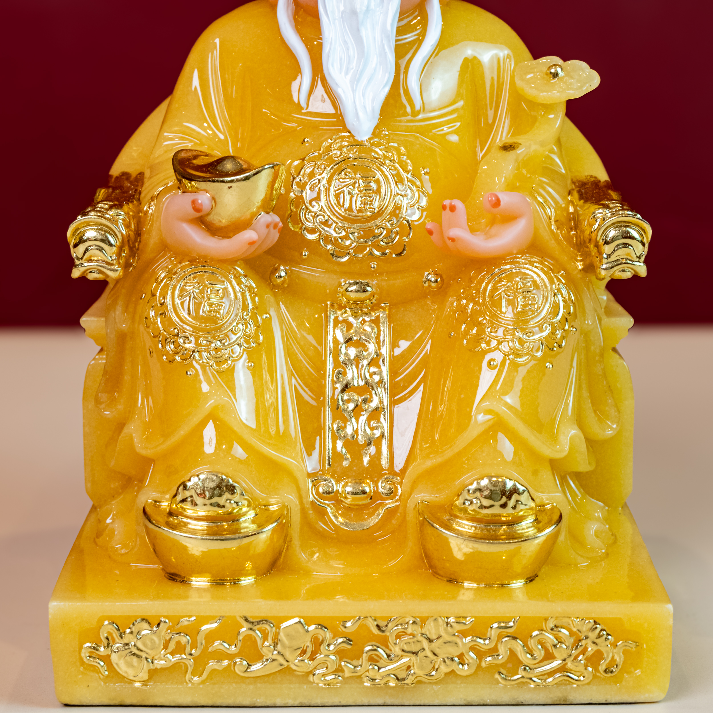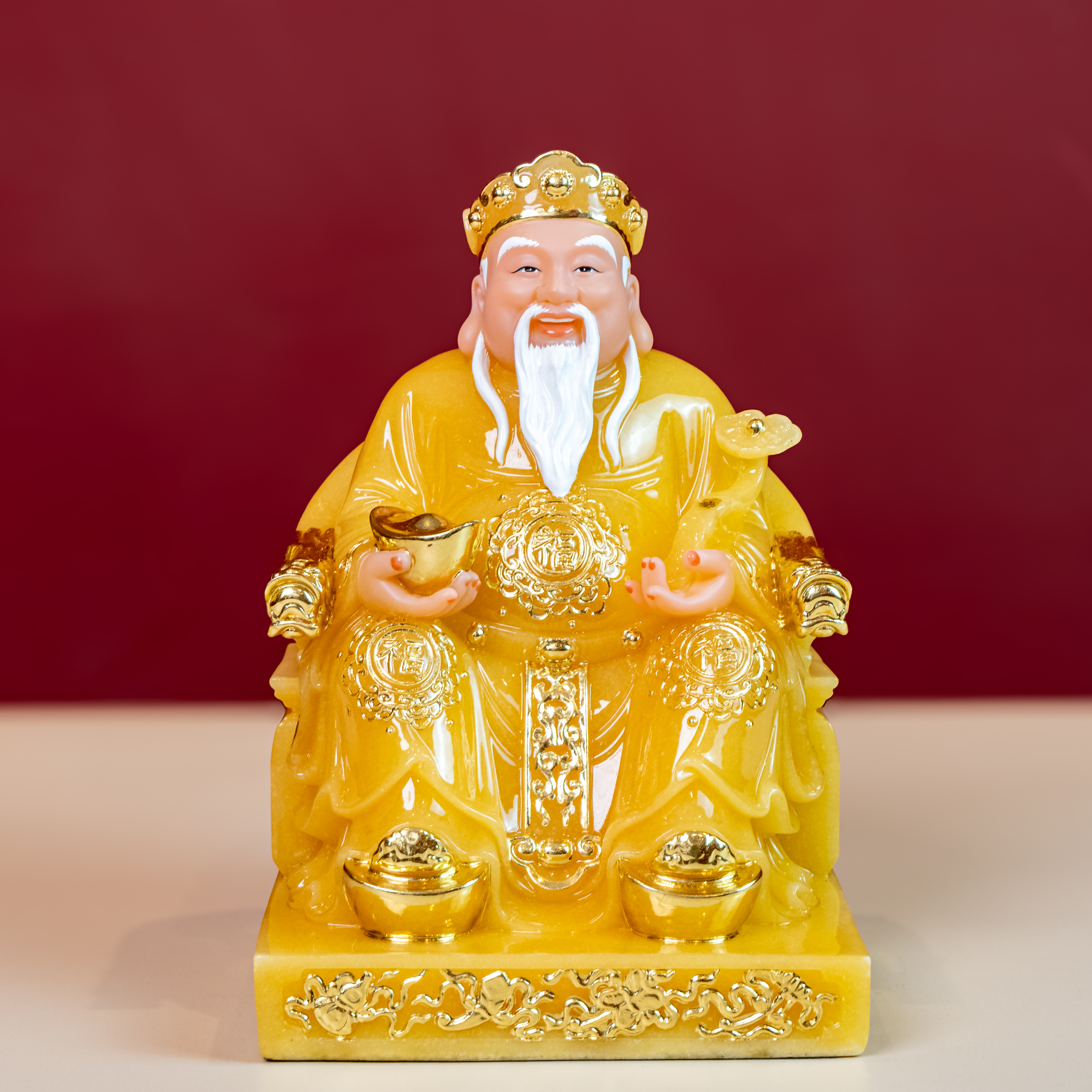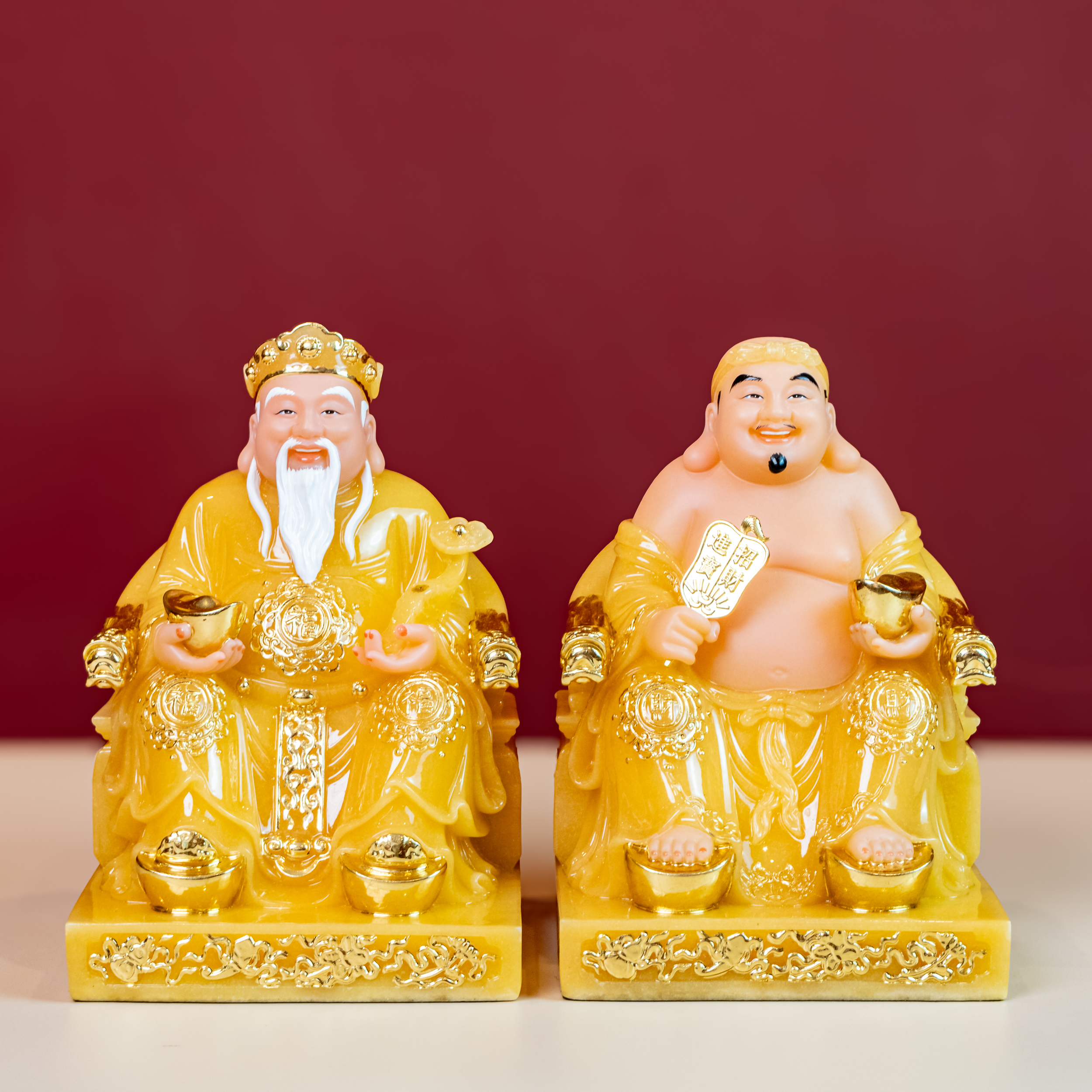 Tượng Thần Tài Thổ Địa mang ý nghĩa bảo trợ về sự thịnh vượng, tài lộc và may mắn trong kinh doanh. Tượng Thần Tài Thổ Địa làm bằng các chất liệu như đá thạch anh, sứ Đức Hóa, đá Đài Loan, composite,… Mỗi bức tượng được chạm khắc tỉ mỉ, với các chi tiết sắc nét, khắc họa Thần Tài và Ông Địa với vẻ mặt phúc hậu, tay cầm thỏi vàng hoặc đĩnh bạc biểu trưng của sự giàu có.