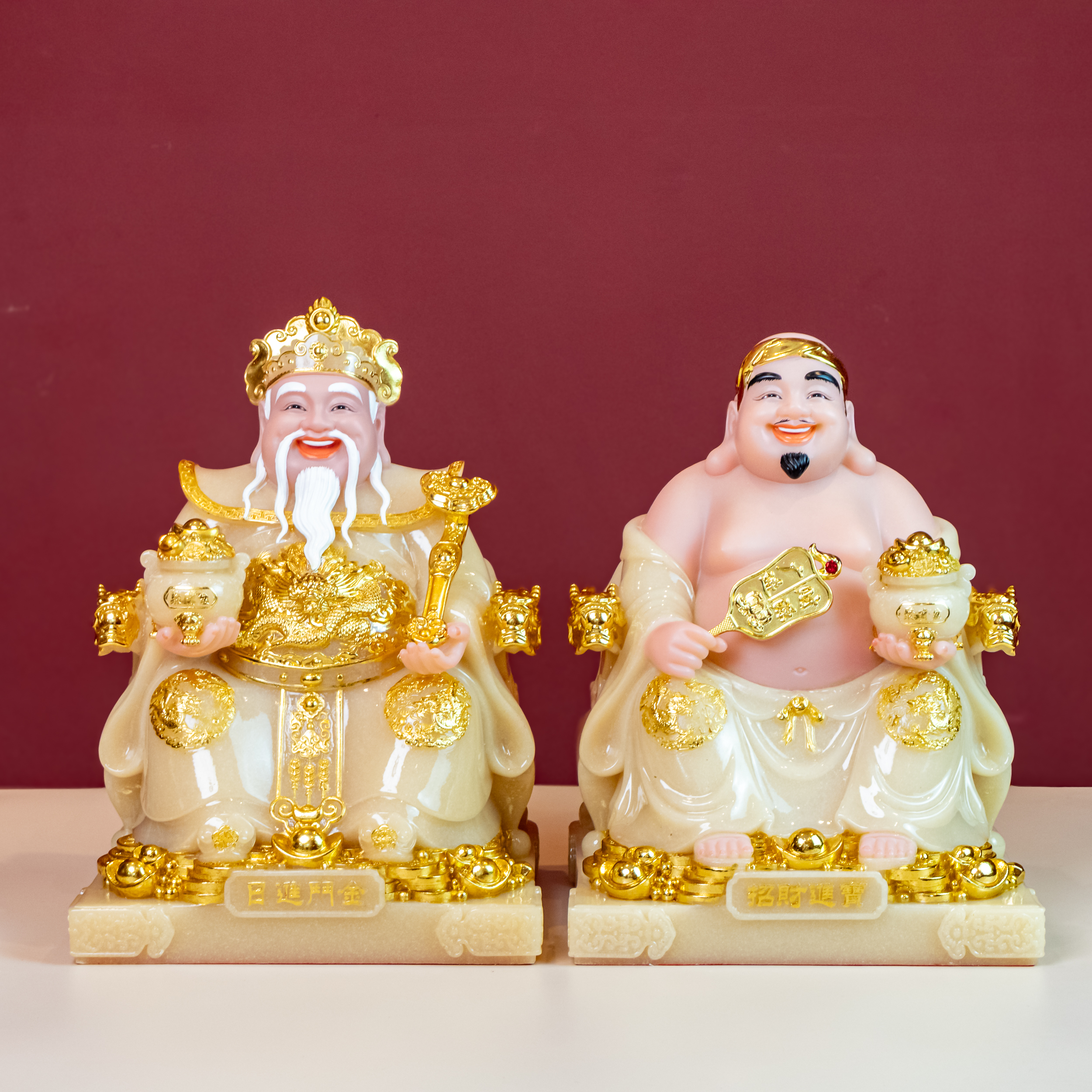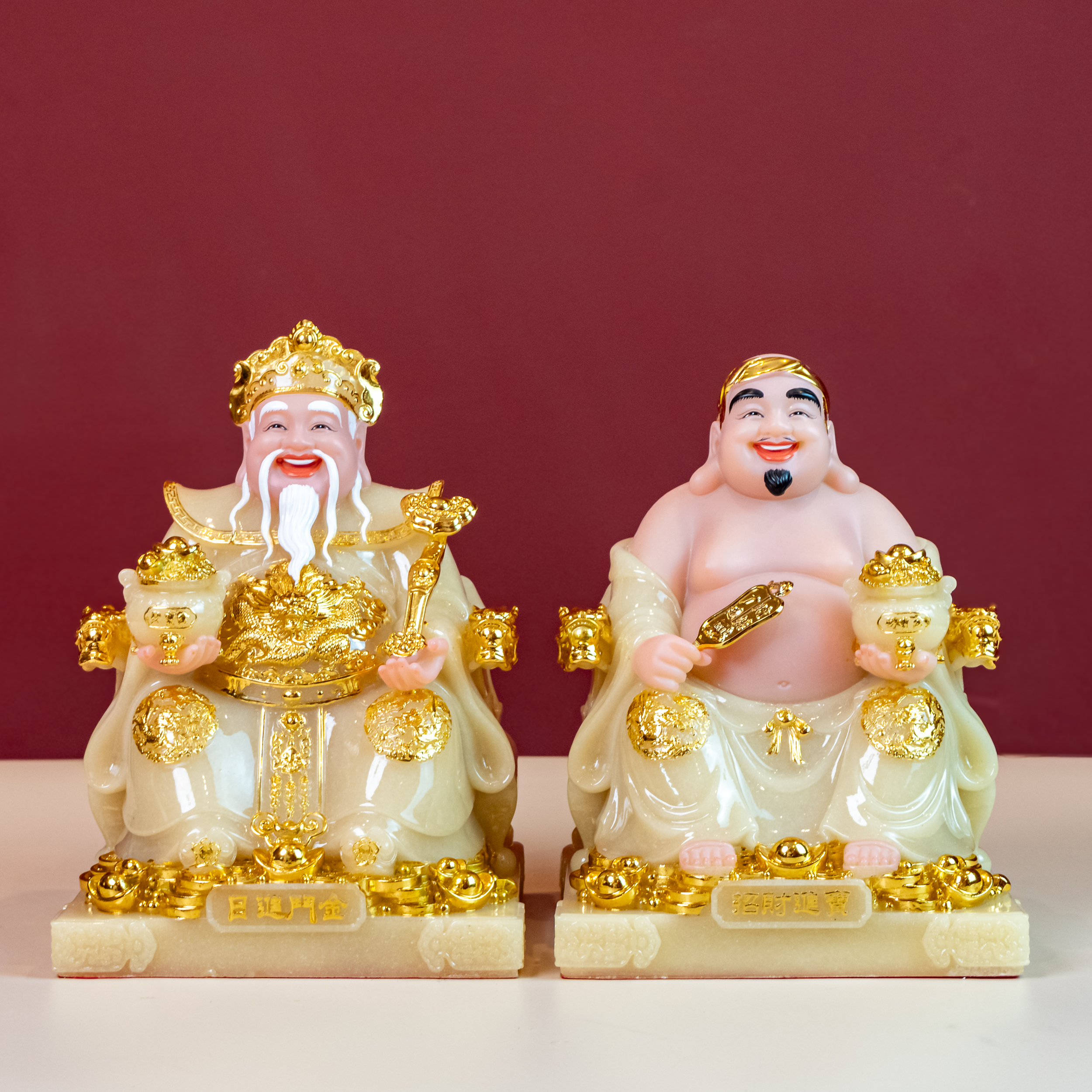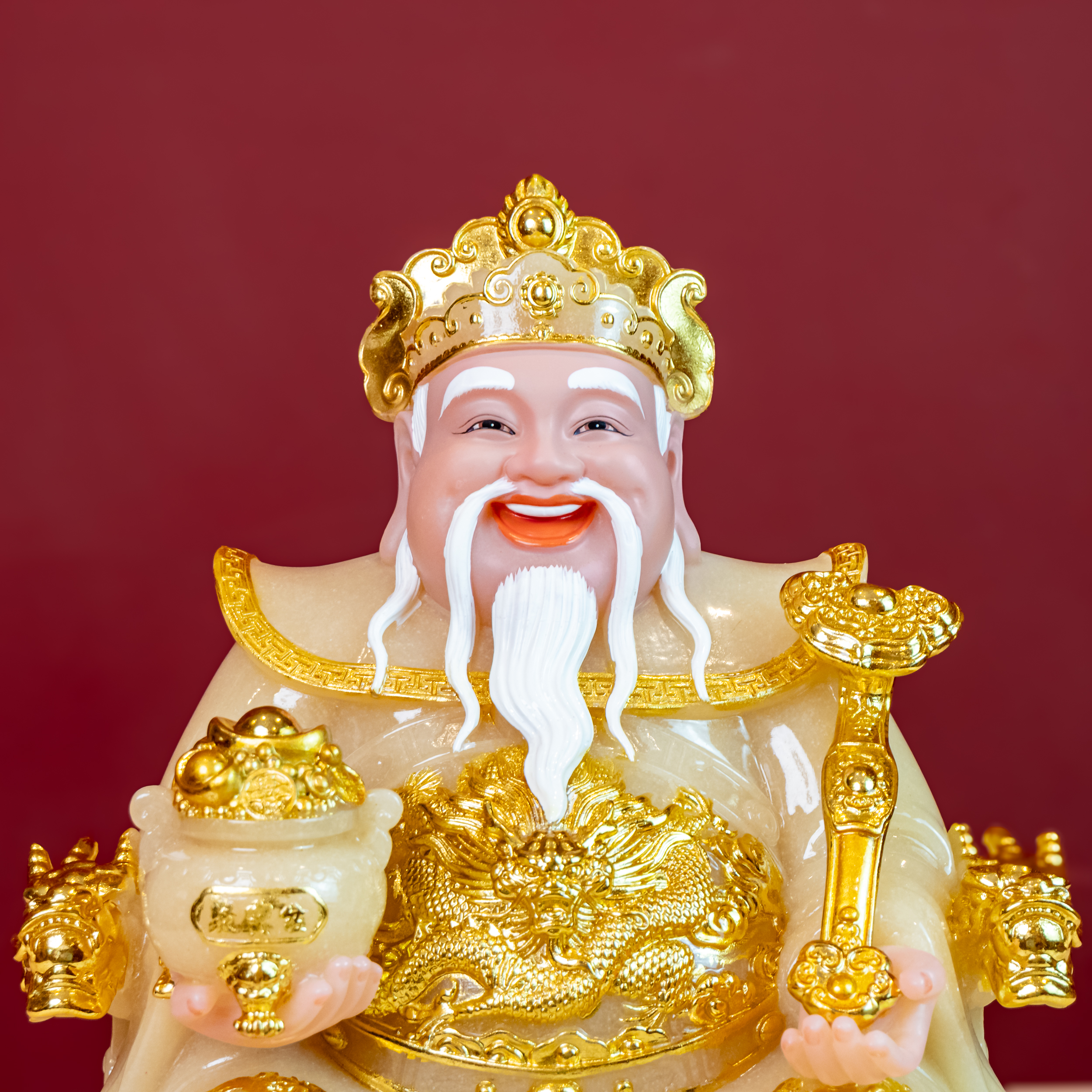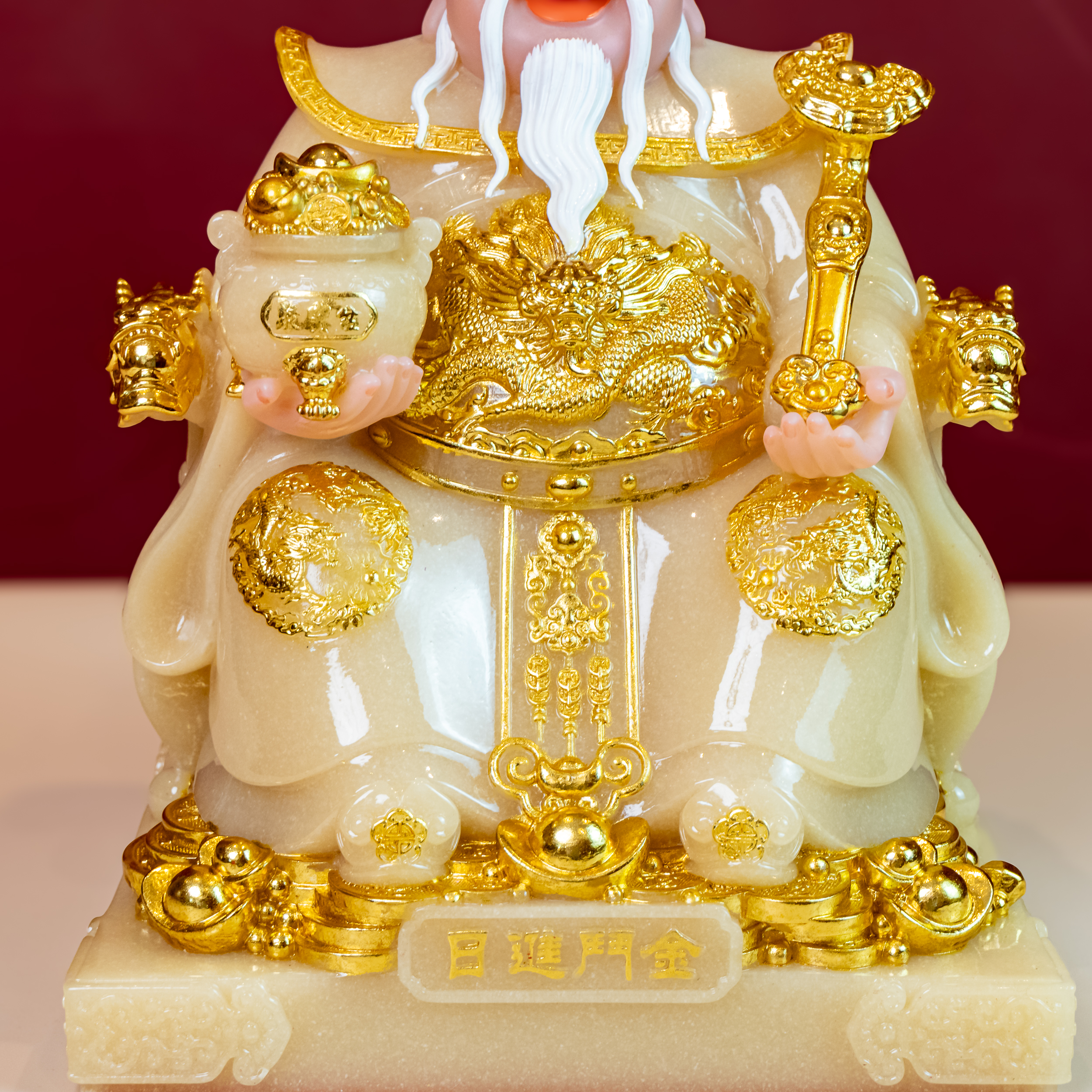 Tượng Thần Tài Thổ Địa mang ý nghĩa bảo trợ về sự thịnh vượng, tài lộc và may mắn trong kinh doanh. Tượng Thần Tài Thổ Địa làm bằng các chất liệu như đá thạch anh, sứ Đức Hóa, đá Đài Loan, composite,… Mỗi bức tượng được chạm khắc tỉ mỉ, với các chi tiết sắc nét, khắc họa Thần Tài và Ông Địa với vẻ mặt phúc hậu, tay cầm thỏi vàng hoặc đĩnh bạc biểu trưng của sự giàu có.