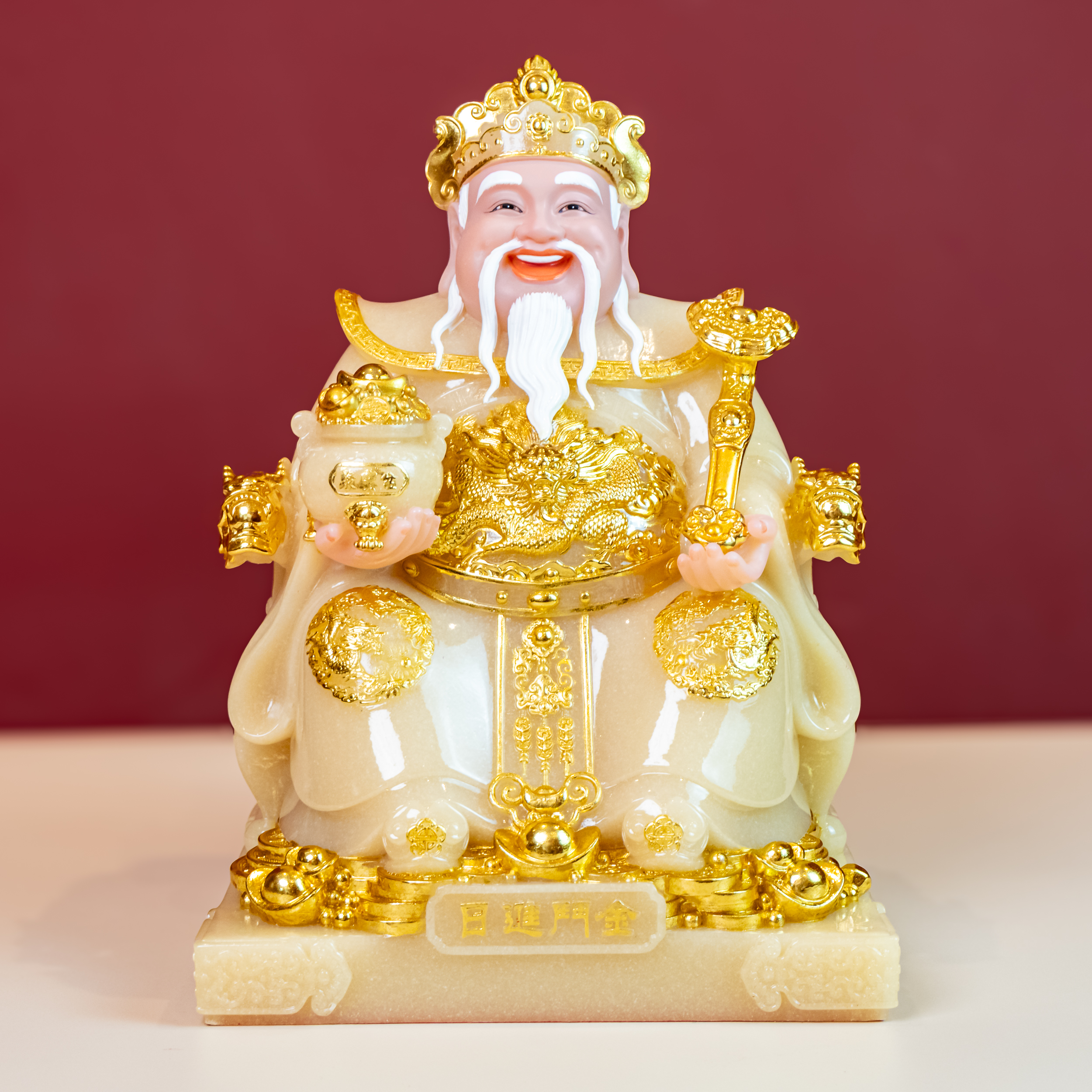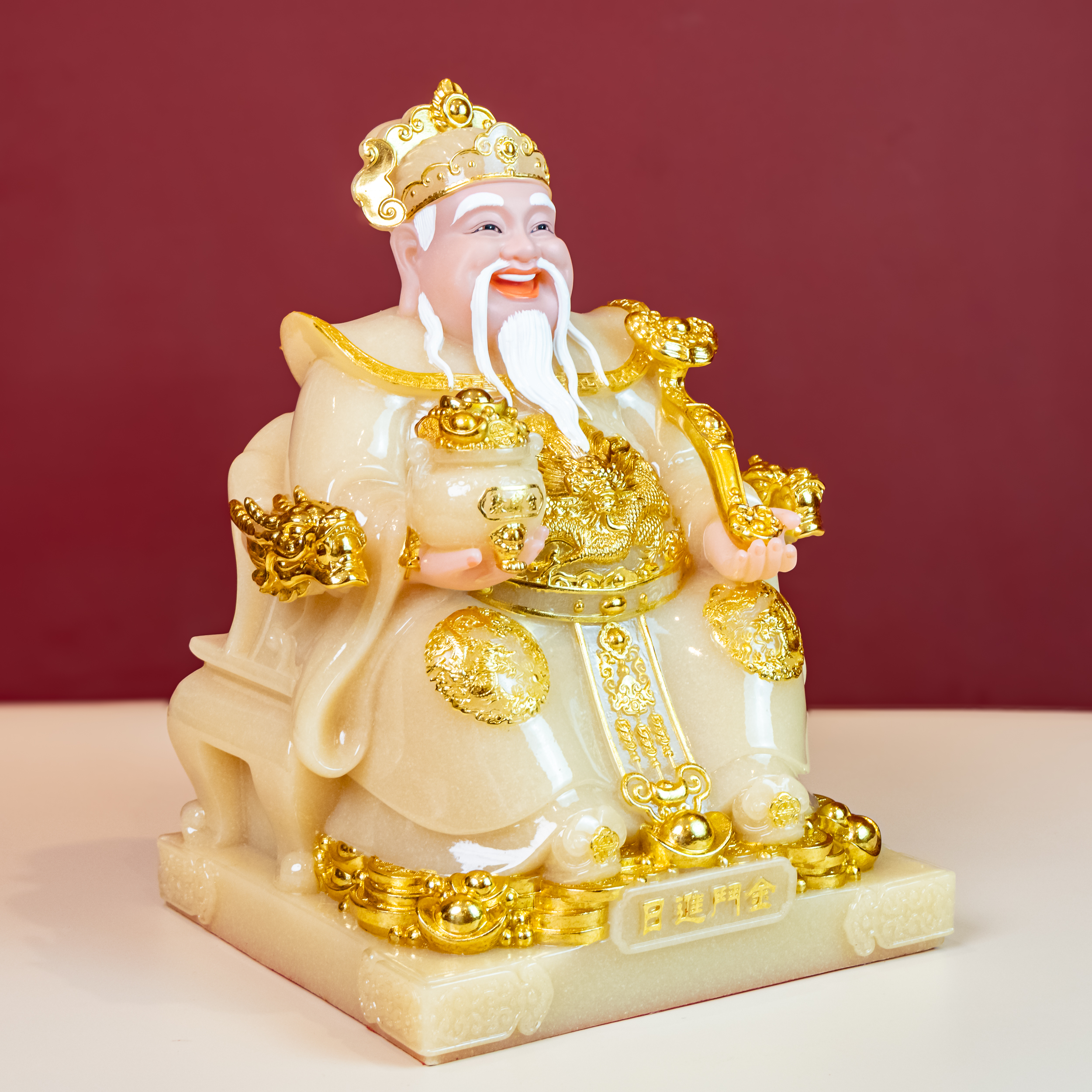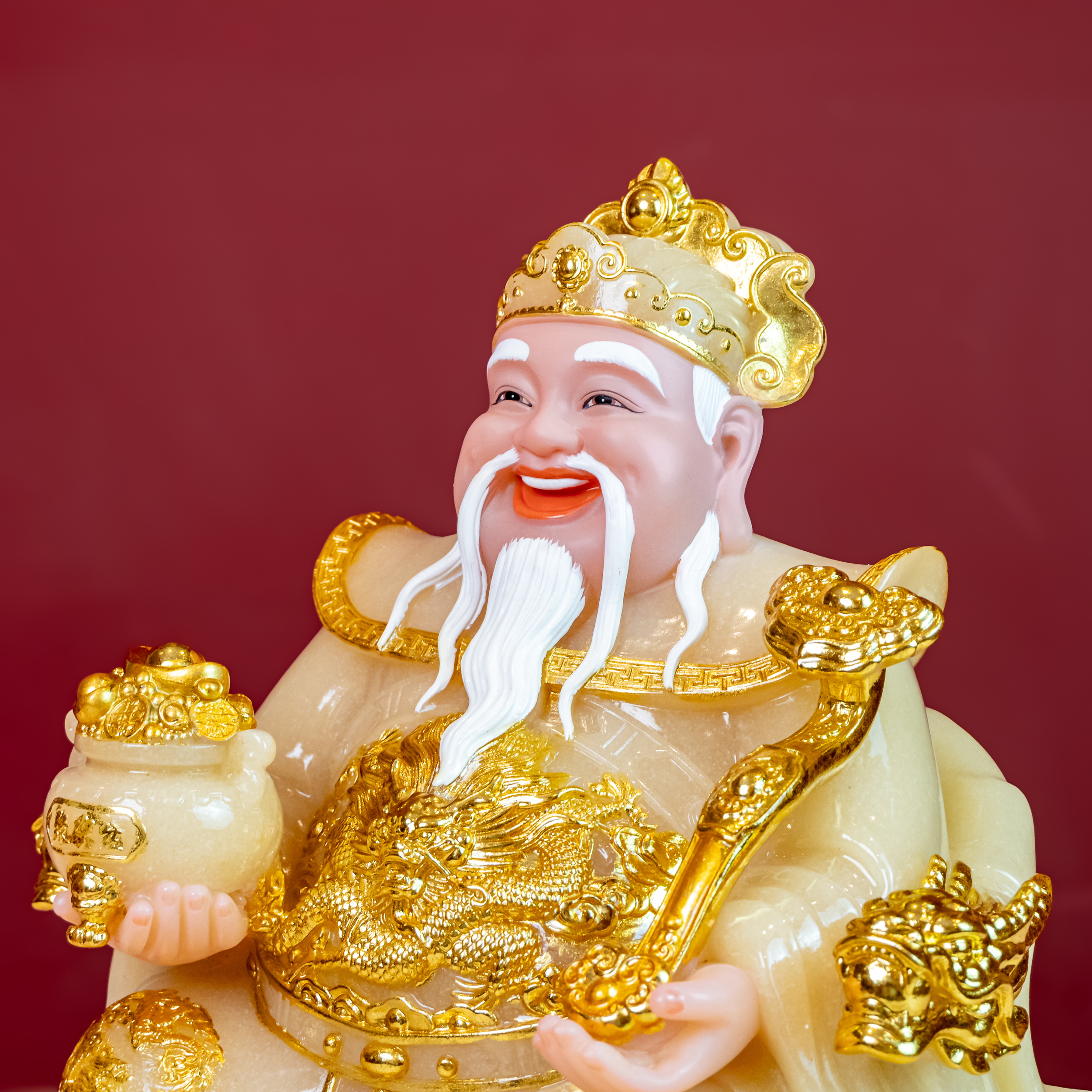 Tượng Thần Tài Thổ Địa mang ý nghĩa bảo trợ về sự thịnh vượng, tài lộc và may mắn trong kinh doanh. Tượng Thần Tài Thổ Địa làm bằng các chất liệu như đá thạch anh, sứ Đức Hóa, đá Đài Loan, composite,… Mỗi bức tượng được chạm khắc tỉ mỉ, với các chi tiết sắc nét, khắc họa Thần Tài và Ông Địa với vẻ mặt phúc hậu, tay cầm thỏi vàng hoặc đĩnh bạc biểu trưng của sự giàu có.
