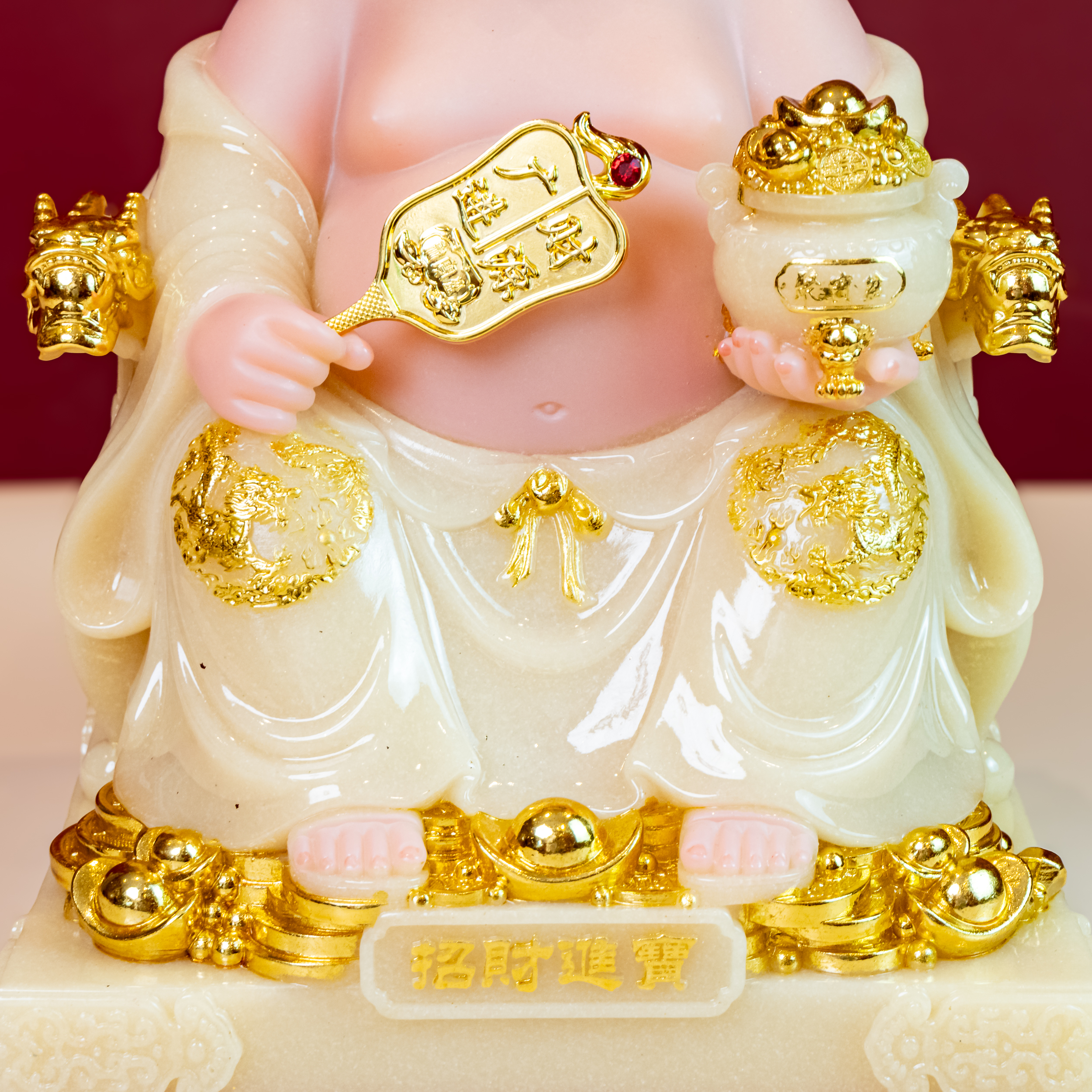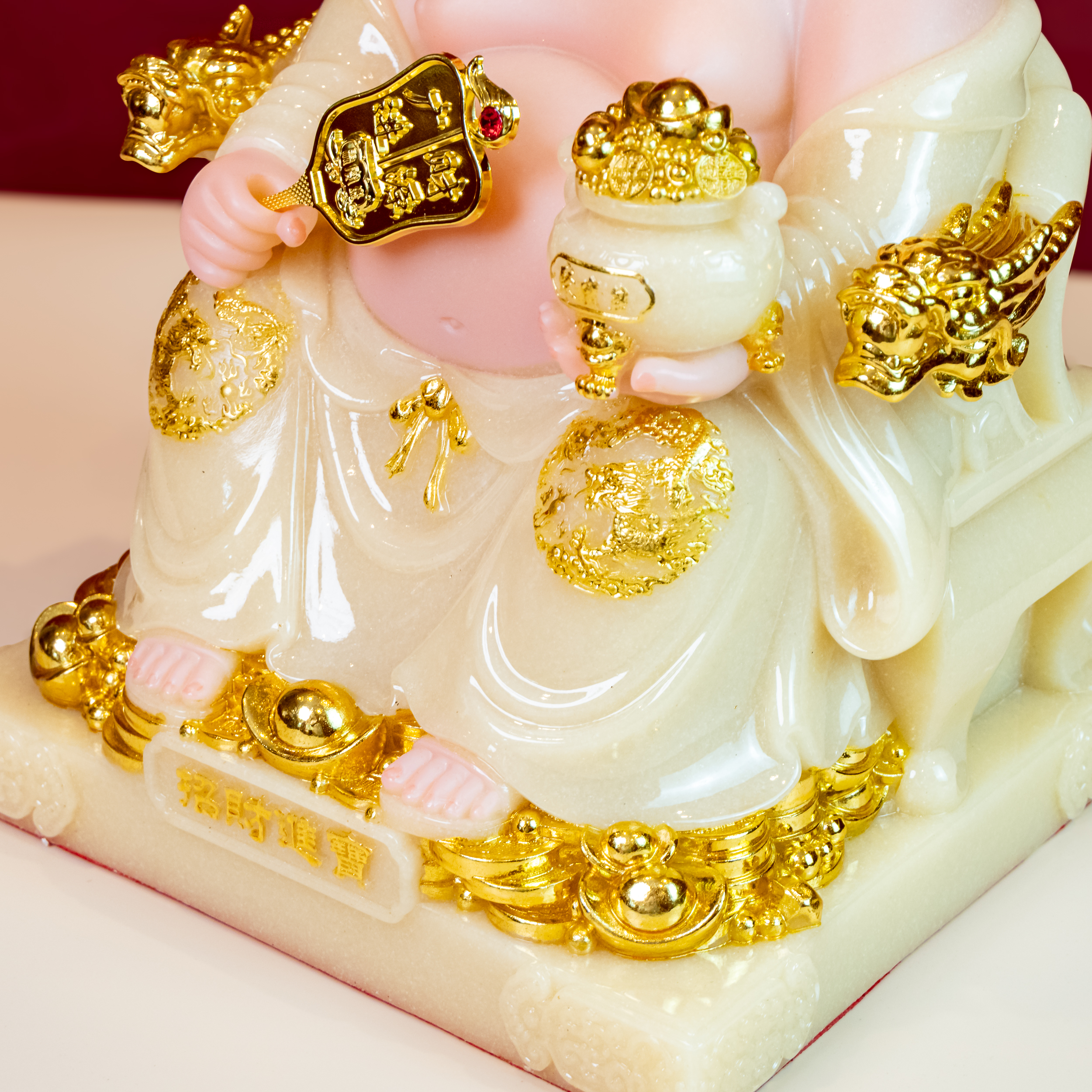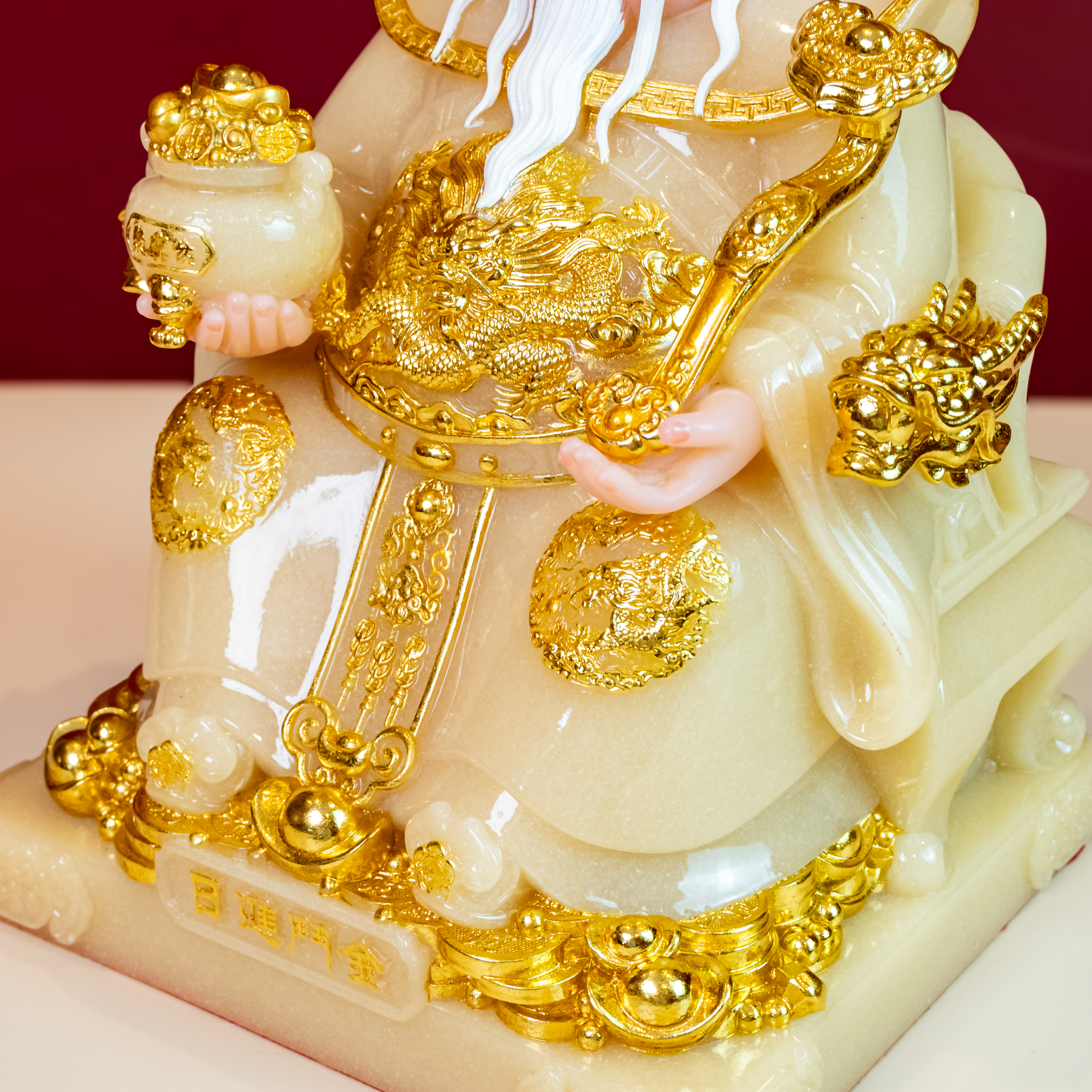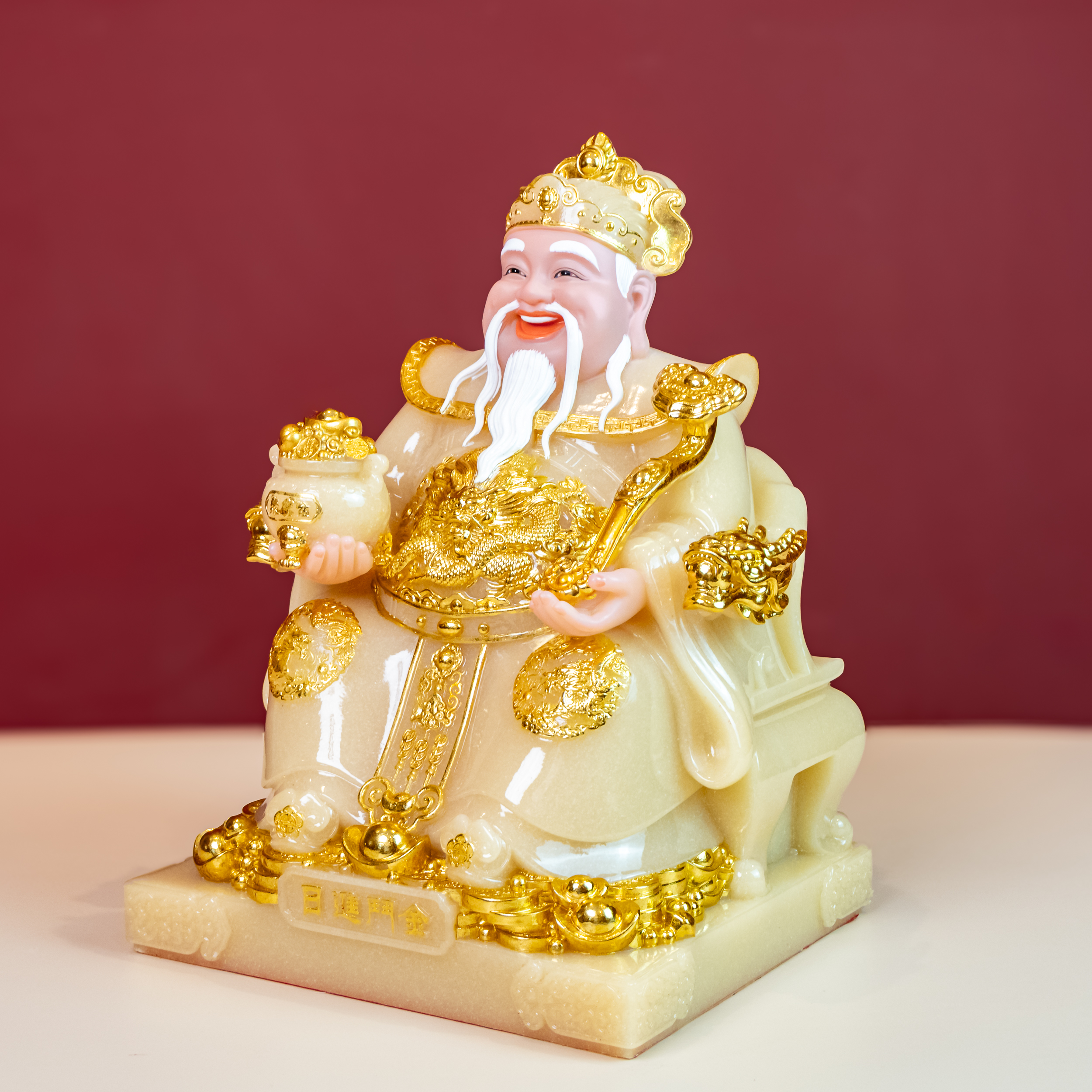 Tượng Thần Tài Thổ Địa mang ý nghĩa bảo trợ về sự thịnh vượng, tài lộc và may mắn trong kinh doanh. Tượng Thần Tài Thổ Địa làm bằng các chất liệu như đá thạch anh, sứ Đức Hóa, đá Đài Loan, composite,… Mỗi bức tượng được chạm khắc tỉ mỉ, với các chi tiết sắc nét, khắc họa Thần Tài và Ông Địa với vẻ mặt phúc hậu, tay cầm thỏi vàng hoặc đĩnh bạc biểu trưng của sự giàu có.