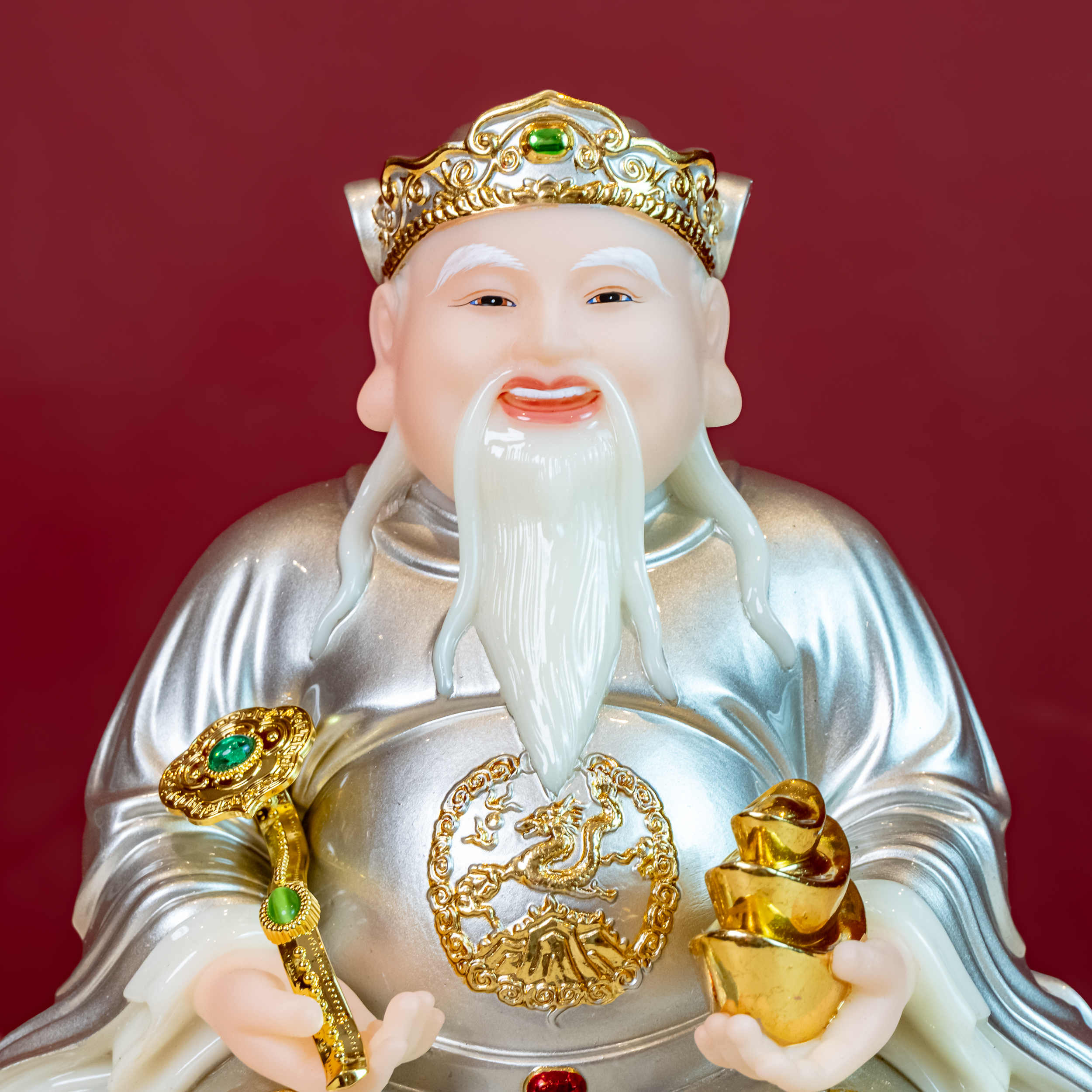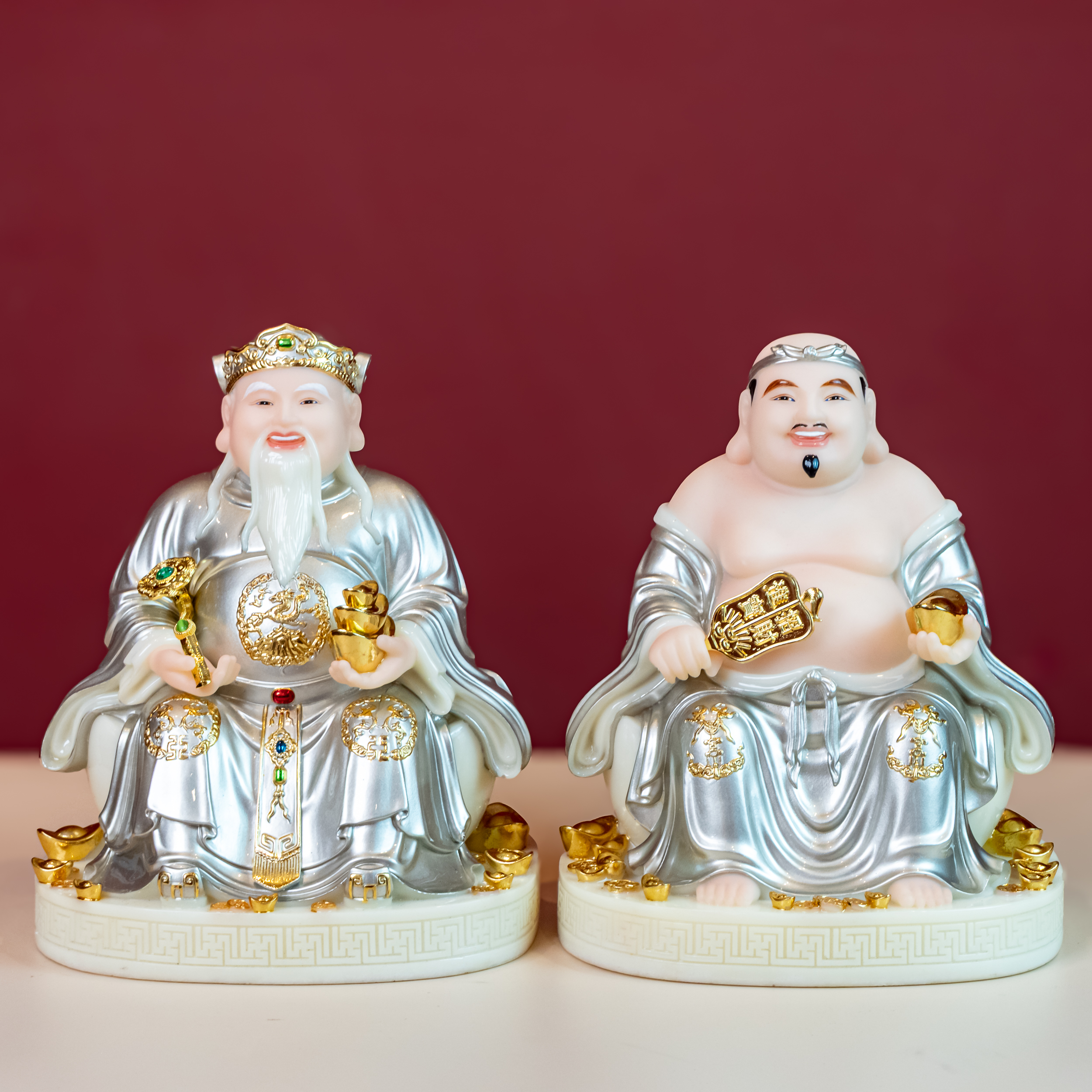 Tượng Thần Tài Thổ Địa mang ý nghĩa bảo trợ về sự thịnh vượng, tài lộc và may mắn trong kinh doanh. Tượng Thần Tài Thổ Địa làm bằng các chất liệu như đá thạch anh, sứ Đức Hóa, đá Đài Loan, composite,… Mỗi bức tượng được chạm khắc tỉ mỉ, với các chi tiết sắc nét, khắc họa Thần Tài và Ông Địa với vẻ mặt phúc hậu, tay cầm thỏi vàng hoặc đĩnh bạc biểu trưng của sự giàu có.