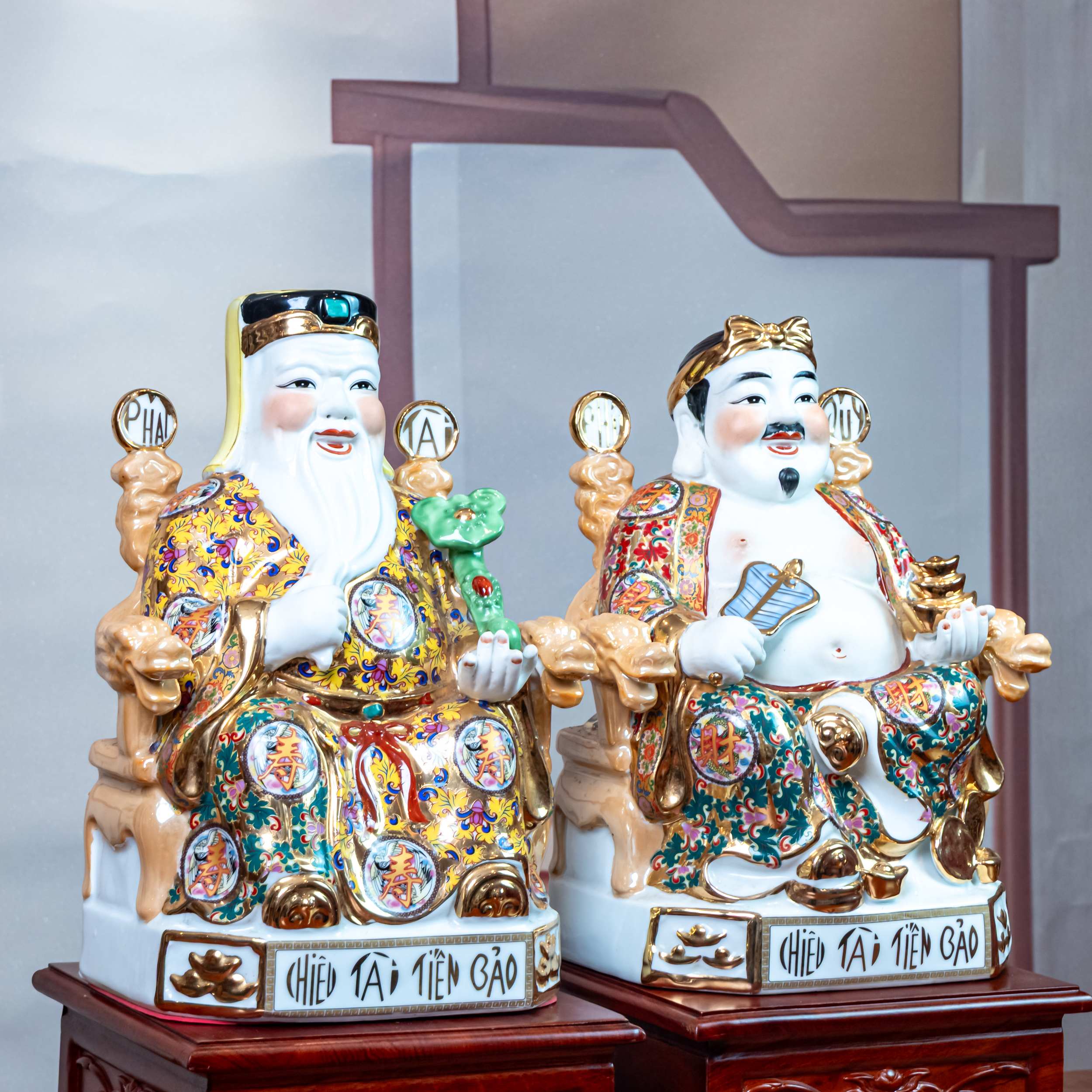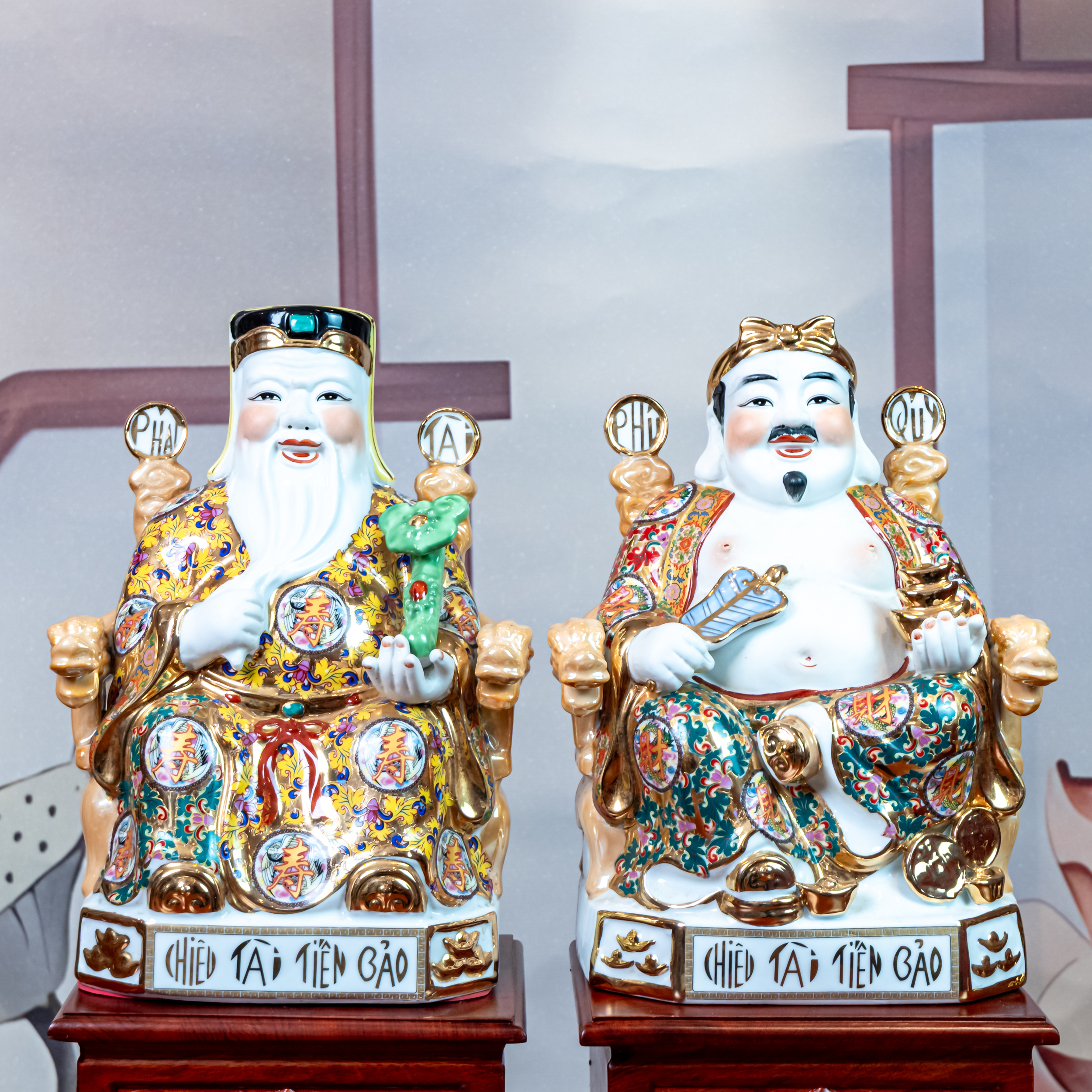 Tượng Thần Tài Thổ Địa mang ý nghĩa bảo trợ về sự thịnh vượng, tài lộc và may mắn trong kinh doanh. Tượng Thần Tài Thổ Địa làm bằng các chất liệu như đá thạch anh, sứ Đức Hóa, đá Đài Loan, composite,… Mỗi bức tượng được chạm khắc tỉ mỉ, với các chi tiết sắc nét, khắc họa Thần Tài và Ông Địa với vẻ mặt phúc hậu, tay cầm thỏi vàng hoặc đĩnh bạc biểu trưng của sự giàu có.