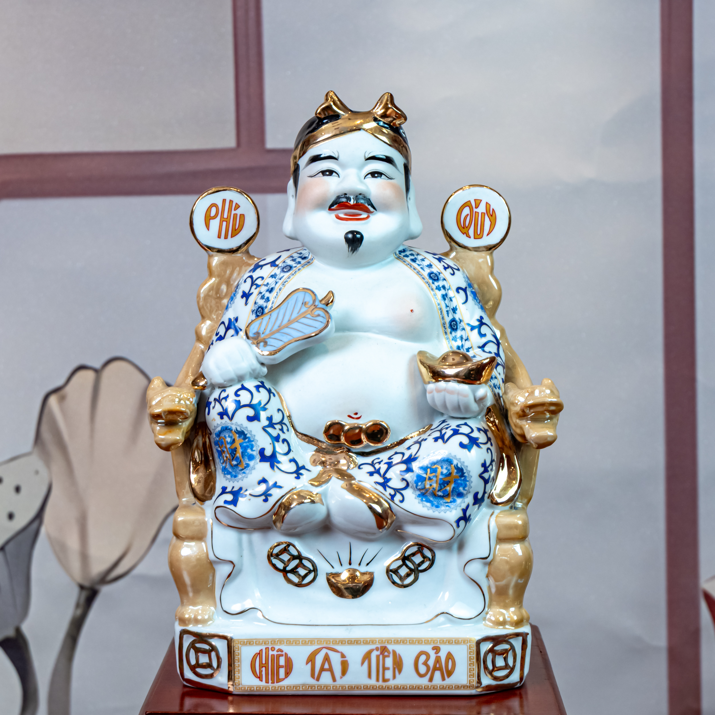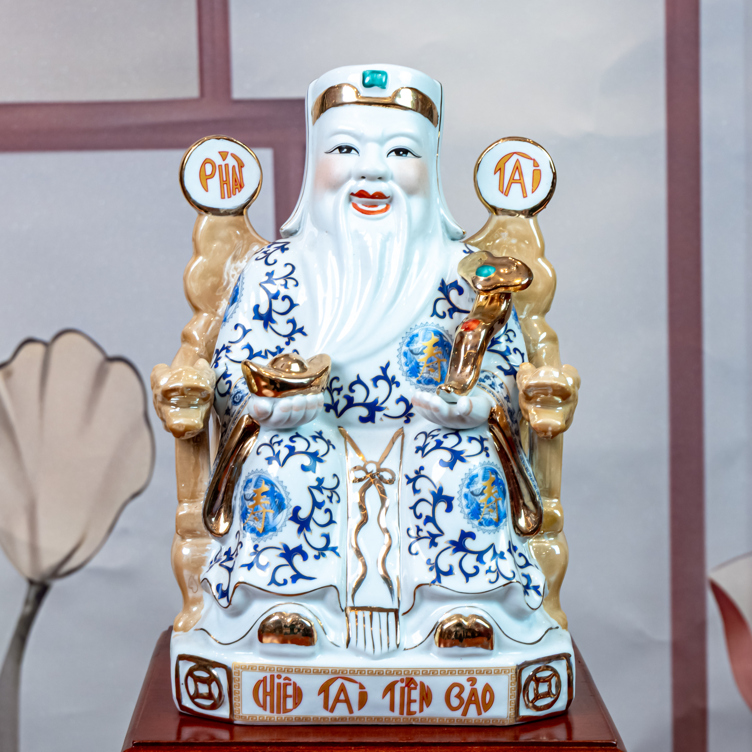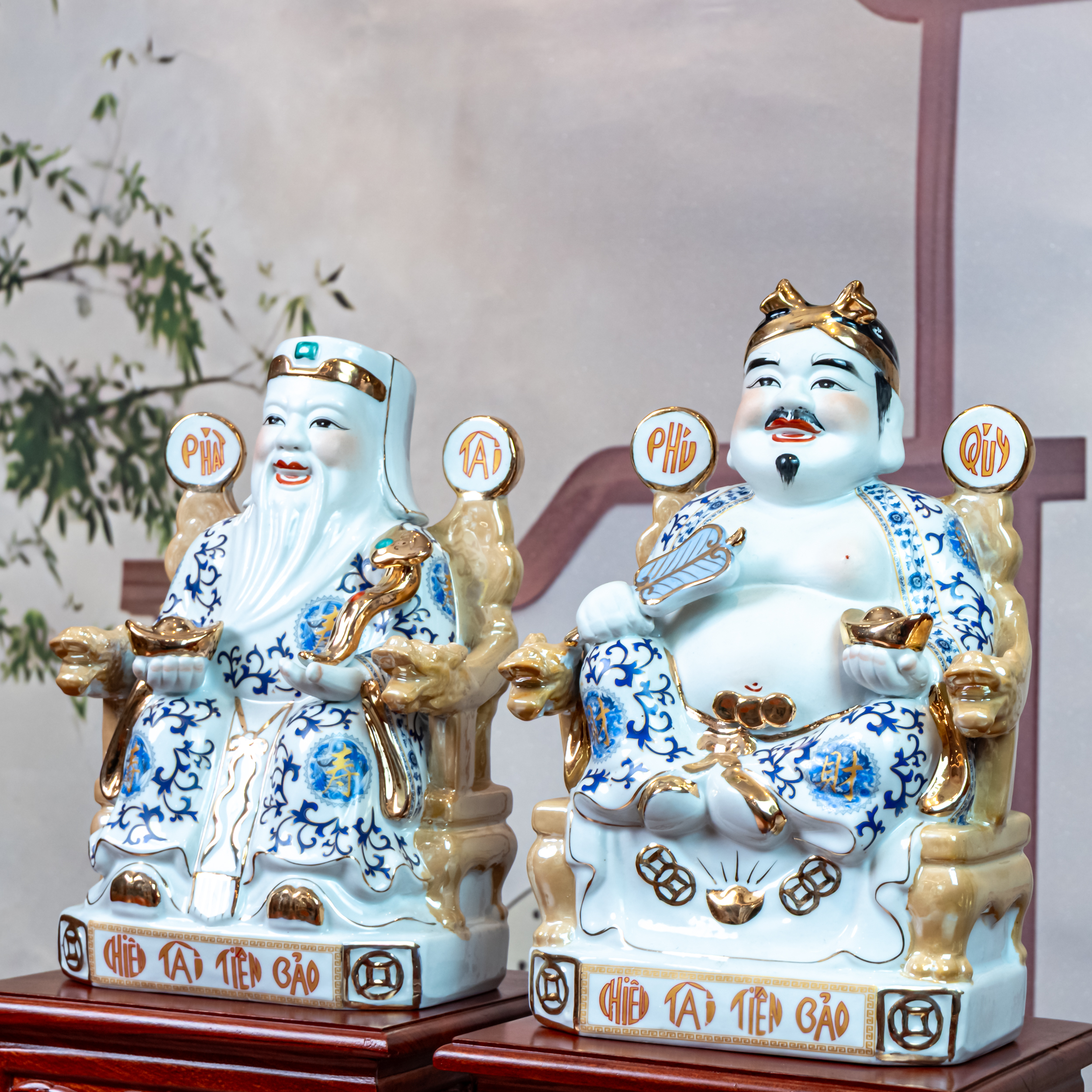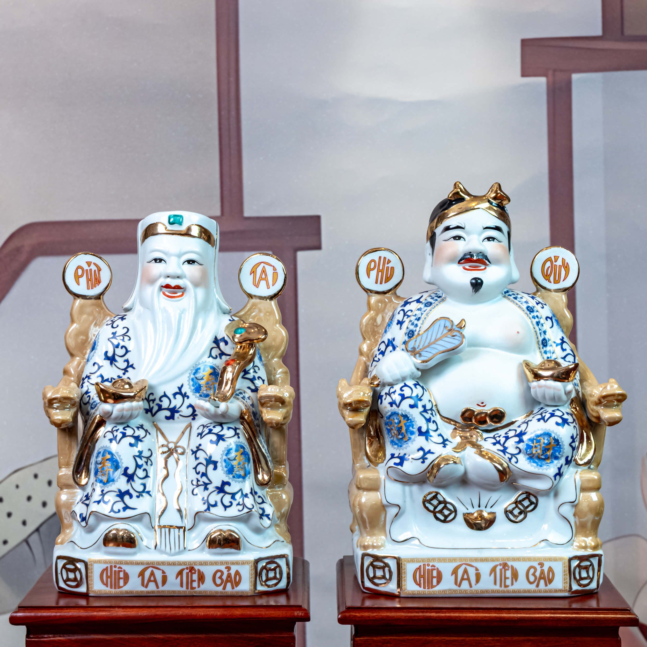 Tượng Thần Tài Thổ Địa mang ý nghĩa bảo trợ về sự thịnh vượng, tài lộc và may mắn trong kinh doanh. Tượng Thần Tài Thổ Địa làm bằng các chất liệu như đá thạch anh, sứ Đức Hóa, đá Đài Loan, composite,… Mỗi bức tượng được chạm khắc tỉ mỉ, với các chi tiết sắc nét, khắc họa Thần Tài và Ông Địa với vẻ mặt phúc hậu, tay cầm thỏi vàng hoặc đĩnh bạc biểu trưng của sự giàu có.