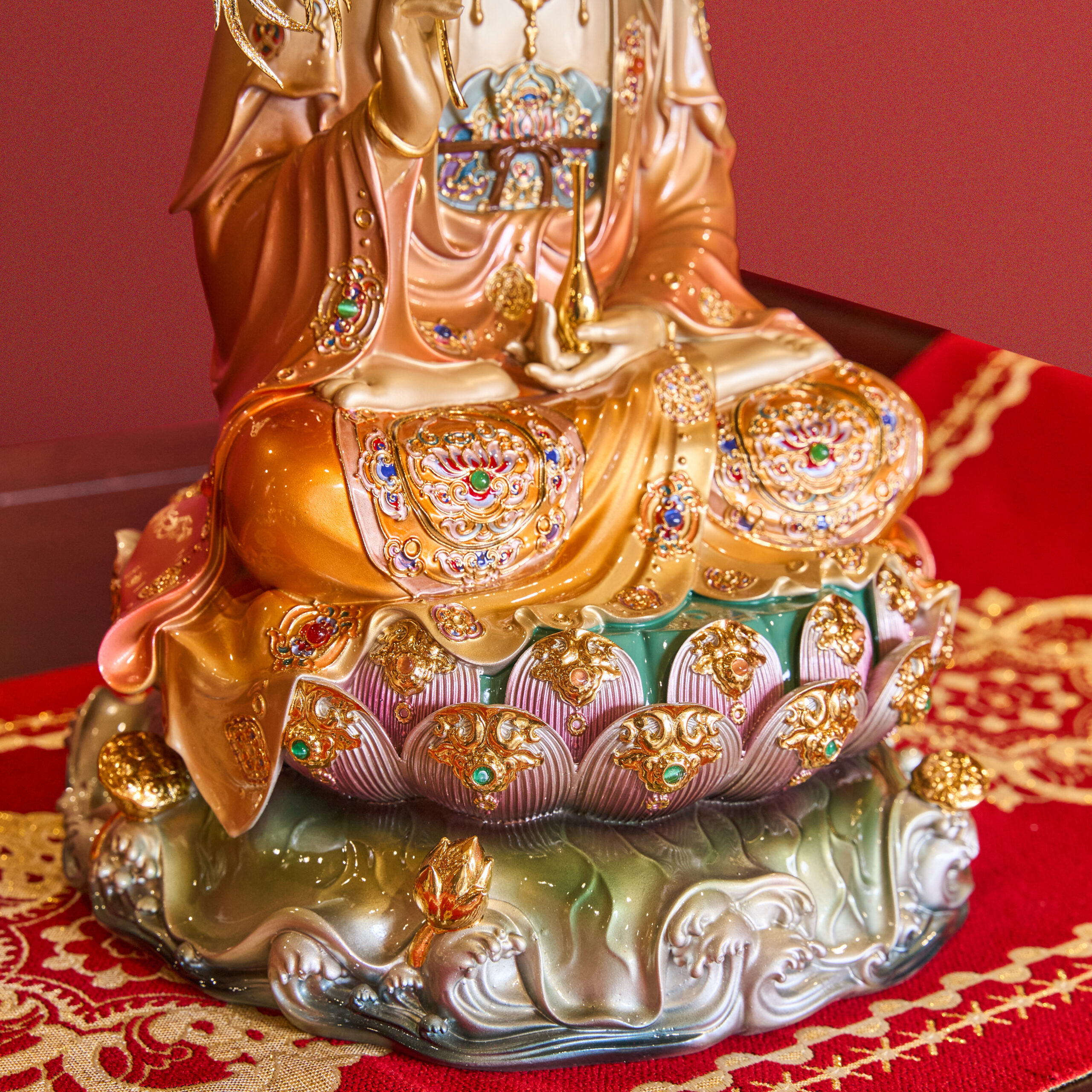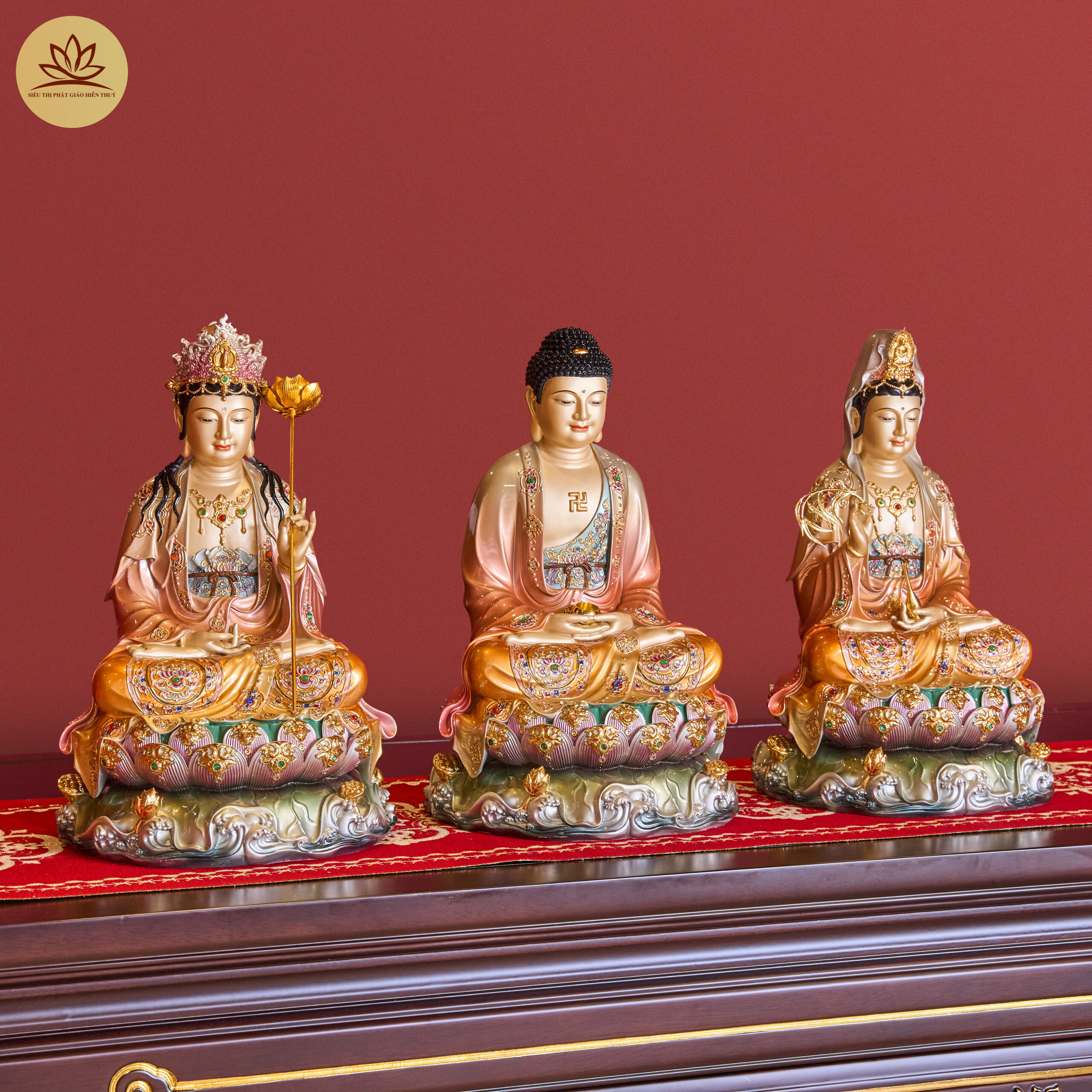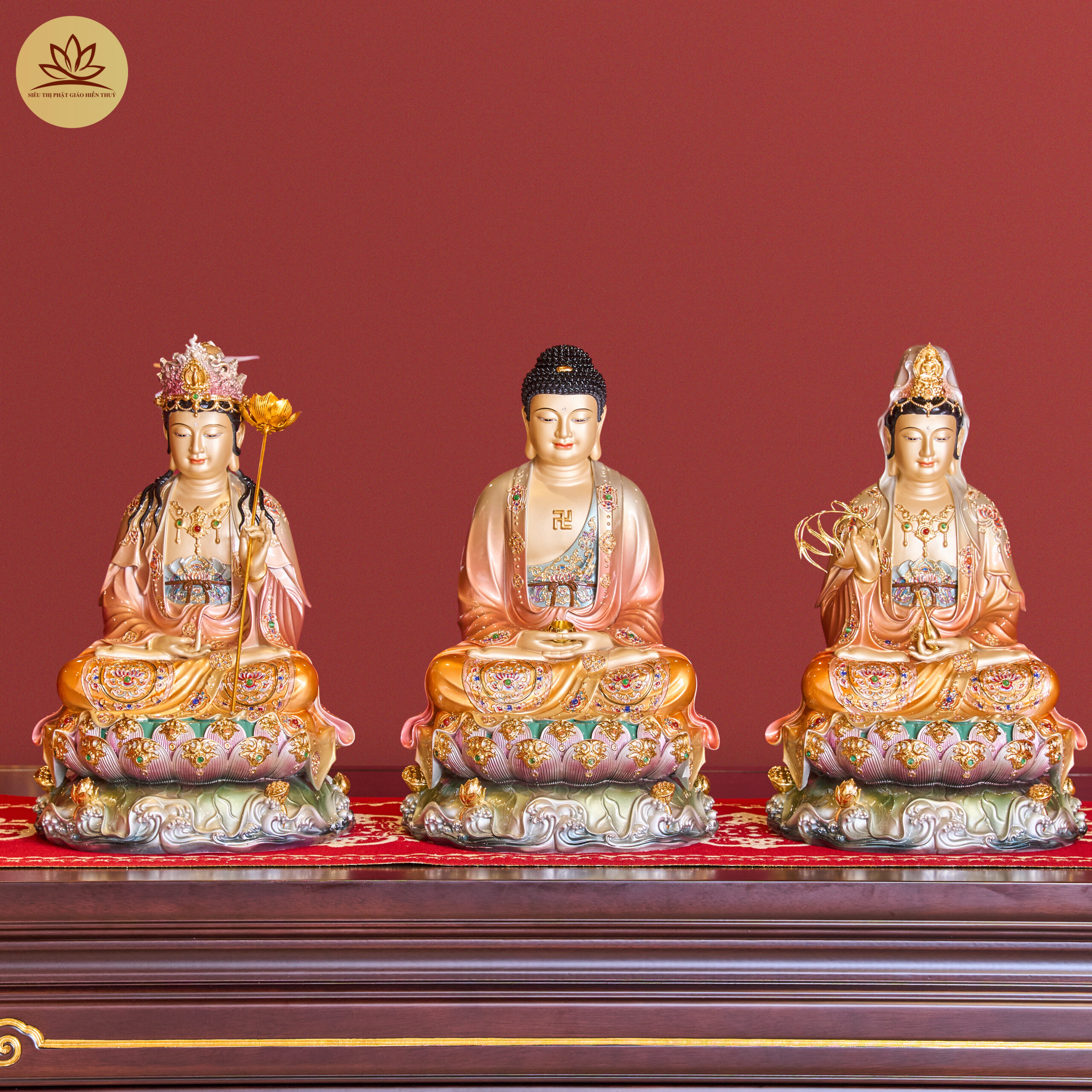Tôn Tượng Tây Phương Tam Thánh là biểu tượng Phật Giáo quan trọng, nhất là với tín đồ Tịnh Độ Tông. Tây Phương Tam Thánh bao gồm Bồ Tát Quan Thế Âm, Bồ Tát Đại Thế và Đức Phật A Di Đà, là ba vị cai quản cõi Tây Phương Cực Lạc, nơi không có buồn đau, u sầu. Bộ tượng Tây Phương Tam Thánh được làm từ chất liệu cao cấp, mang vẻ ngoài bóng đẹp, có tính thẩm mỹ và độ bền cao.
