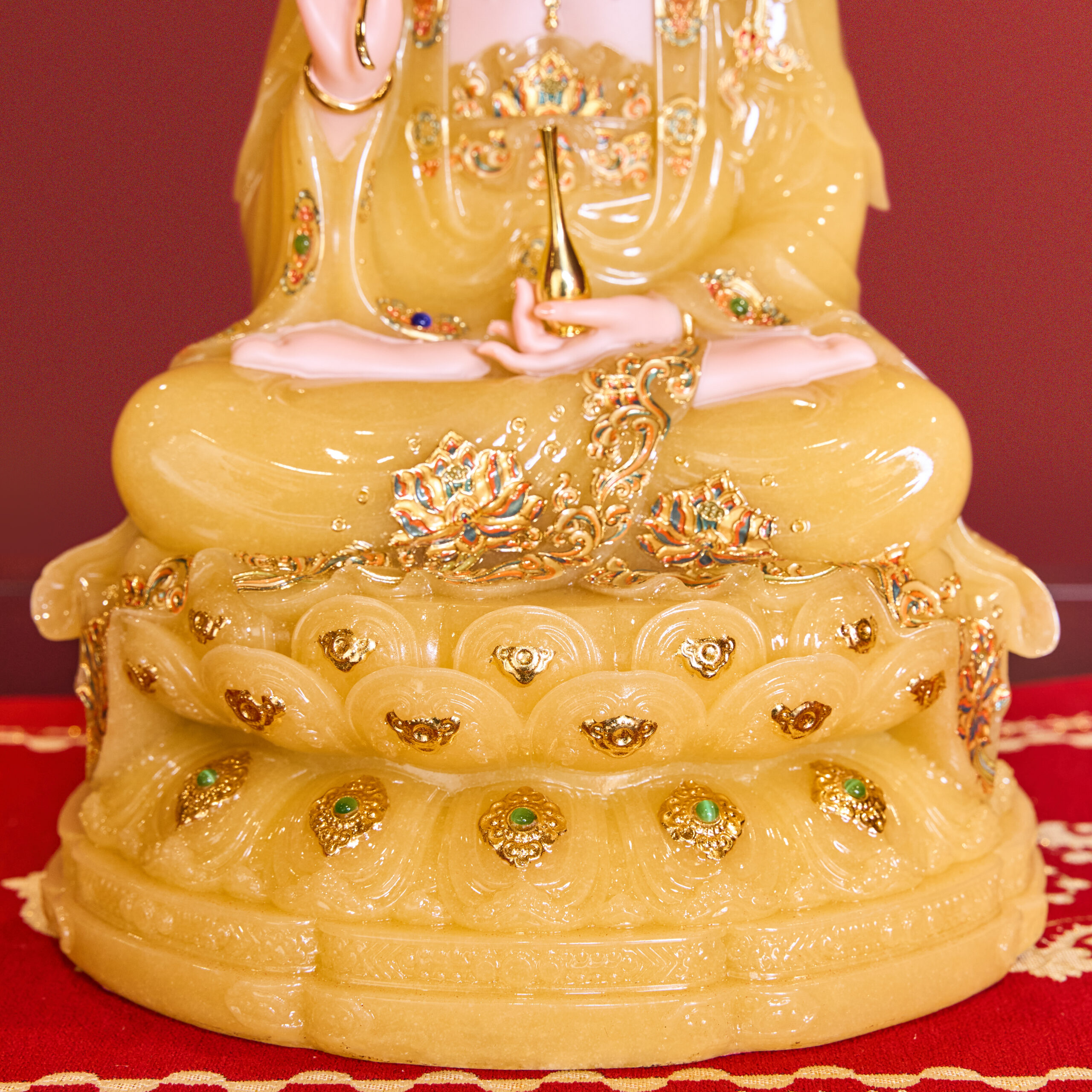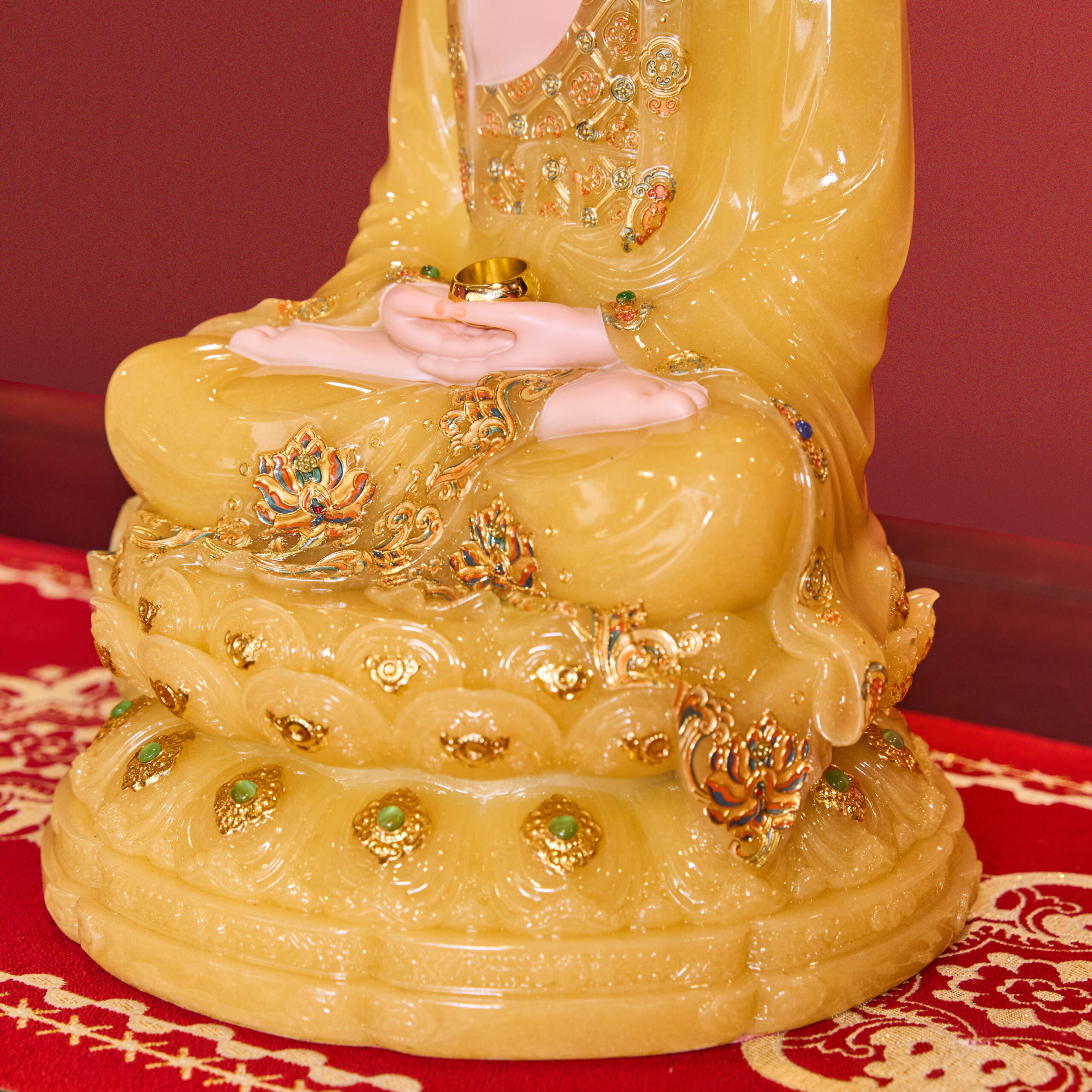 Tượng Tây Phương Tam Thánh Tọa Đài Sen Đá Vàng Thạch Anh Có Lá Đề