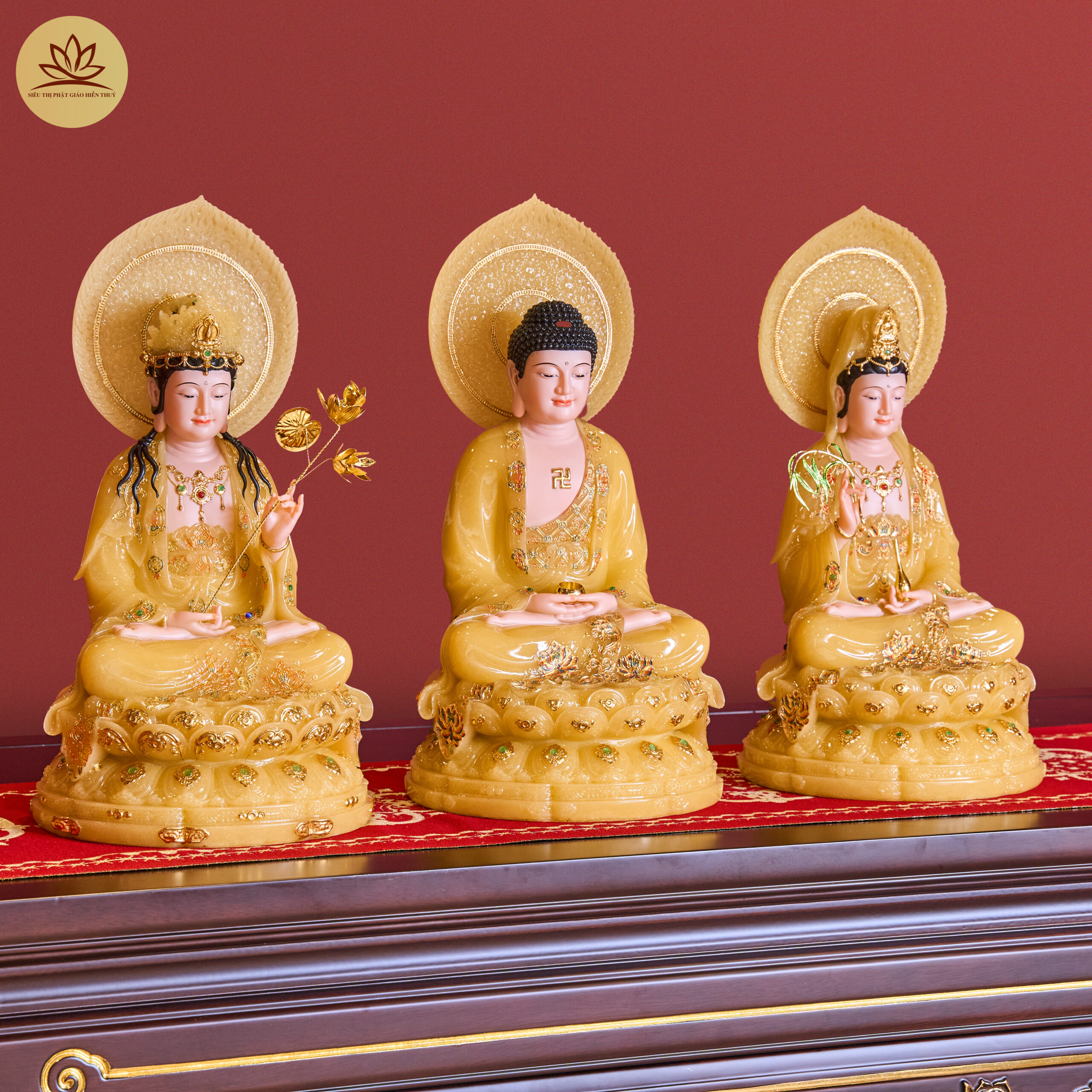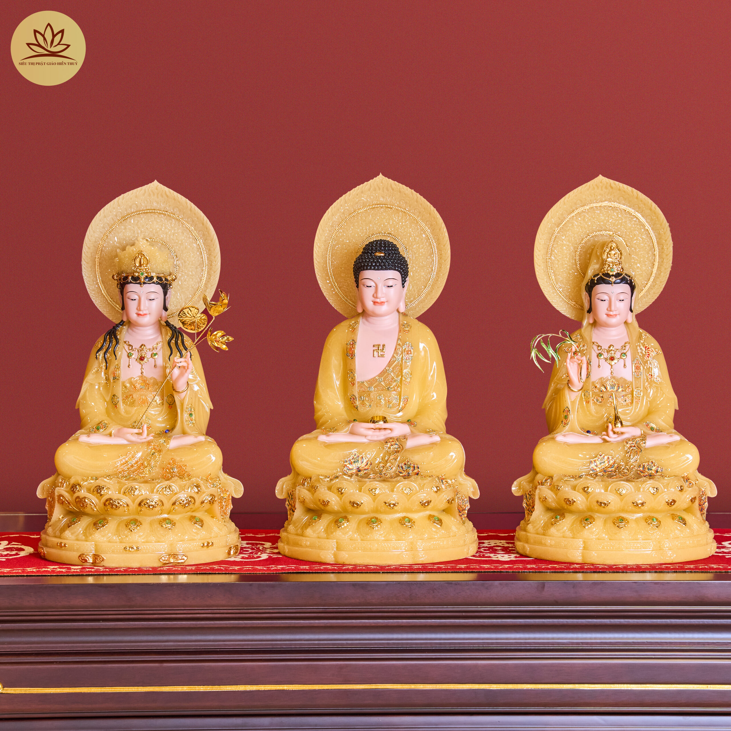 Tôn Tượng Tây Phương Tam Thánh là biểu tượng Phật Giáo quan trọng, nhất là với tín đồ Tịnh Độ Tông. Tây Phương Tam Thánh bao gồm Bồ Tát Quan Thế Âm, Bồ Tát Đại Thế và Đức Phật A Di Đà, là ba vị cai quản cõi Tây Phương Cực Lạc, nơi không có buồn đau, u sầu. Bộ tượng Tây Phương Tam Thánh được làm từ chất liệu cao cấp, mang vẻ ngoài bóng đẹp, có tính thẩm mỹ và độ bền cao.