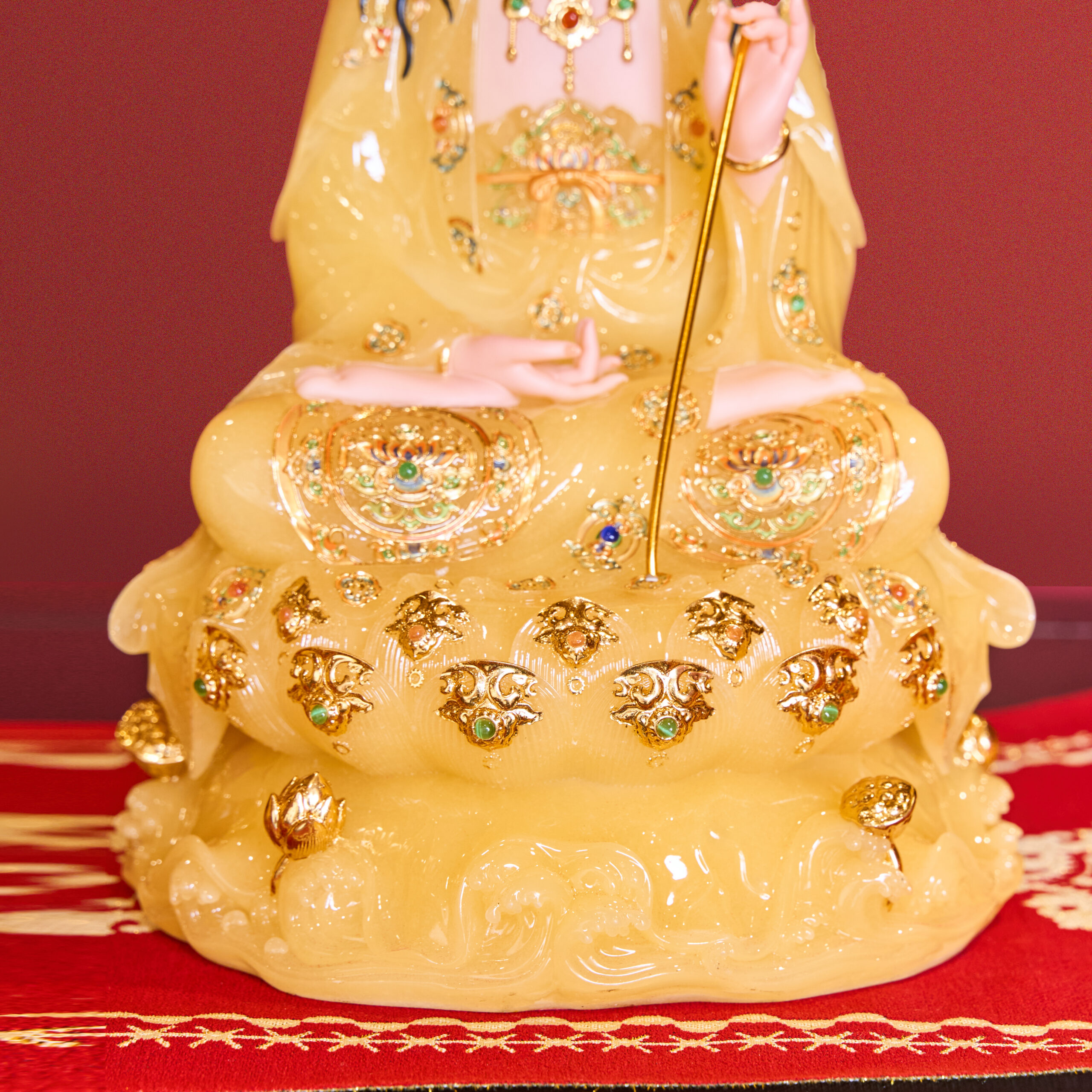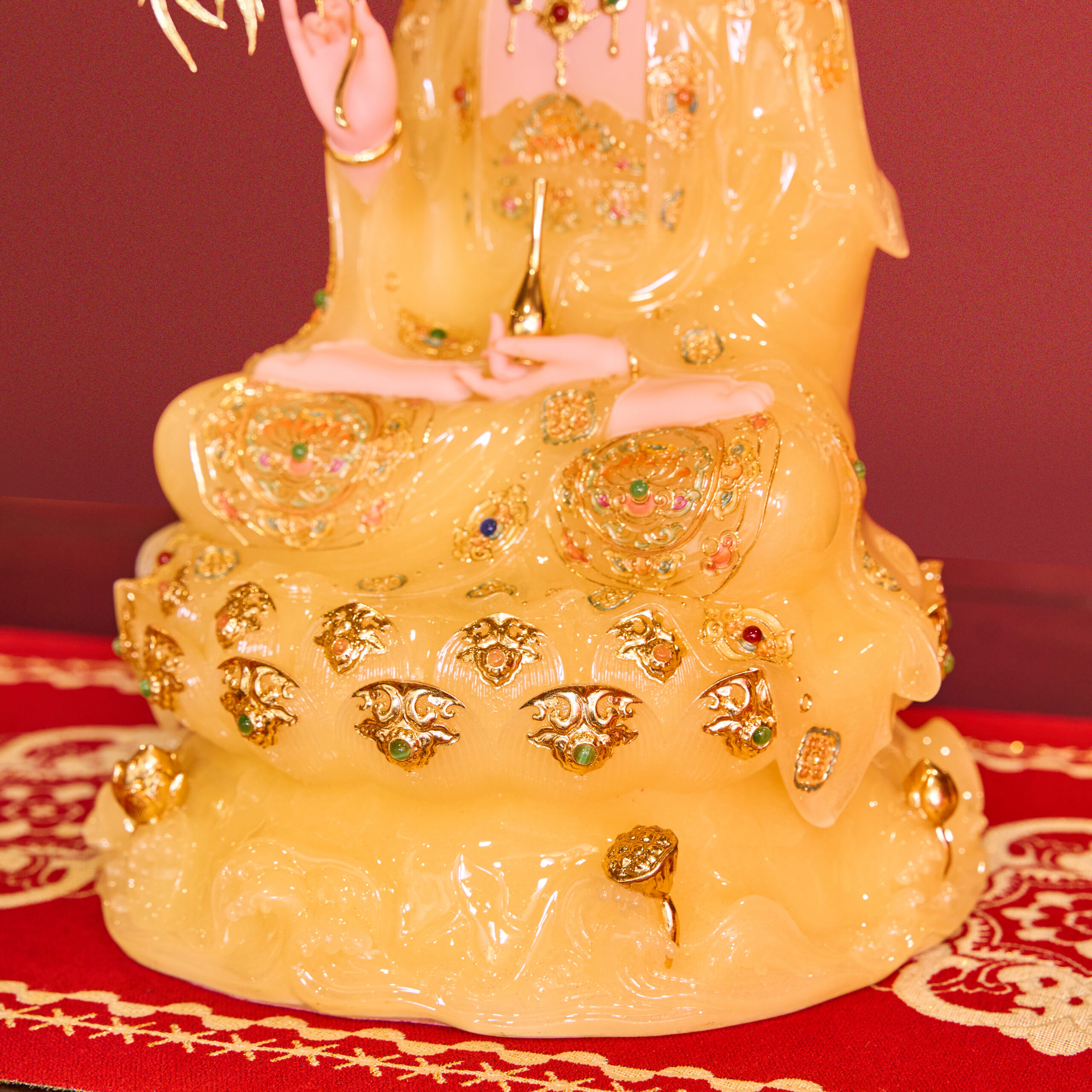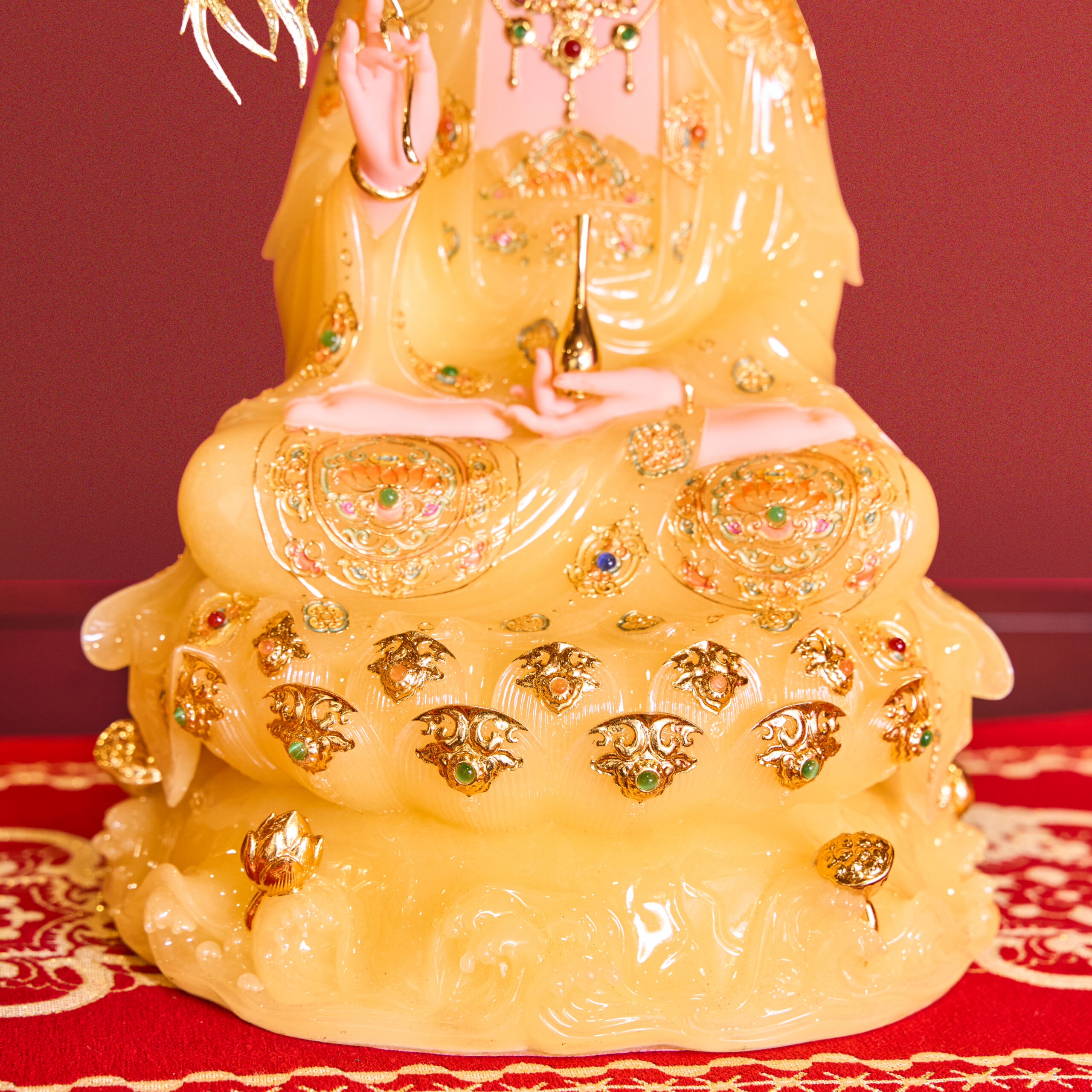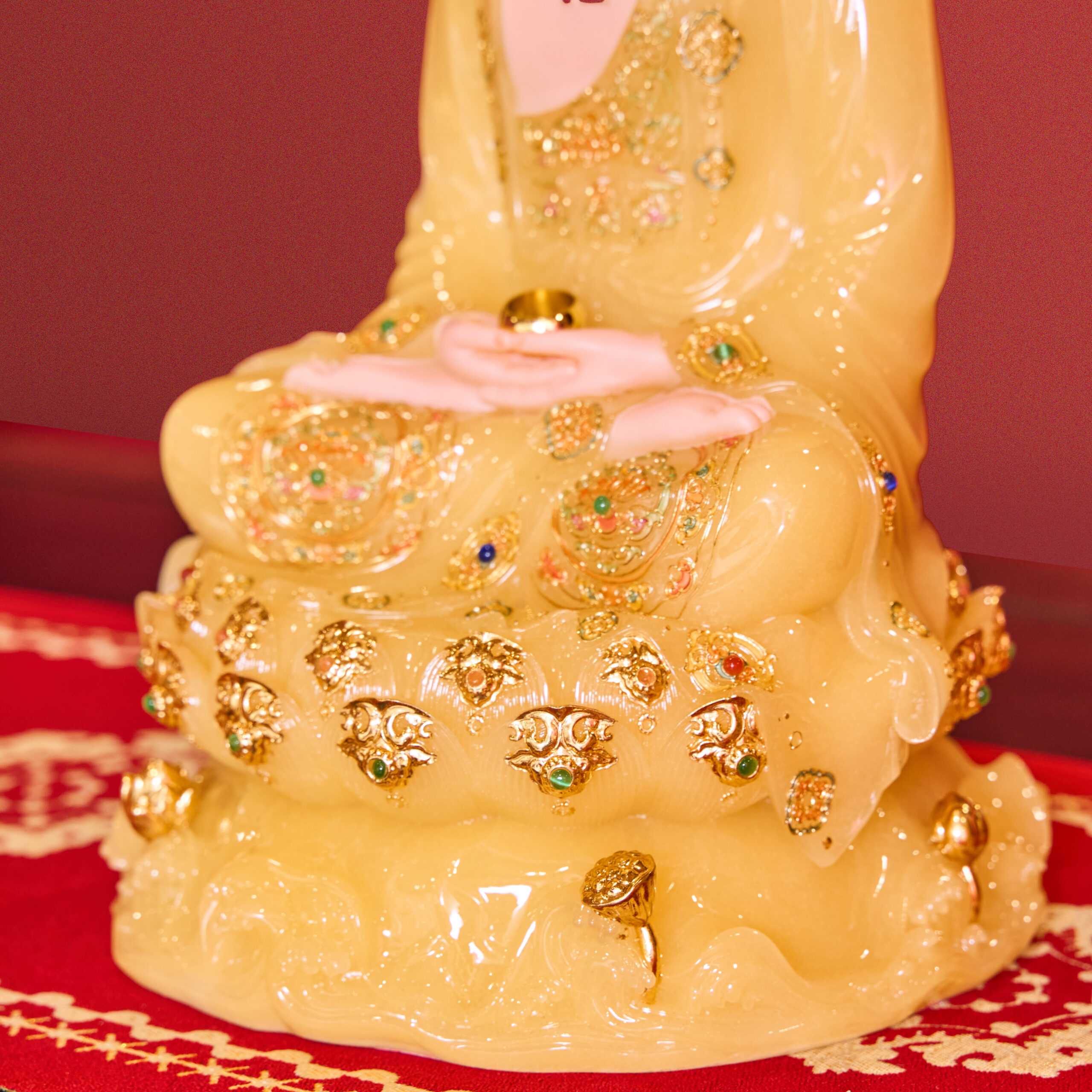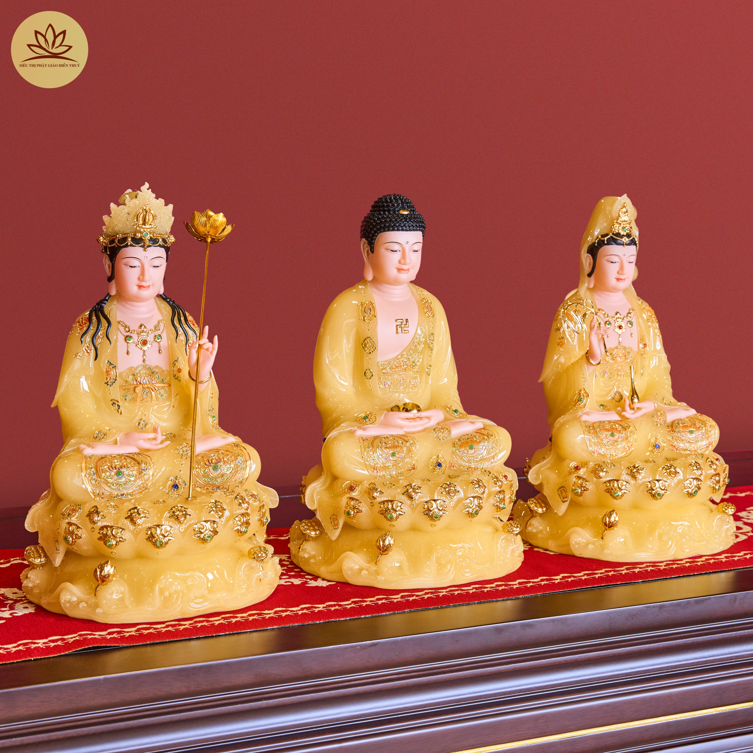 Tượng Tây Phương Tam Thánh Tọa Đài Sen Đá Vàng Thạch Anh
